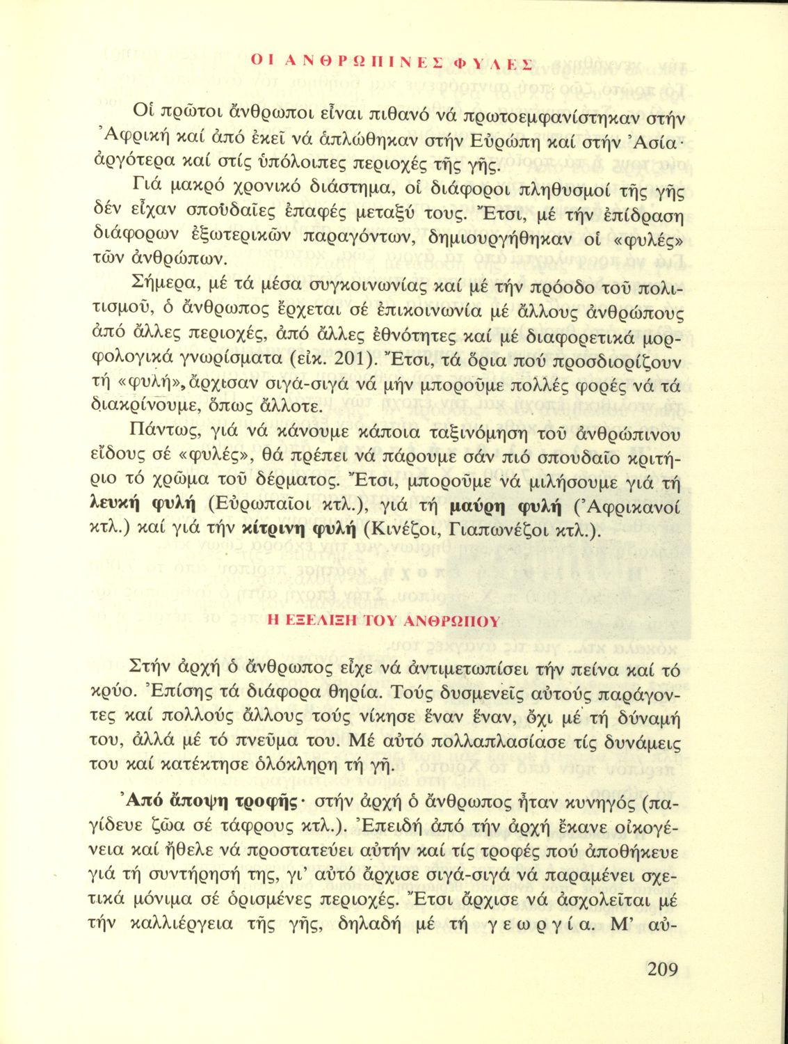 Σχολικό εγχειρίδιο Ανθρωπολογίας Β΄ Λυκείου που εστιάζει στην κατασκευή, ανάπτυξη και λειτουργία του ανθρώπινου οργανισμού και τη σχέση του ανθρώπου με το φυσικό περιβάλλον. Περιέχει και αναφορά στις ανθρώπινες φυλές.