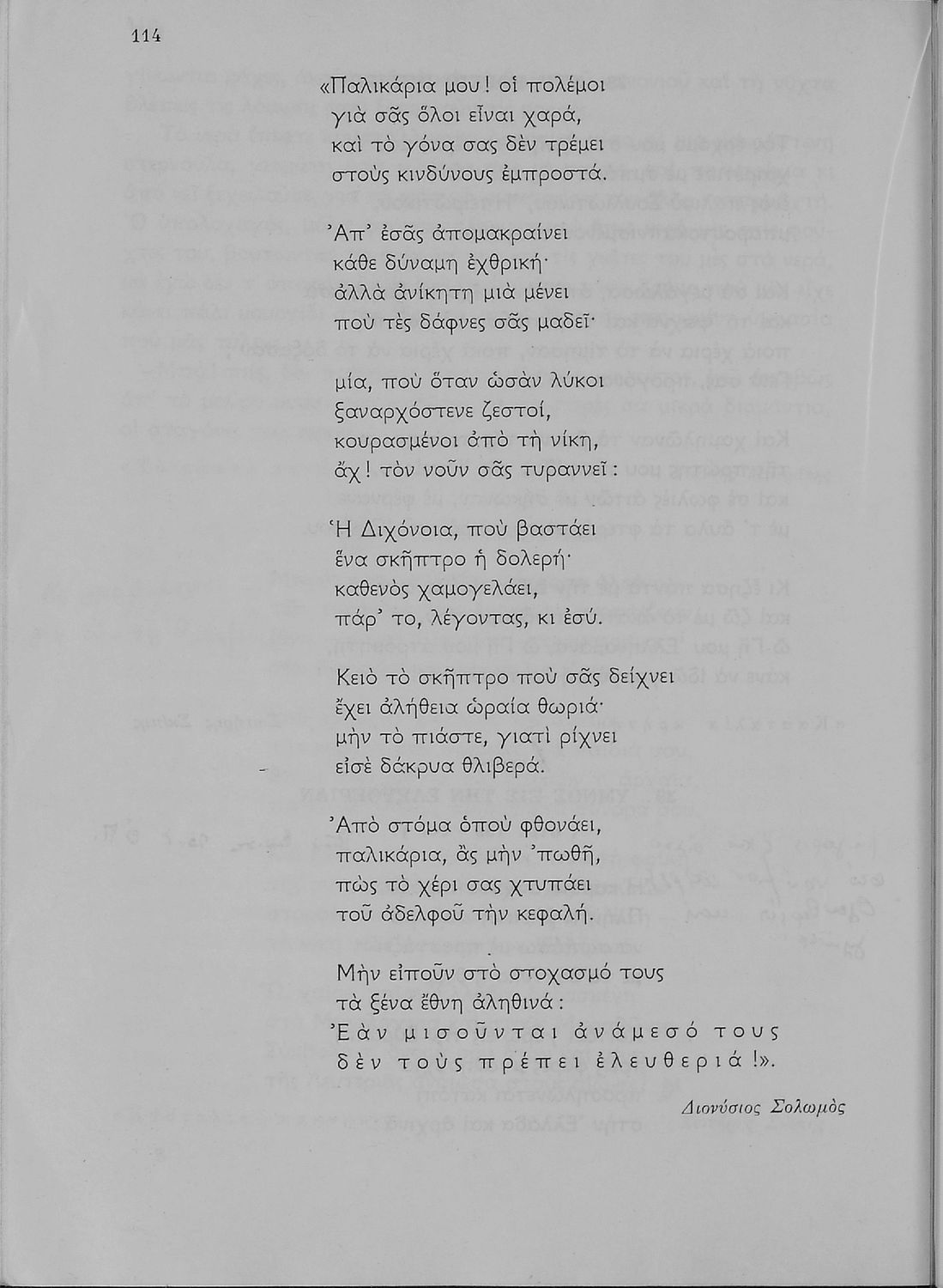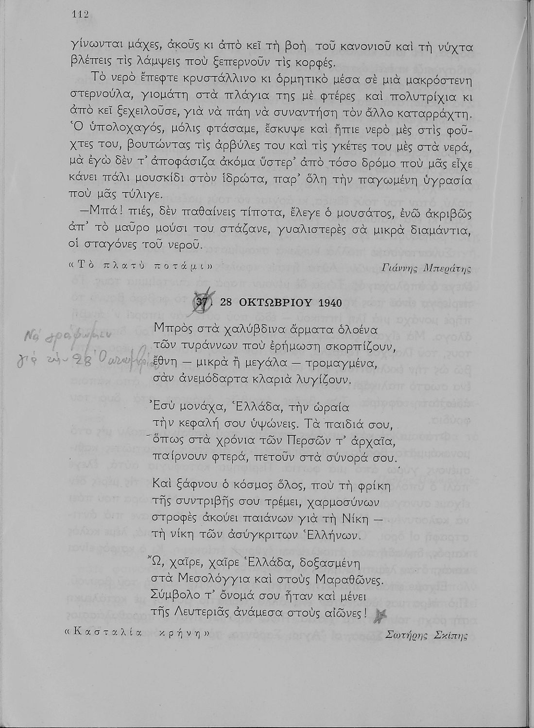 Σχολικό εγχειρίδιο Νέων Ελληνικών Δ΄ Γυμνασίου Θηλέων που περιλαμβάνει πεζά, ποιήματα και δημοτικά τραγούδια εμπνευσμένα από την σύγχρονη ελληνική ιστορία και την οικογενειακή και θρησκευτική ζωή. Περιέχει και