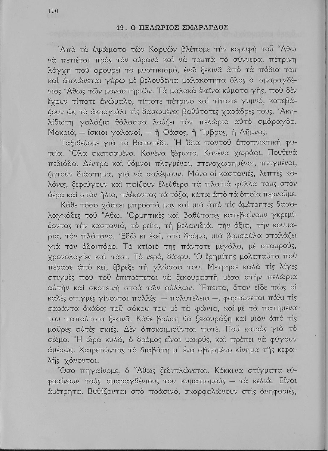 Σχολικό εγχειρίδιο Νέων Ελληνικών Δ' Γυμνασίου που περιλαμβάνει πεζά, ποιήματα και παροιμίες Ελλήνων συγγραφέων εμπνευσμένα από την θρησκευτική και κοινωνική ζωή, τη βυζαντινή ιστορία, την αρχαία και σύγχρονη ελληνική ιστορία, και την ελληνική φύση. Περιέχει παράρτημα με βιογραφίες των συγγραφέων και λεξιλόγιο.
