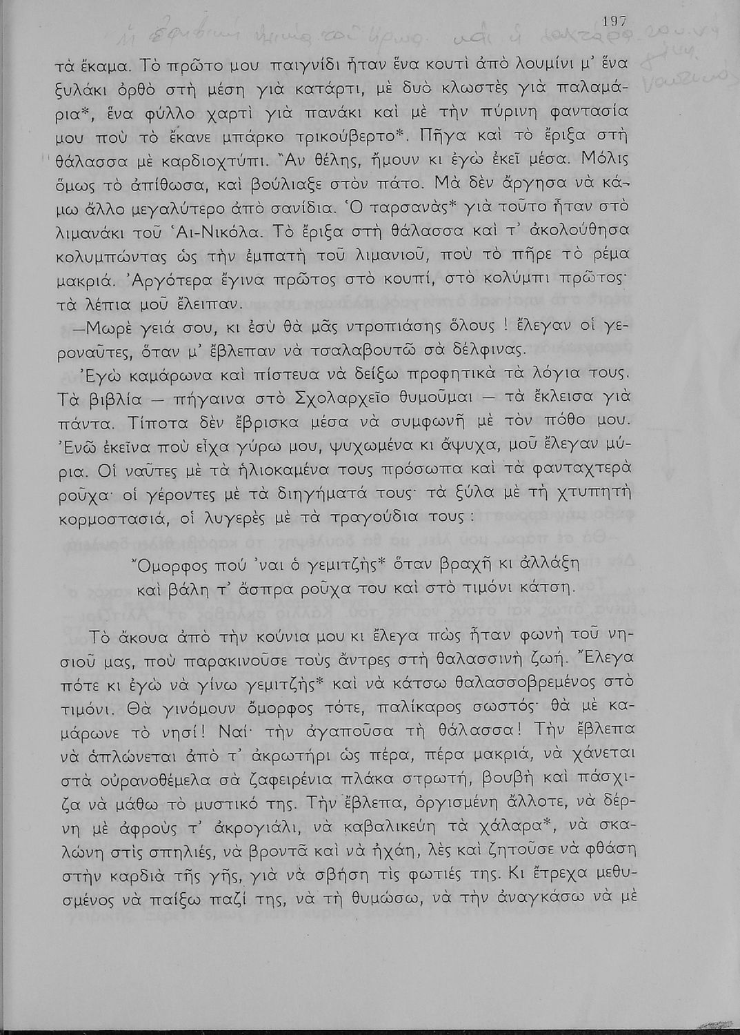 Σχολικό εγχειρίδιο Νέων Ελληνικών Δ΄ Γυμνασίου Θηλέων που περιλαμβάνει πεζά, ποιήματα και δημοτικά τραγούδια εμπνευσμένα από την σύγχρονη ελληνική ιστορία και την οικογενειακή και θρησκευτική ζωή. Περιέχει και