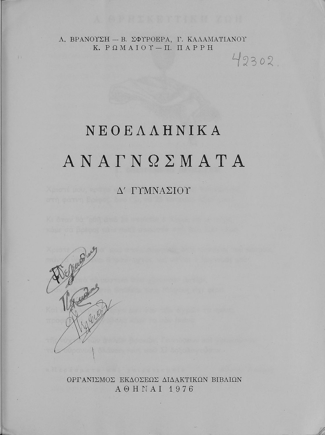 Συγγραφέας: Λ. Βρανούσης, Β. Σφυρόερας, Γ. Καλαματιανός, Κ. Ρωμαίος, Π. Πάρρης
