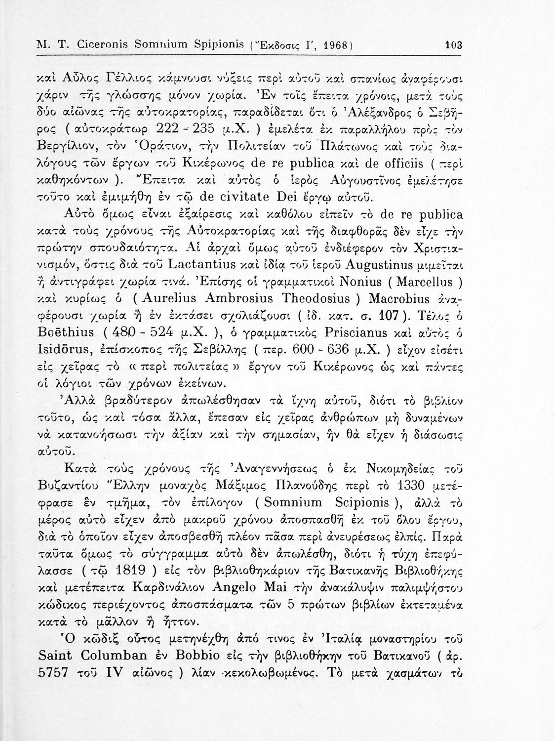 Ουεργιλίου Αινειάς (Εκλογαί), M. Tulli Ciceronis Somnium Scipionis,Οράτιου Ωδαί ΣΤ΄ Γυμνασίου