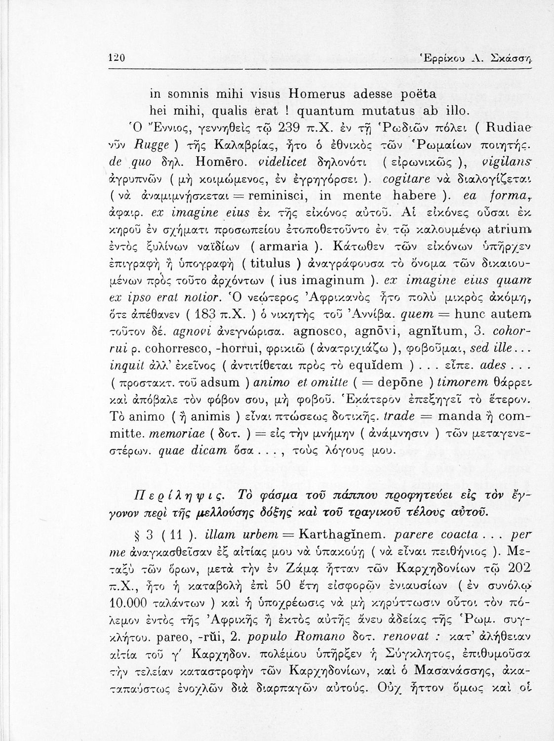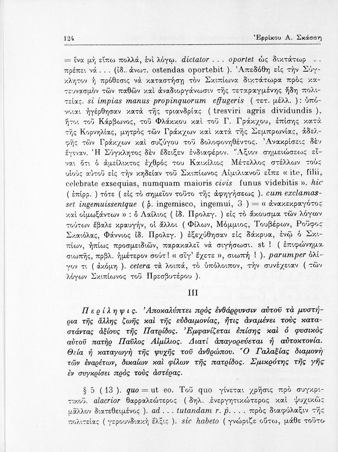 Πόπλιος Βιργίλιος Μάρων (P. Vergilius Maro), Μάρκος Τύλλιος Κικέρωνας (Marcus Tullius Ciceco), Κουίντος Οράτιος Φλάκκος (Q. Horati Flacci), Φωκίωνας Β. Βουσβούνης, Ερρίκος Σκάσσης, Ζαφείριος Ν. Φραγκίσκος (σχόλια)