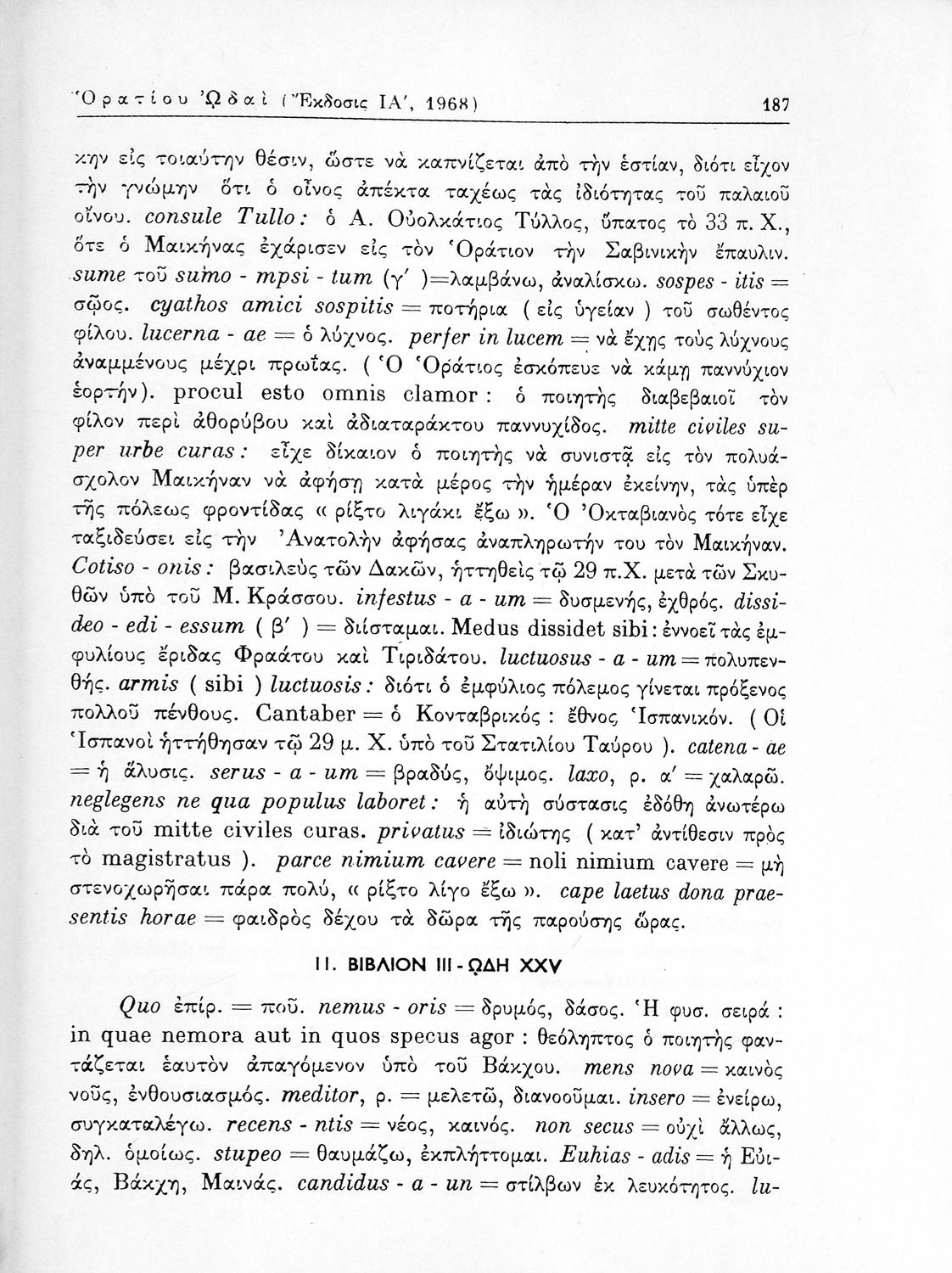 Πόπλιος Βιργίλιος Μάρων (P. Vergilius Maro), Μάρκος Τύλλιος Κικέρωνας (Marcus Tullius Ciceco), Κουίντος Οράτιος Φλάκκος (Q. Horati Flacci), Φωκίωνας Β. Βουσβούνης, Ερρίκος Σκάσσης, Ζαφείριος Ν. Φραγκίσκος (σχόλια)
