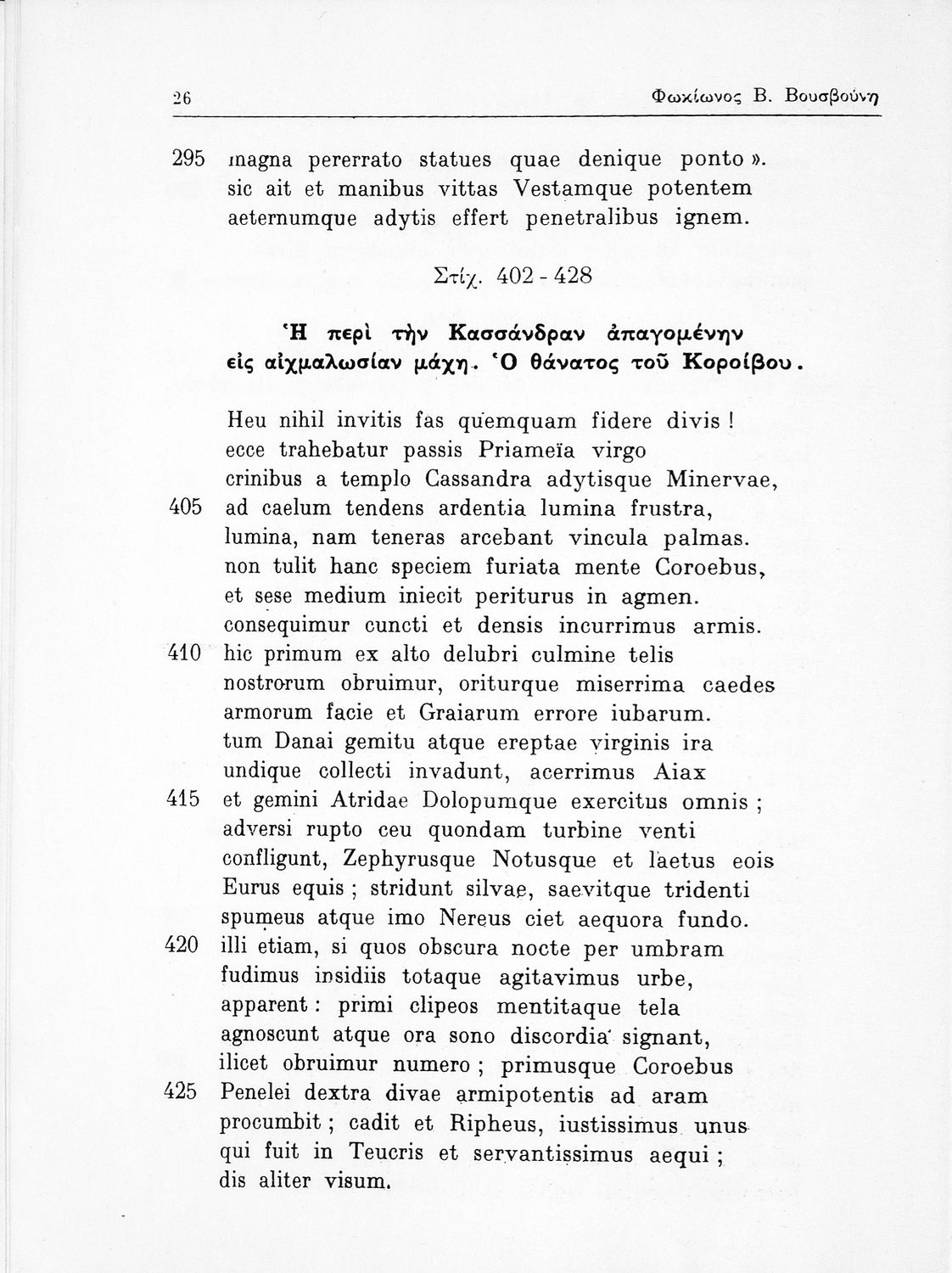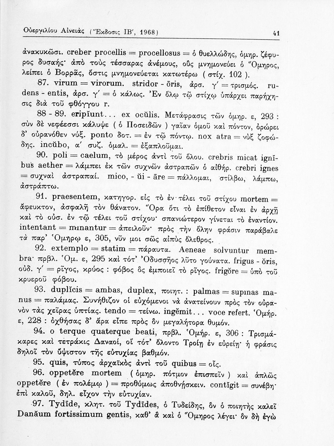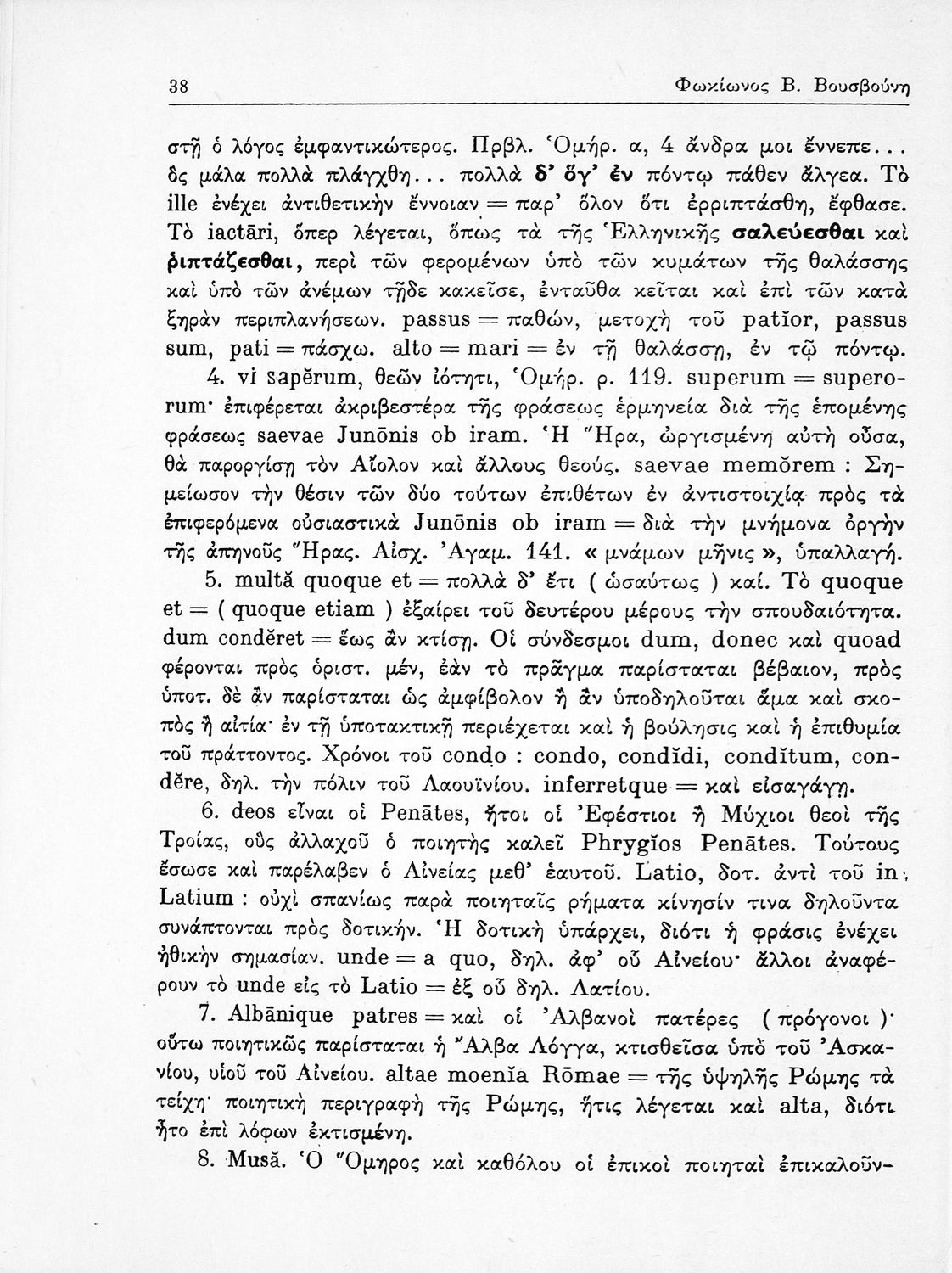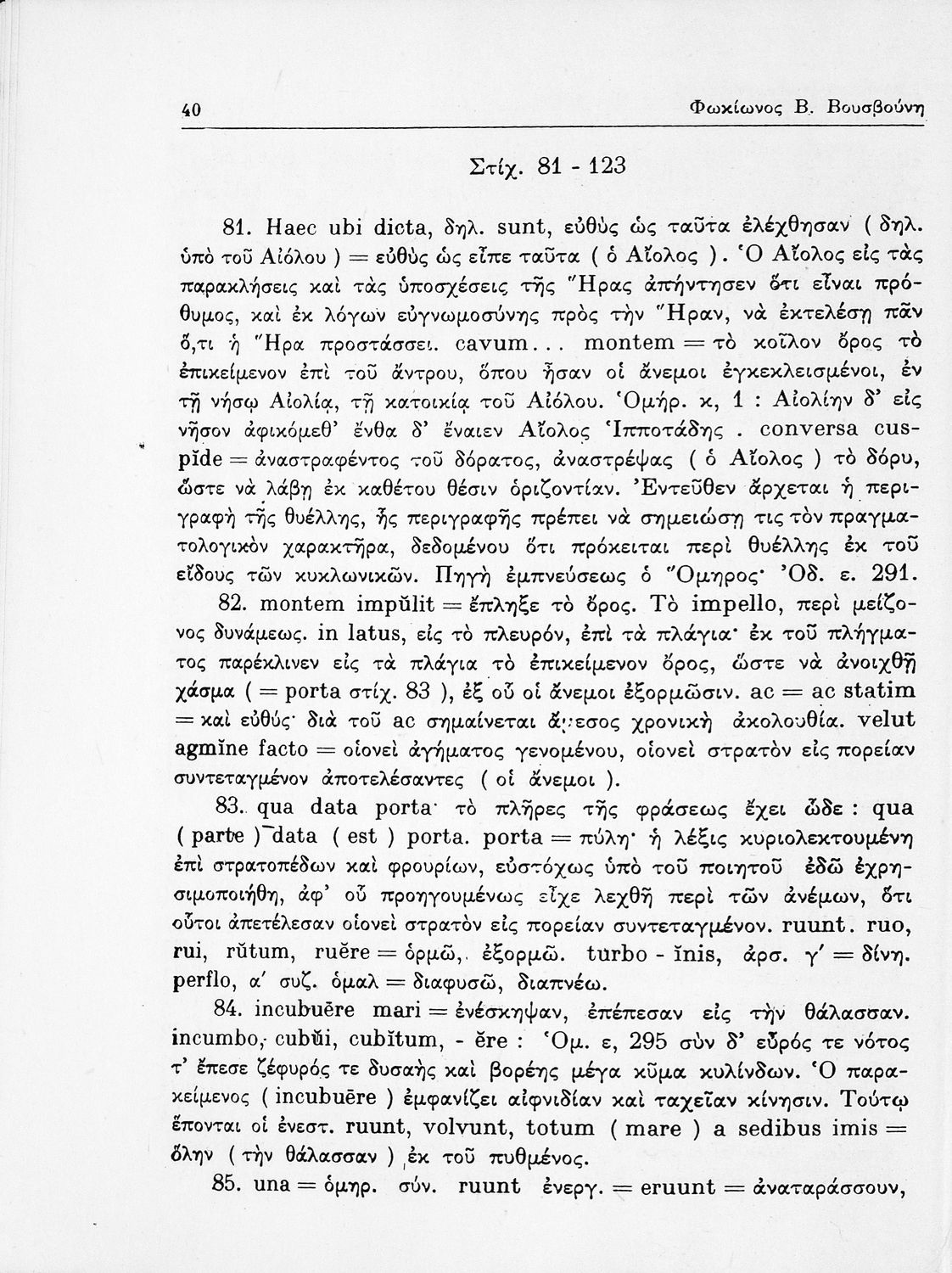 Πόπλιος Βιργίλιος Μάρων (P. Vergilius Maro), Μάρκος Τύλλιος Κικέρωνας (Marcus Tullius Ciceco), Κουίντος Οράτιος Φλάκκος (Q. Horati Flacci), Φωκίωνας Β. Βουσβούνης, Ερρίκος Σκάσσης, Ζαφείριος Ν. Φραγκίσκος (σχόλια)