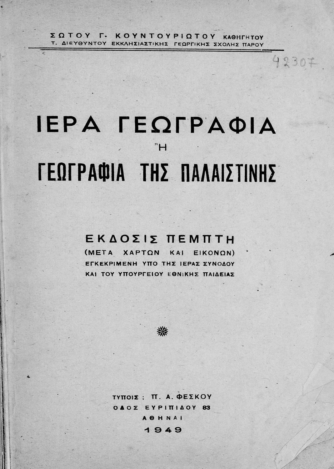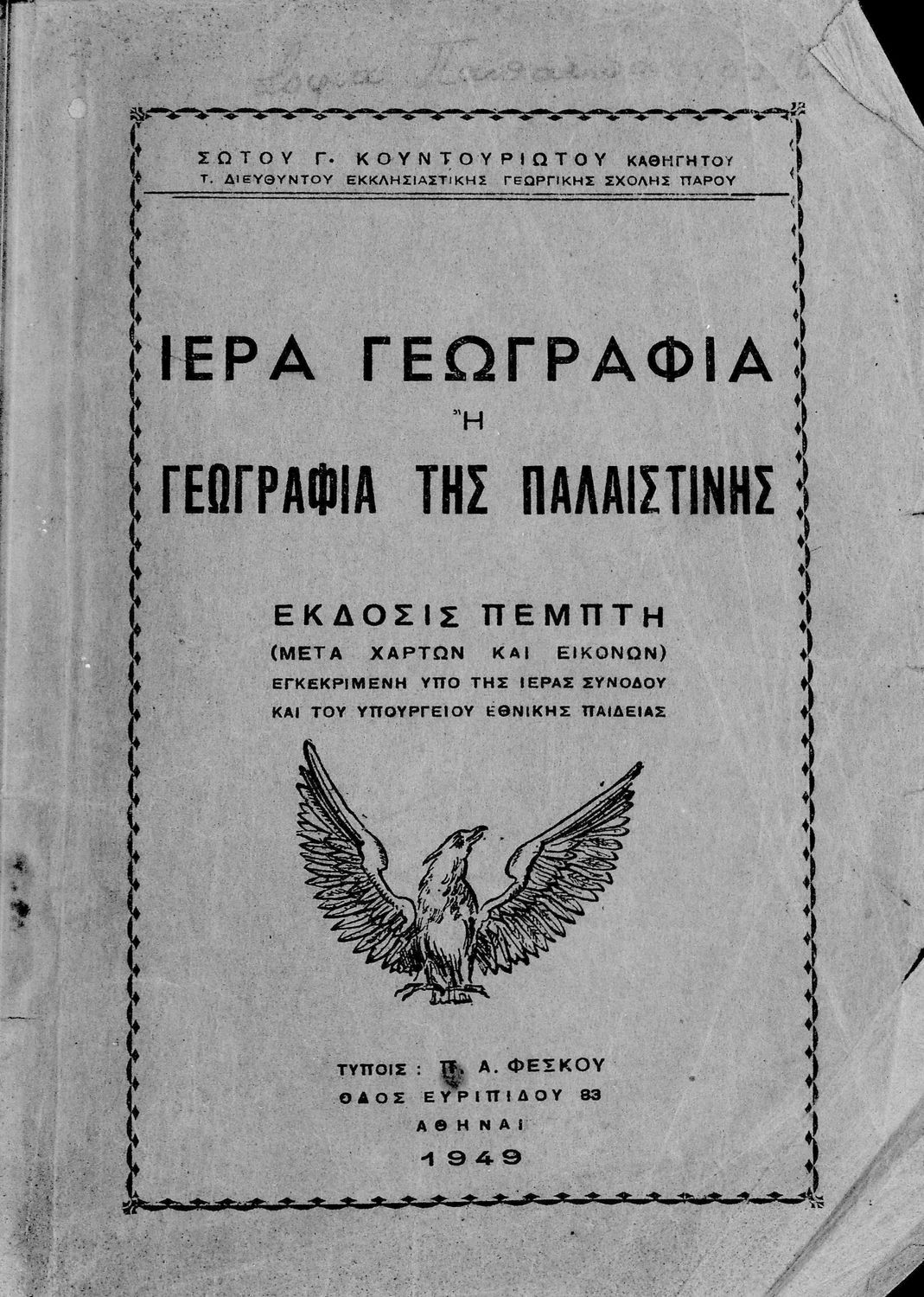 Εκδότης: Π. Α. Φέσκος Έτος έκδοσης: 1949 Τόπος έκδοσης: Αθήνα Έκδοση: 5η Υπουργική απόφαση / Σύμβαση: 48216/24-6-1949 Έτος έγκρισης: 1949 |