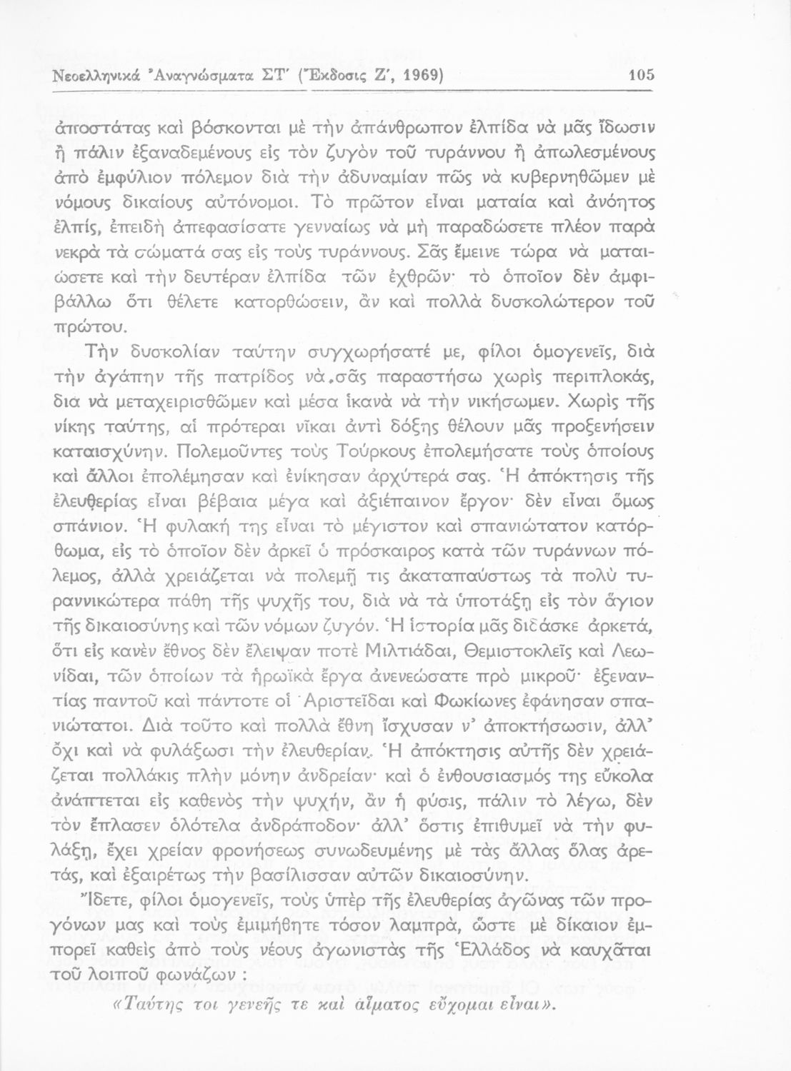 Σχολικό εγχειρίδιο Νέων Ελληνικών ΣΤ΄ Γυμνασίου που περιέχει πεζά και ποιήματα συγγραφέων της βυζαντινής και μεταβυζαντινής περιόδου πατριωτικού και θρησκευτικού περιεχομένου και δημοτικά τραγούδια. ...