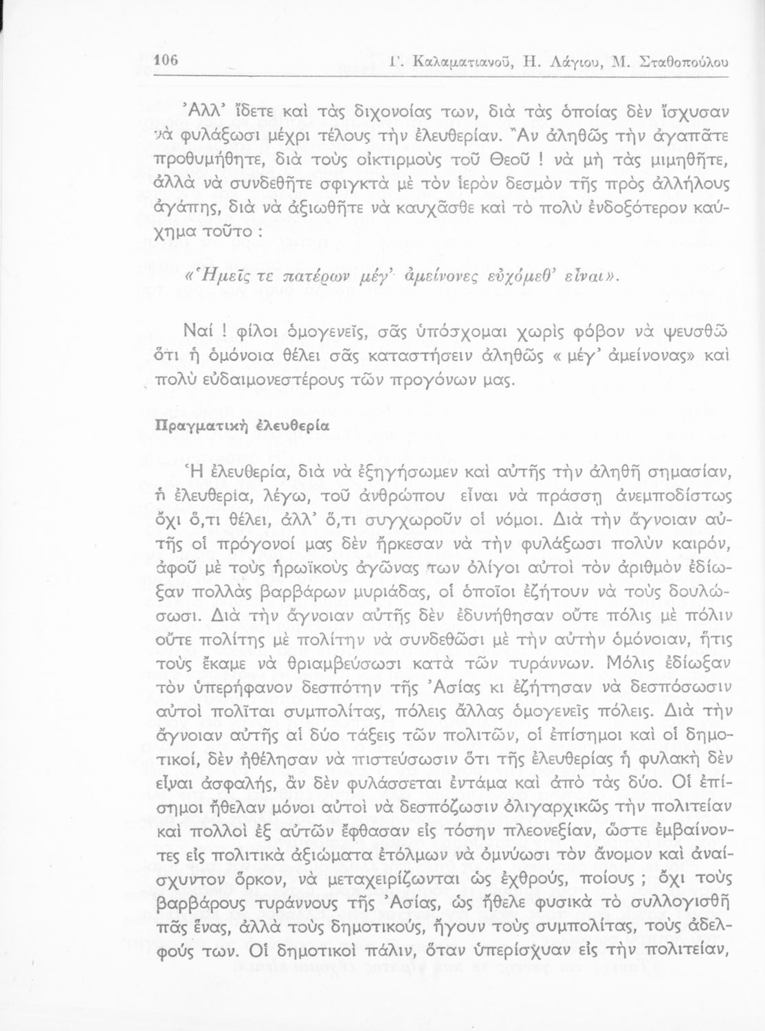 Γ. Καλαματιανός, Η. Λάγιος, Μ. Σταθοπούλου-Χριστοφέλλη