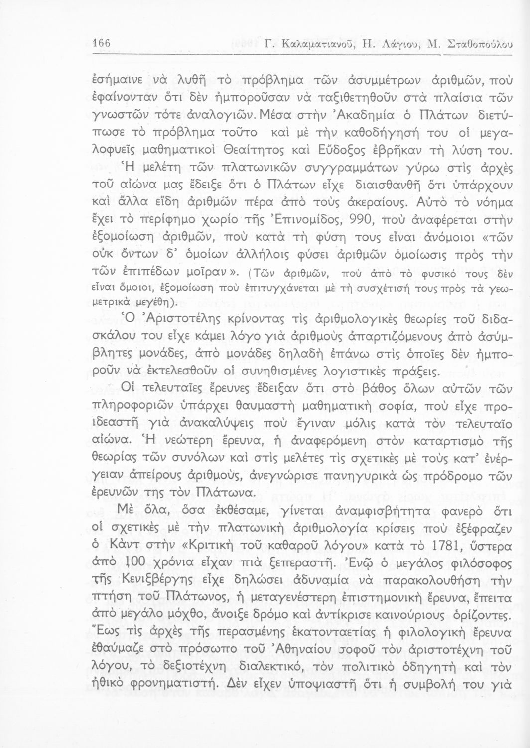 Γ. Καλαματιανός, Η. Λάγιος, Μ. Σταθοπούλου-Χριστοφέλλη