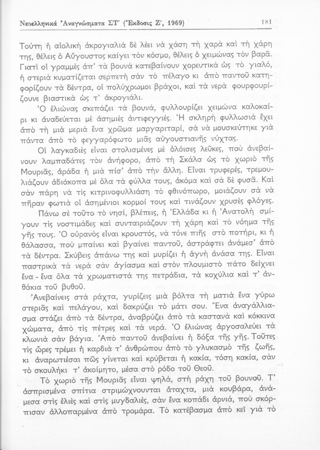 Σχολικό εγχειρίδιο Νέων Ελληνικών για τη ΣΤ΄ Γυμνασίου. Περιέχει νεοελληνικά αναγνώσματα της εποχής με ποιήματα και κείμενα Ελλήνων και ξένων ποιητών και λογοτεχνών. Διαθέτει παράρτημα με λεξιλόγιο και βιογραφίες συγγραφέων. Στο βιβλίο υπάρχει το σύμβολο της επταετίας.