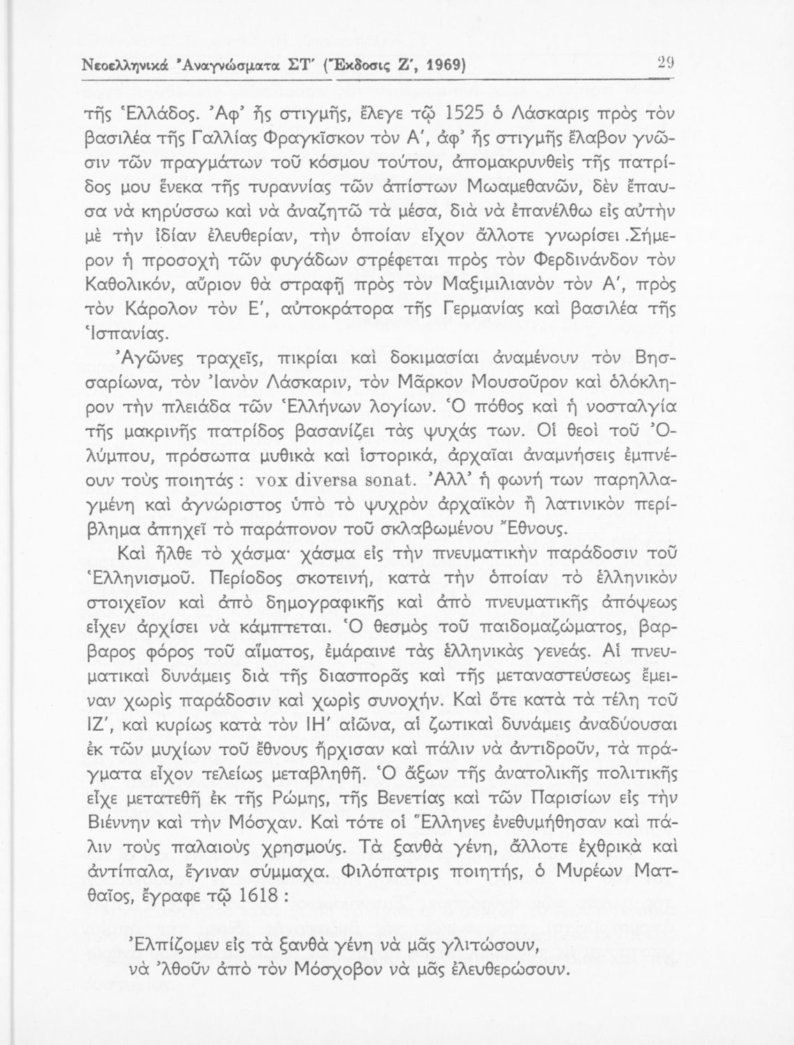 LDR 01351 2200217 4500 035 ## _a01-42309 040 ## _aΙνστιτούτο Εκπαιδευτικής Πολιτικής 041 ## _ael 100 ## _aΓ. Καλαματιανός _aΗ. Λάγιος _aΜ. Σταθοπούλου-Χριστοφέλλη 110 ## _a42309 245 0# _aΝεοελληνικά αναγνώσματα ΣΤ΄ Γυμνασίου 250 ## _a7η Έκδοση 260 ## _aΑθήνα _bΟργανισμός Εκδόσεως Διδακτικών Βιβλίων _c1969 300 ## _a387 520 ## _aΣχολικό εγχειρίδιο Νέων Ελληνικών για τη ΣΤ΄ Γυμνασίου. Περιέχει νεοελληνικά αναγνώσματα της εποχής με ποιήματα και κείμενα Ελλήνων και ξένων ποιητών και λογοτεχνών. Διαθέτει παράρτημα με λεξιλόγιο και βιογραφίες συγγραφέων. Στο βιβλίο υπάρχει το σύμβολο της επταετίας. 521 ## _aΣΤ' Γυμνασίου 522 ## _aΕλλάδα 546 ## _aΚαθαρεύουσα 563 ## _aΜαλακό Εξώφυλλο 583 ## _a1818/20-5-1969 _c1969 650 #4 _aΒιογραφίες _aΔιηγήματα _aΕπικά _aΛυρικά _aΜελέτες