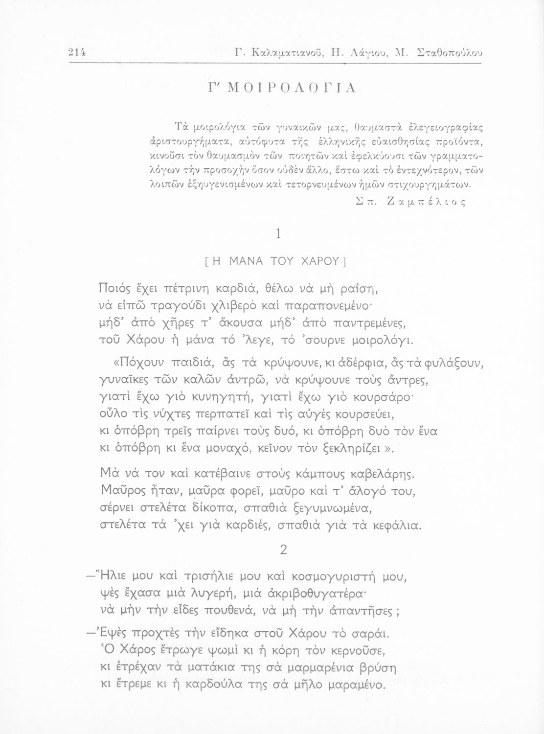 Γ. Καλαματιανός, Η. Λάγιος, Μ. Σταθοπούλου-Χριστοφέλλη