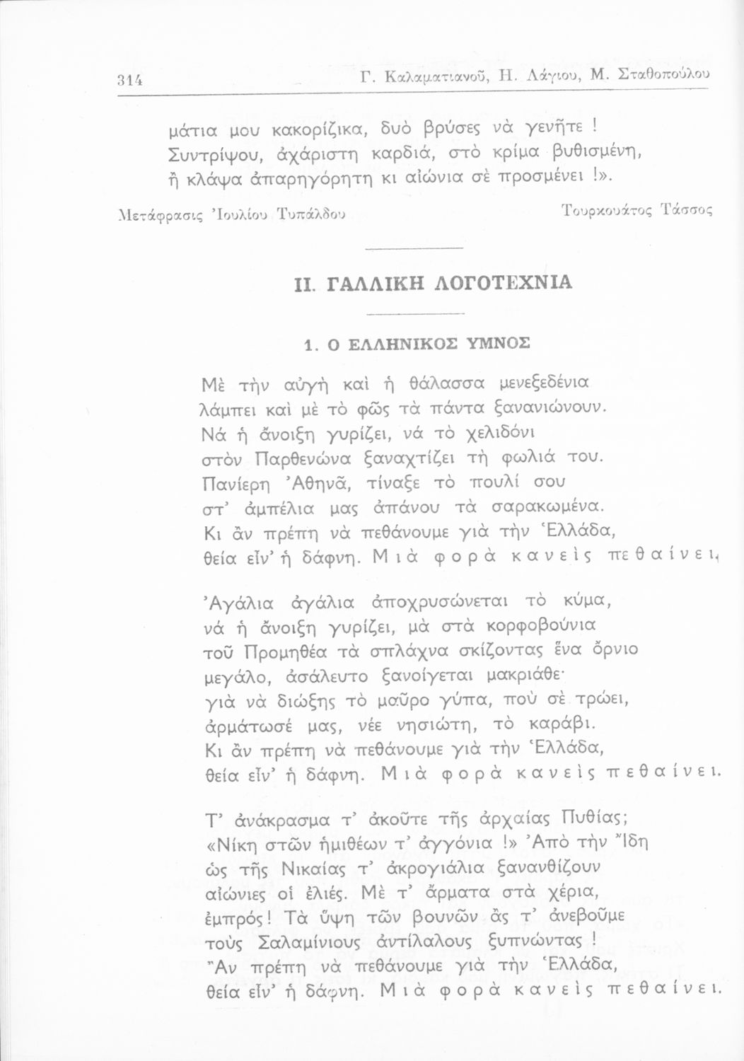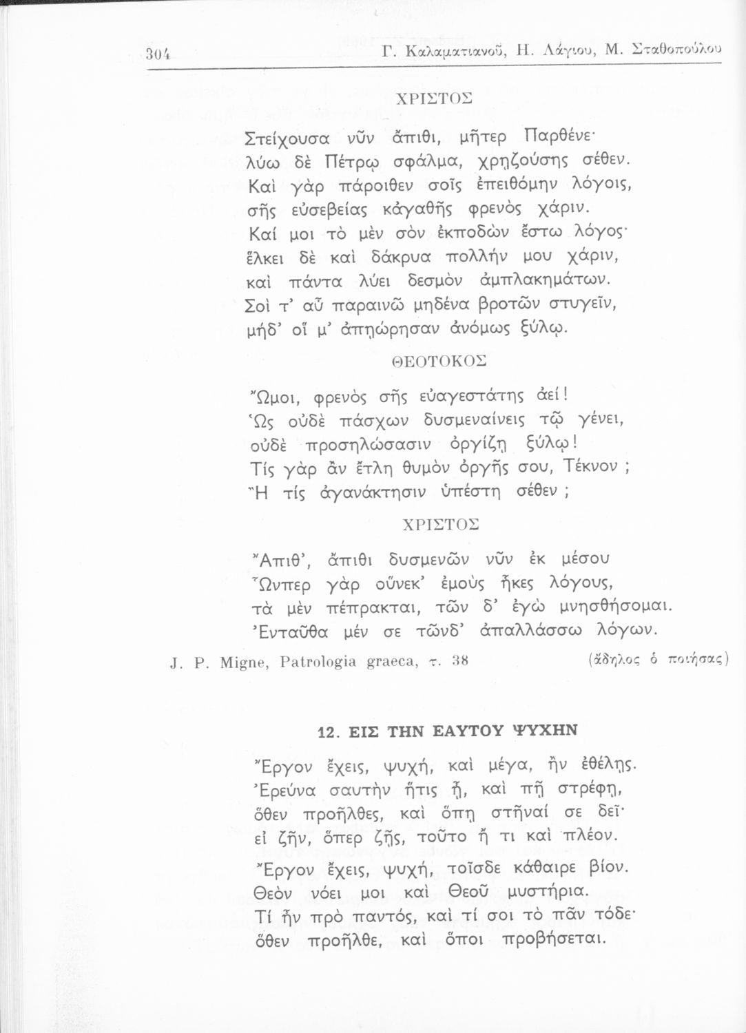 Γ. Καλαματιανός, Η. Λάγιος, Μ. Σταθοπούλου-Χριστοφέλλη