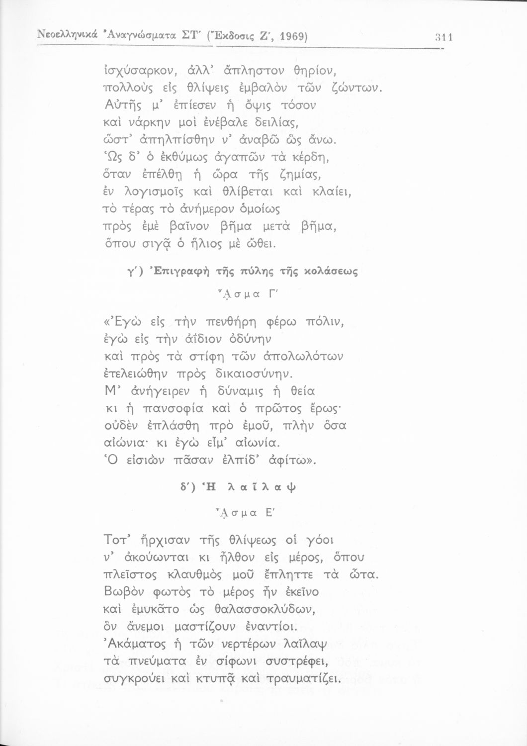 Σχολικό εγχειρίδιο Νέων Ελληνικών για τη ΣΤ΄ Γυμνασίου. Περιέχει νεοελληνικά αναγνώσματα της εποχής με ποιήματα και κείμενα Ελλήνων και ξένων ποιητών και λογοτεχνών. Διαθέτει παράρτημα με λεξιλόγιο και βιογραφίες συγγραφέων. Στο βιβλίο υπάρχει το σύμβολο της επταετίας.