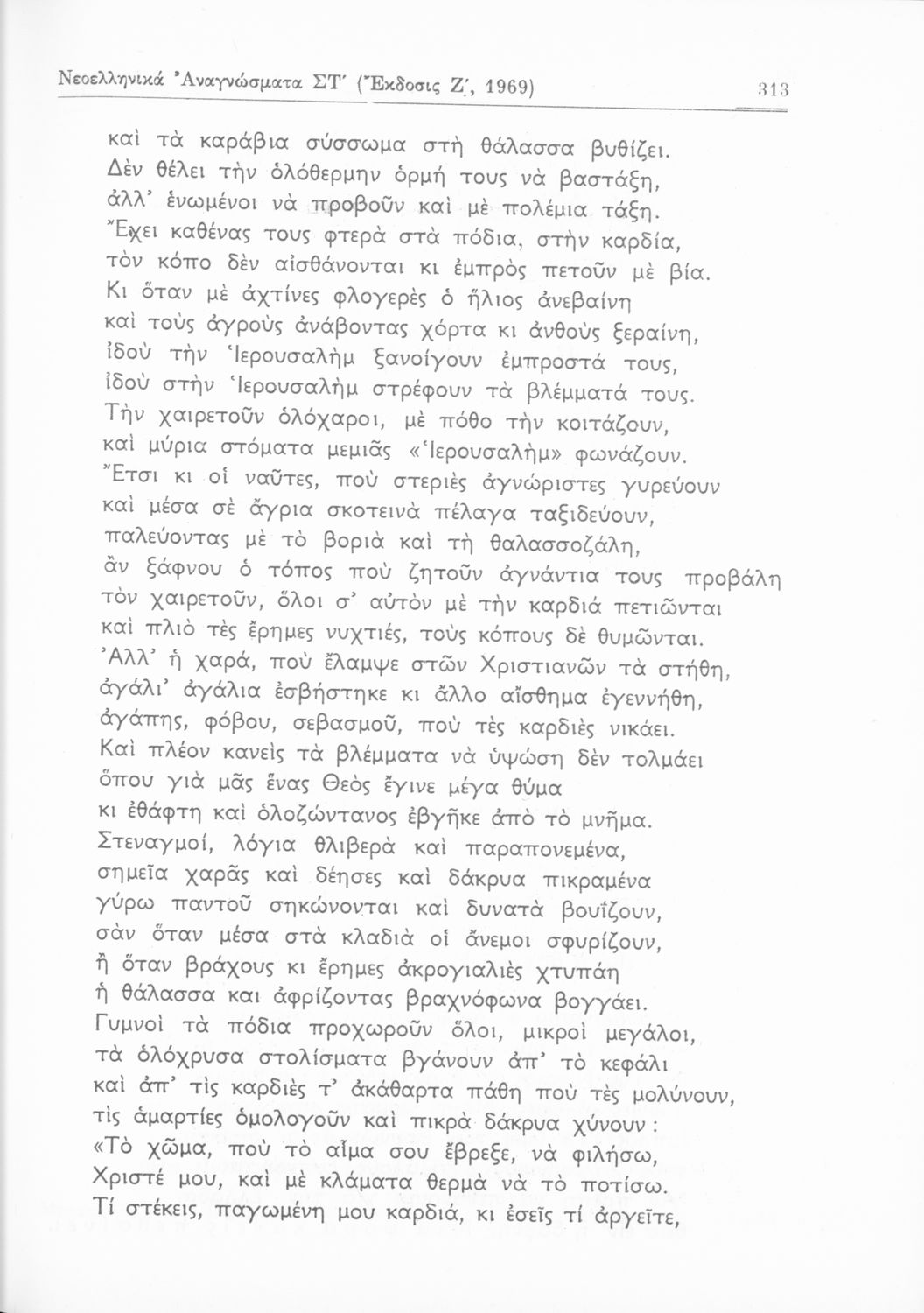 Σχολικό εγχειρίδιο Νέων Ελληνικών ΣΤ΄ Γυμνασίου που περιέχει πεζά και ποιήματα συγγραφέων της βυζαντινής και μεταβυζαντινής περιόδου πατριωτικού και θρησκευτικού περιεχομένου και δημοτικά τραγούδια. ...