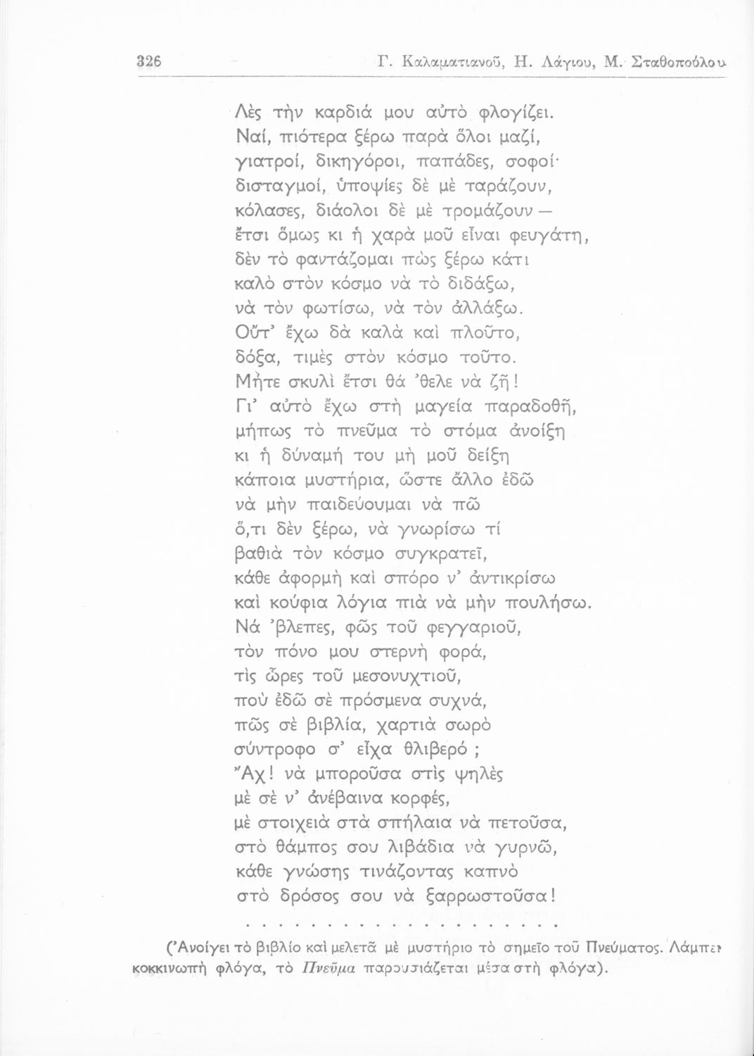 Σχολικό εγχειρίδιο Νέων Ελληνικών για τη ΣΤ΄ Γυμνασίου. Περιέχει νεοελληνικά αναγνώσματα της εποχής με ποιήματα και κείμενα Ελλήνων και ξένων ποιητών και λογοτεχνών. Διαθέτει παράρτημα με λεξιλόγιο και βιογραφίες συγγραφέων. Στο βιβλίο υπάρχει το σύμβολο της επταετίας.
