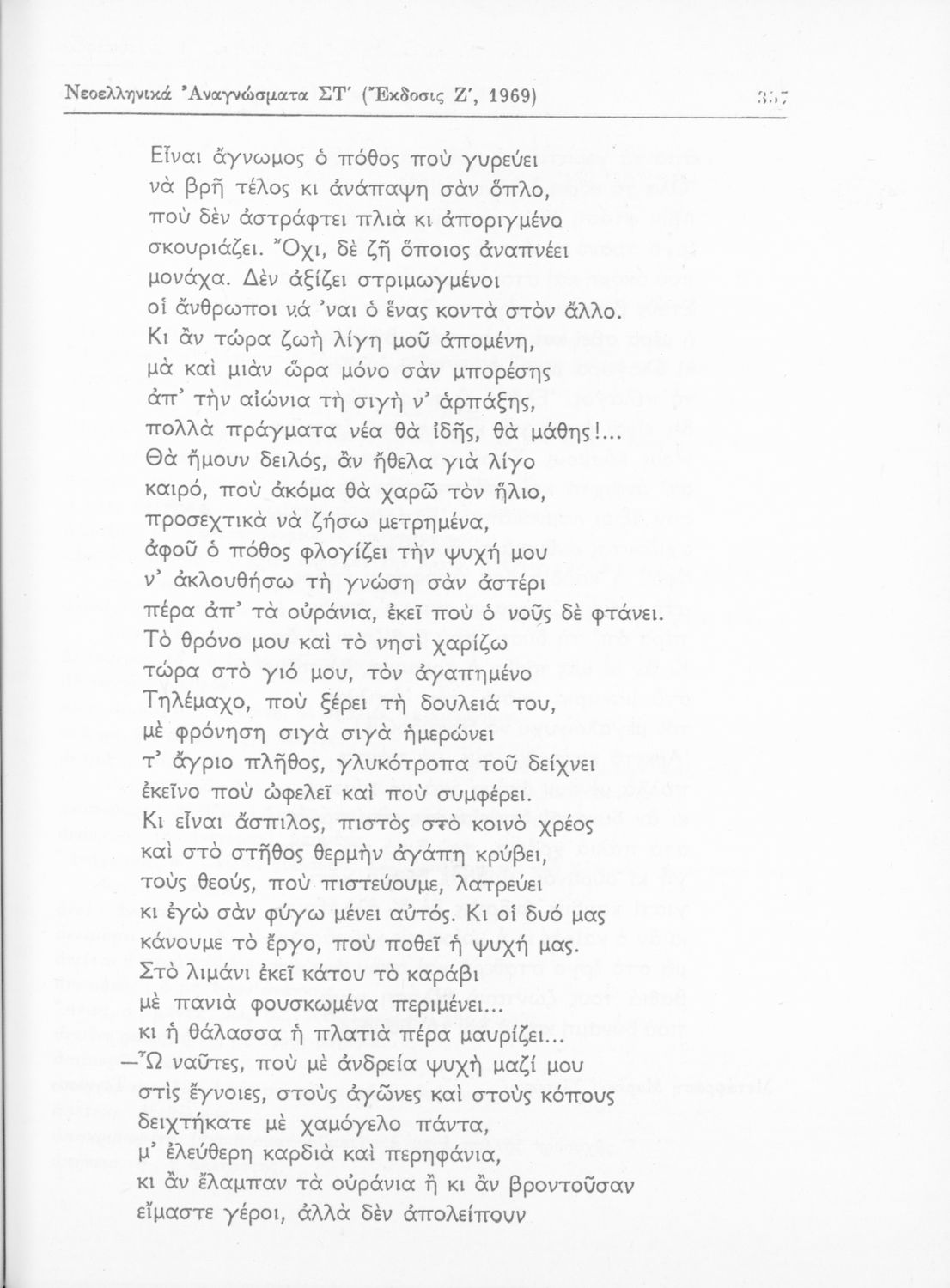 Σχολικό εγχειρίδιο Νέων Ελληνικών για τη ΣΤ΄ Γυμνασίου. Περιέχει νεοελληνικά αναγνώσματα της εποχής με ποιήματα και κείμενα Ελλήνων και ξένων ποιητών και λογοτεχνών. Διαθέτει παράρτημα με λεξιλόγιο και βιογραφίες συγγραφέων. Στο βιβλίο υπάρχει το σύμβολο της επταετίας.
