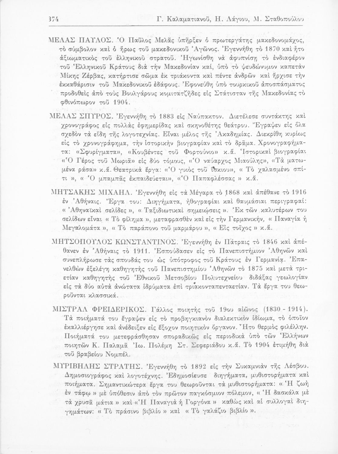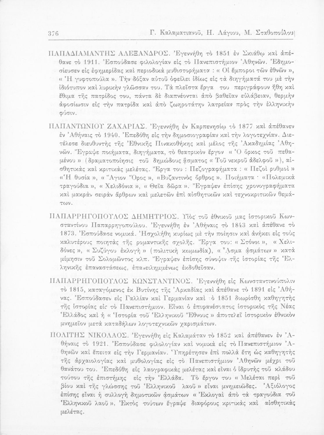 Γ. Καλαματιανός, Η. Λάγιος, Μ. Σταθοπούλου-Χριστοφέλλη