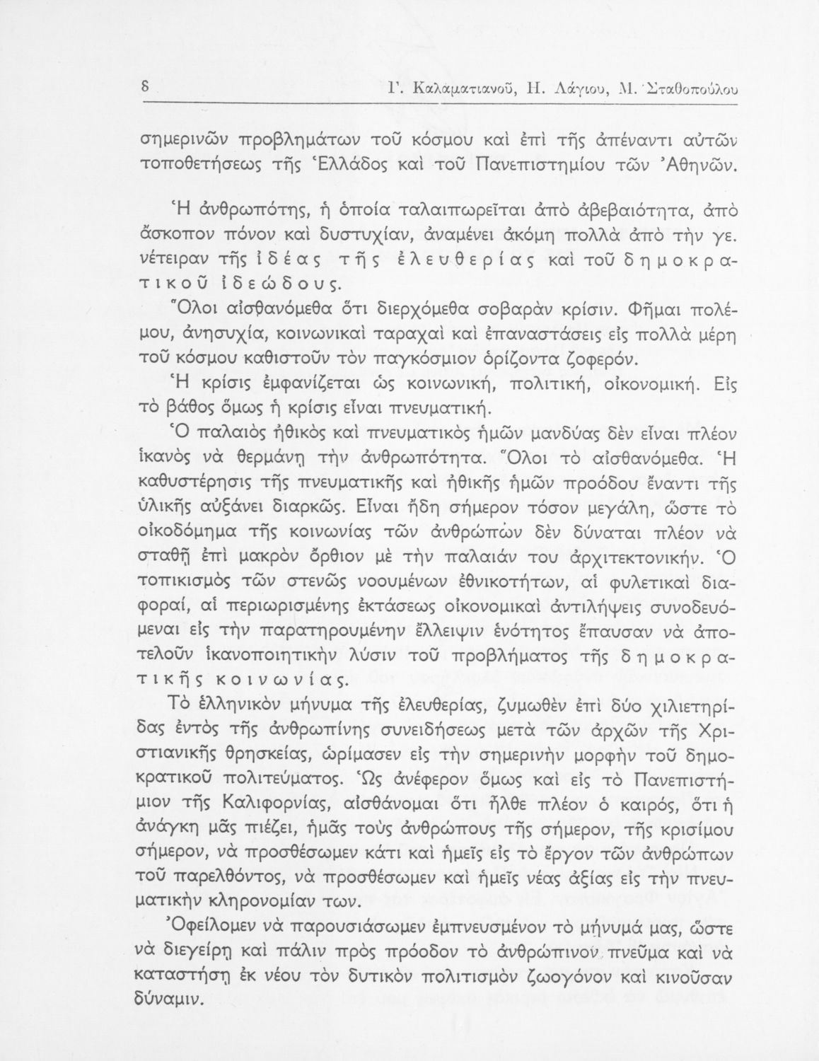 Γ. Καλαματιανός, Η. Λάγιος, Μ. Σταθοπούλου-Χριστοφέλλη