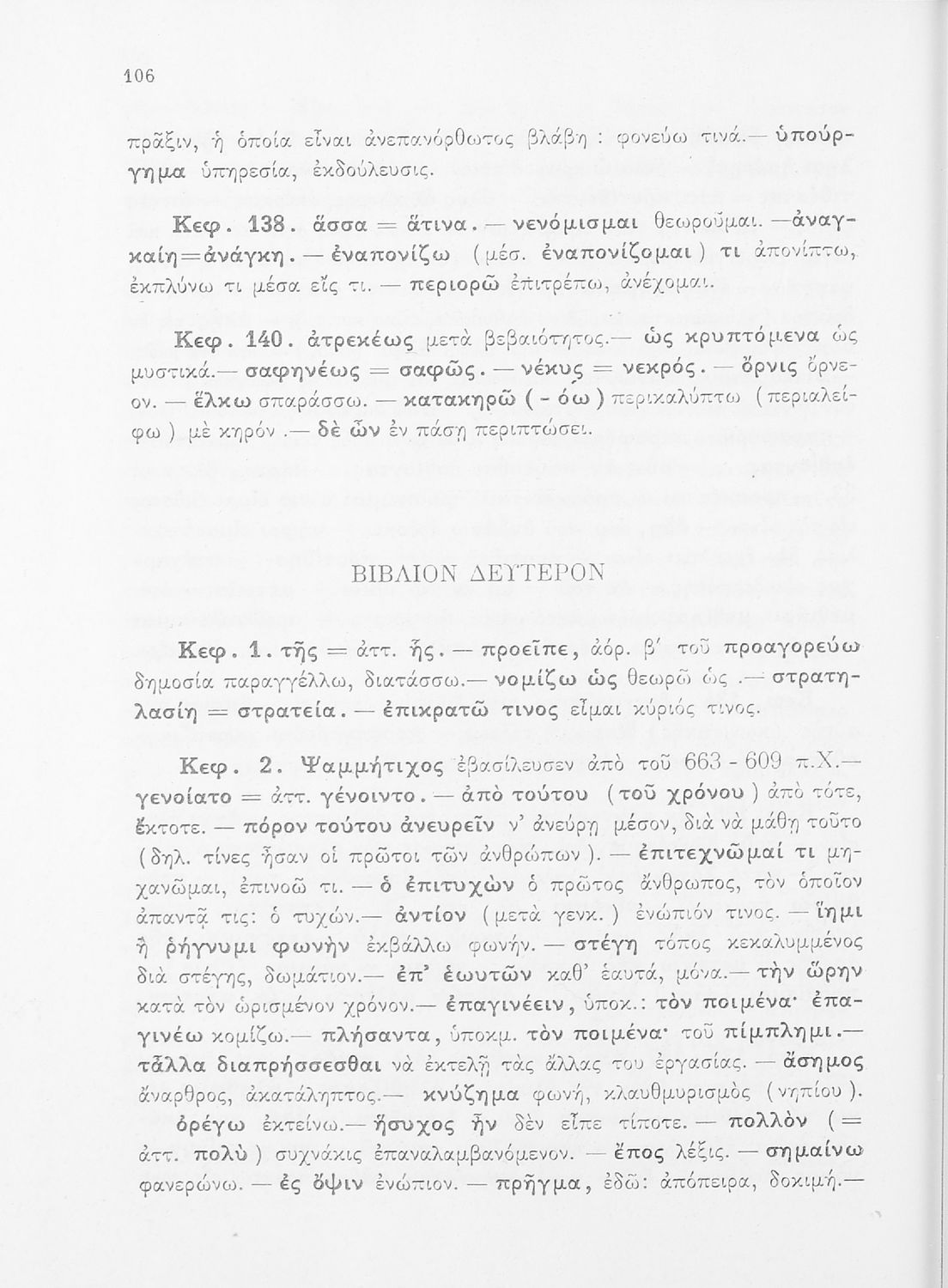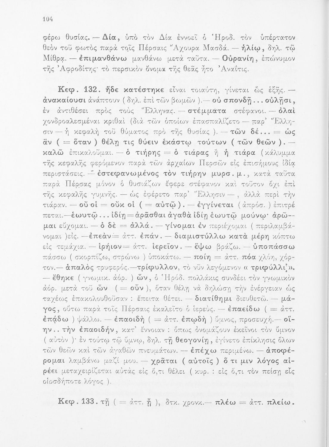 Σχολικό εγχειρίδιο Αρχαίων Ελληνικών Γ΄ Γυμνασίου που περιλαμβάνει εισαγωγή στη ζωή και το έργο του Ηρόδοτου, αποσπάσματα από την Ιστορία του, ερμηνευτικές σημειώσεις και τοπογραφικούς πίνακες με εικόνες και χάρτες. Φέρει το σύμβολο της δικτατορίας.