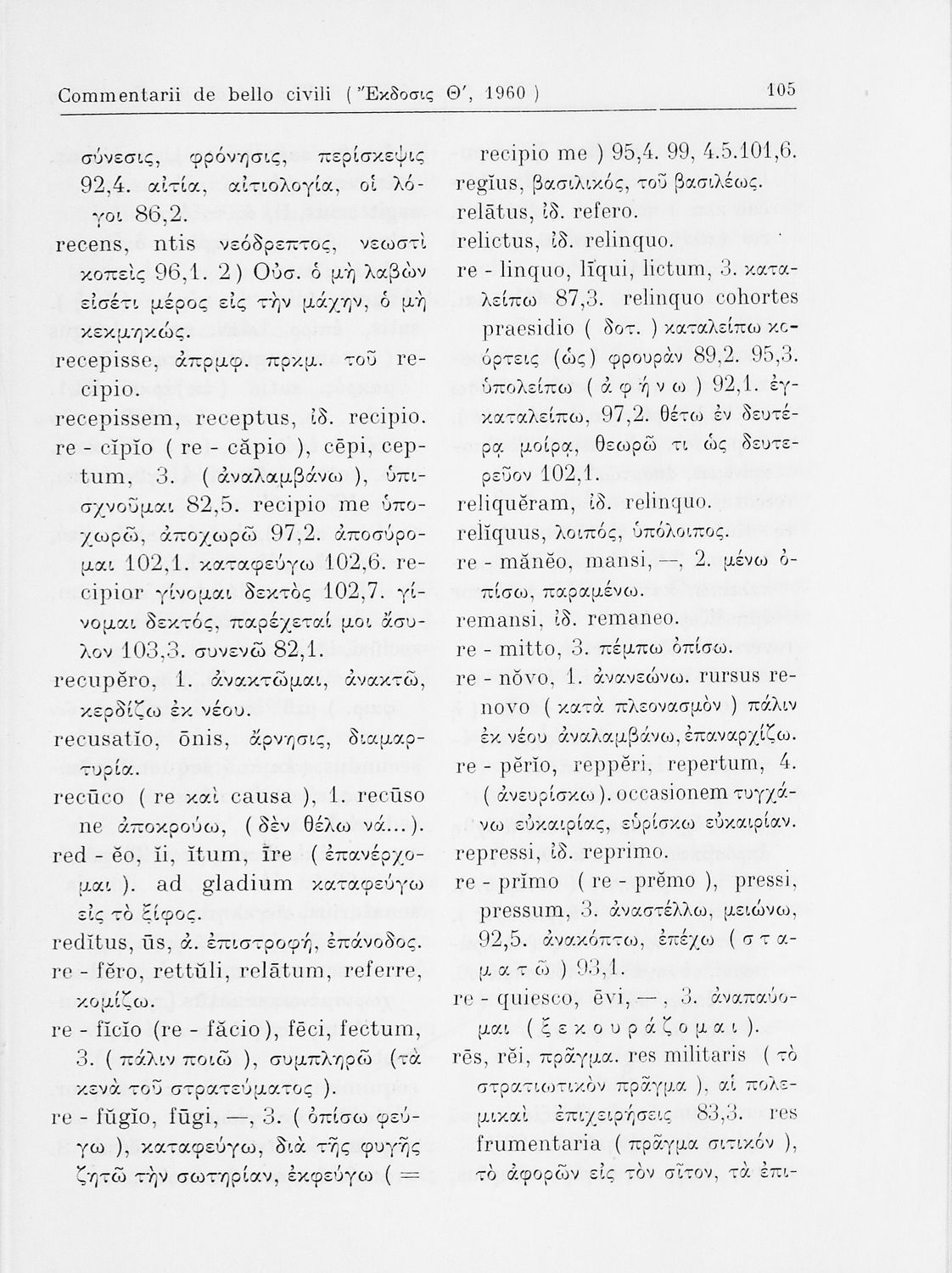 Σχολικό εγχειρίδιο Λατινικών που περιέχει σύντομο βιογραφικό σημείωμα του Ιούλιου Καίσαρα, εισαγωγή στο έργο, κείμενο, ιστορικό και γεωγραφικό πίνακα και λεξιλόγιο. Ο συγγραφέας ήταν καθηγητής της Λατινικής ...