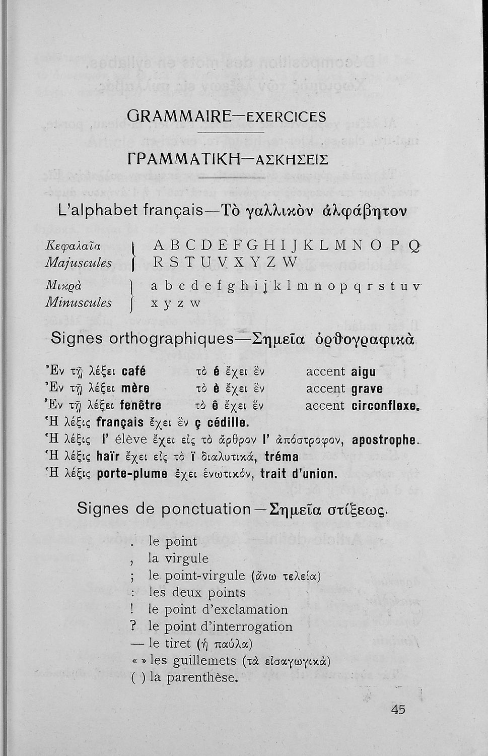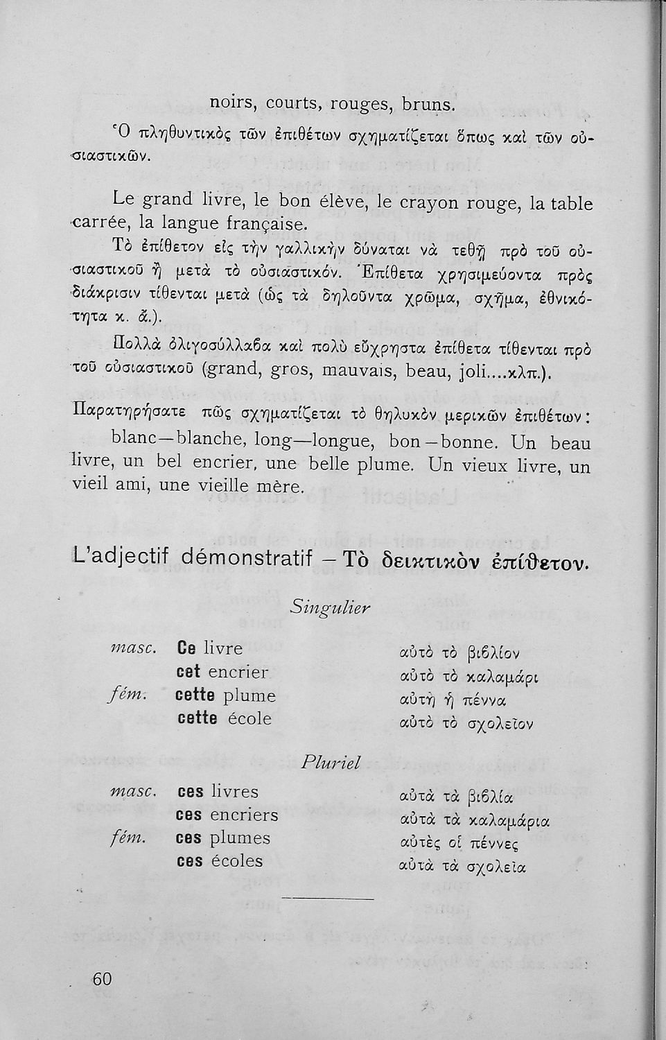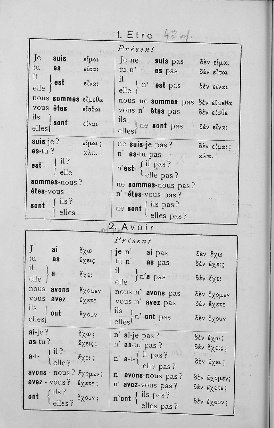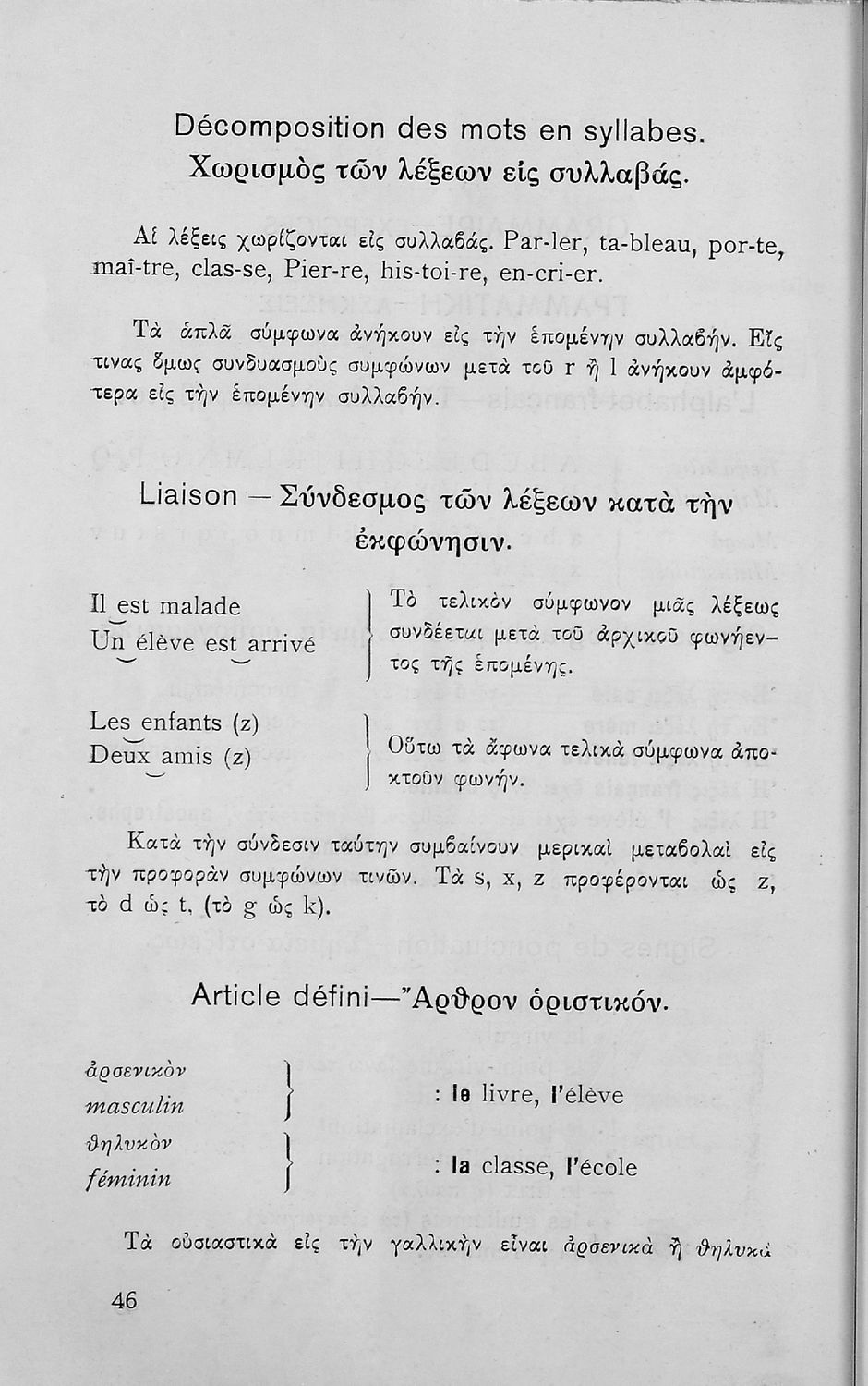 Σχολικό εγχειρίδιο Γαλλικών Γυμνασίου που περιλαμβάνει κείμενα στα γαλλικά και ελληνικά, θεωρία, λεξιλόγιο και βιογραφικά σημειώματα των συγγραφέων. Ο συγγραφέας ήταν καθηγητής της Βαρβακείου πρότυπης σχολής