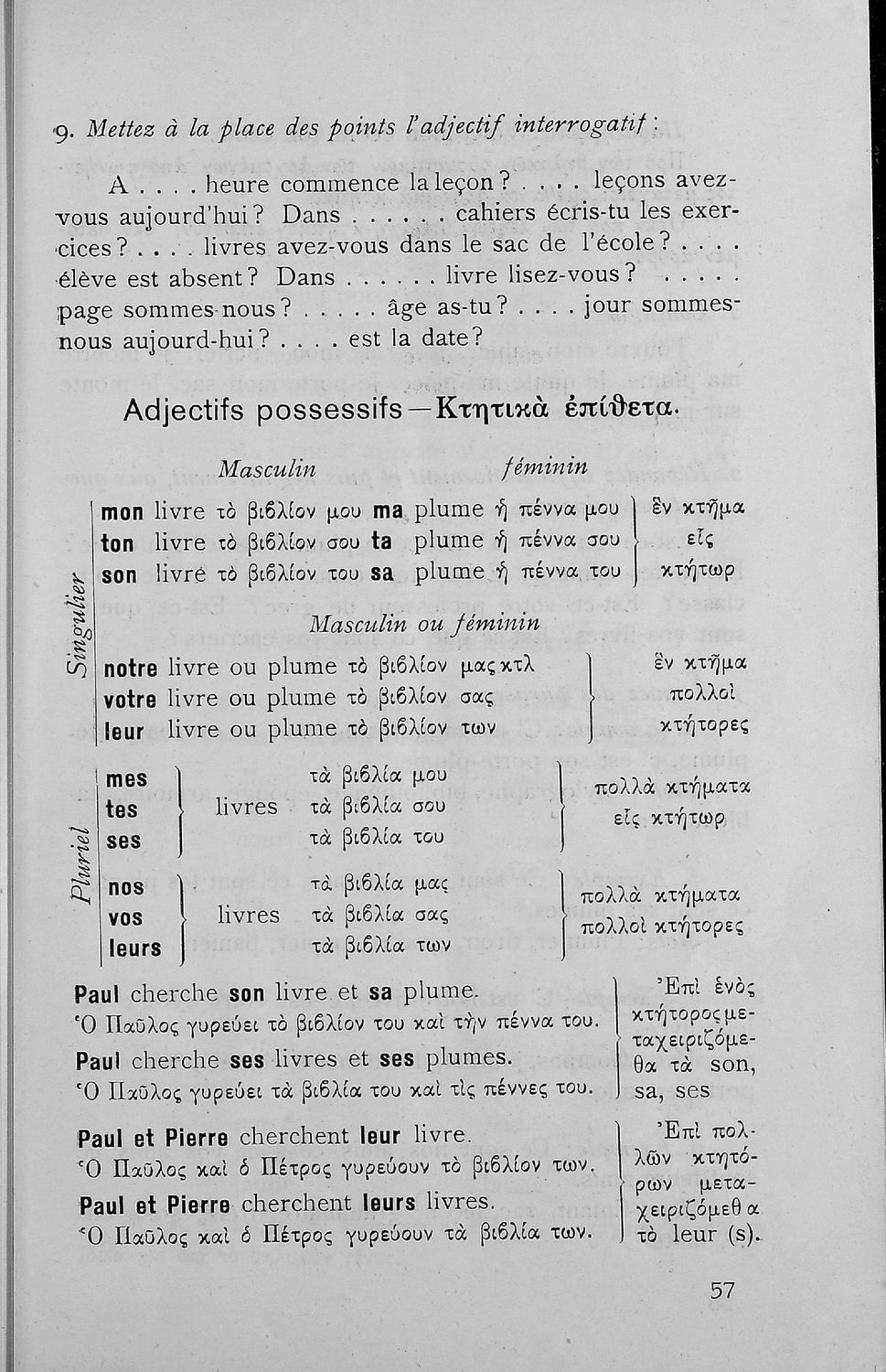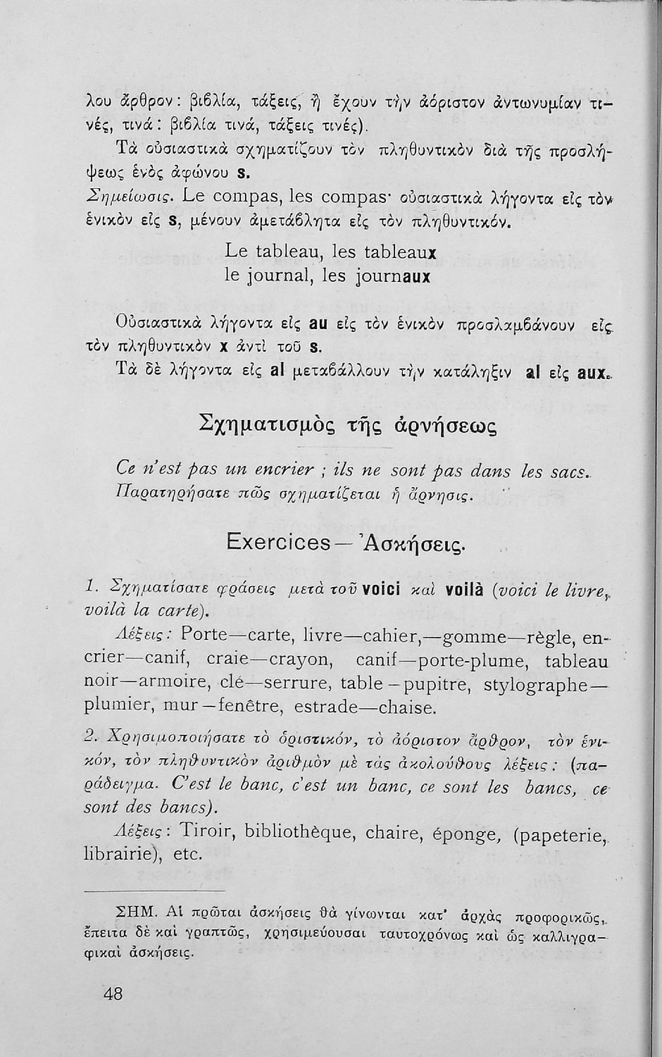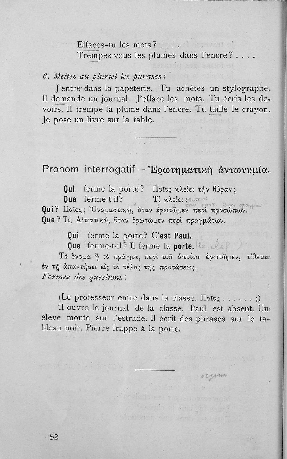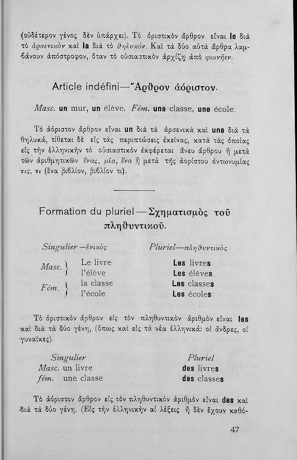 Σχολικό εγχειρίδιο Γαλλικών Γυμνασίου που περιλαμβάνει κείμενα στα γαλλικά και ελληνικά, θεωρία, λεξιλόγιο και βιογραφικά σημειώματα των συγγραφέων. Ο συγγραφέας ήταν καθηγητής της Βαρβακείου πρότυπης σχολής