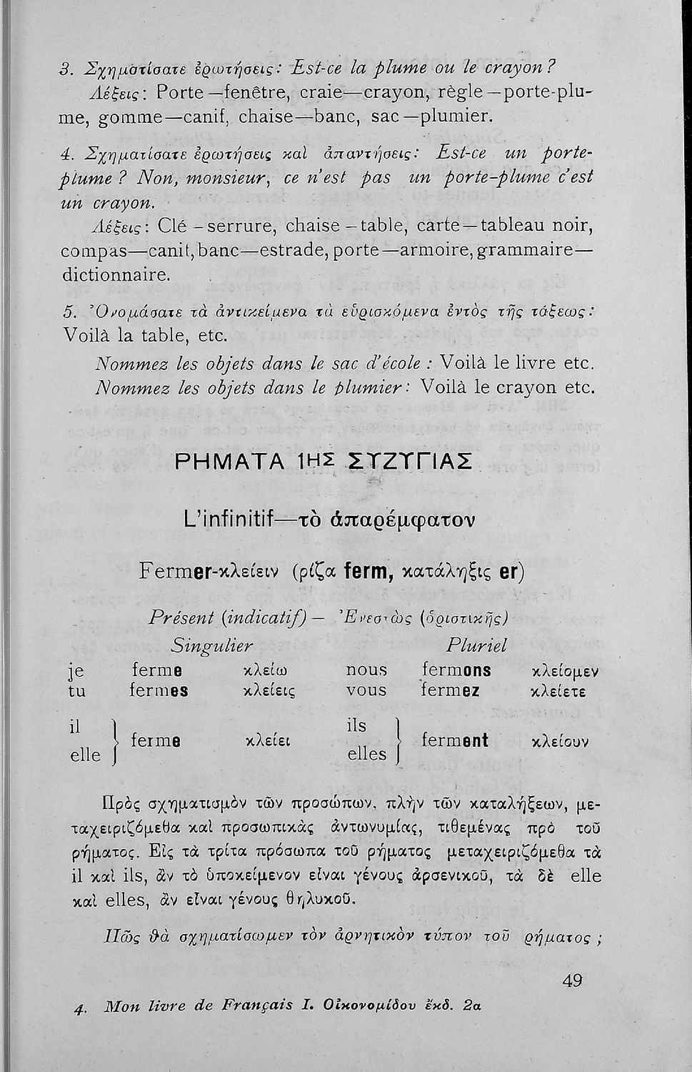 Mon livre de Francais δια την Β΄ των Γυμνασίων και Ημιγυμνασίων, βιβλίον 1ον