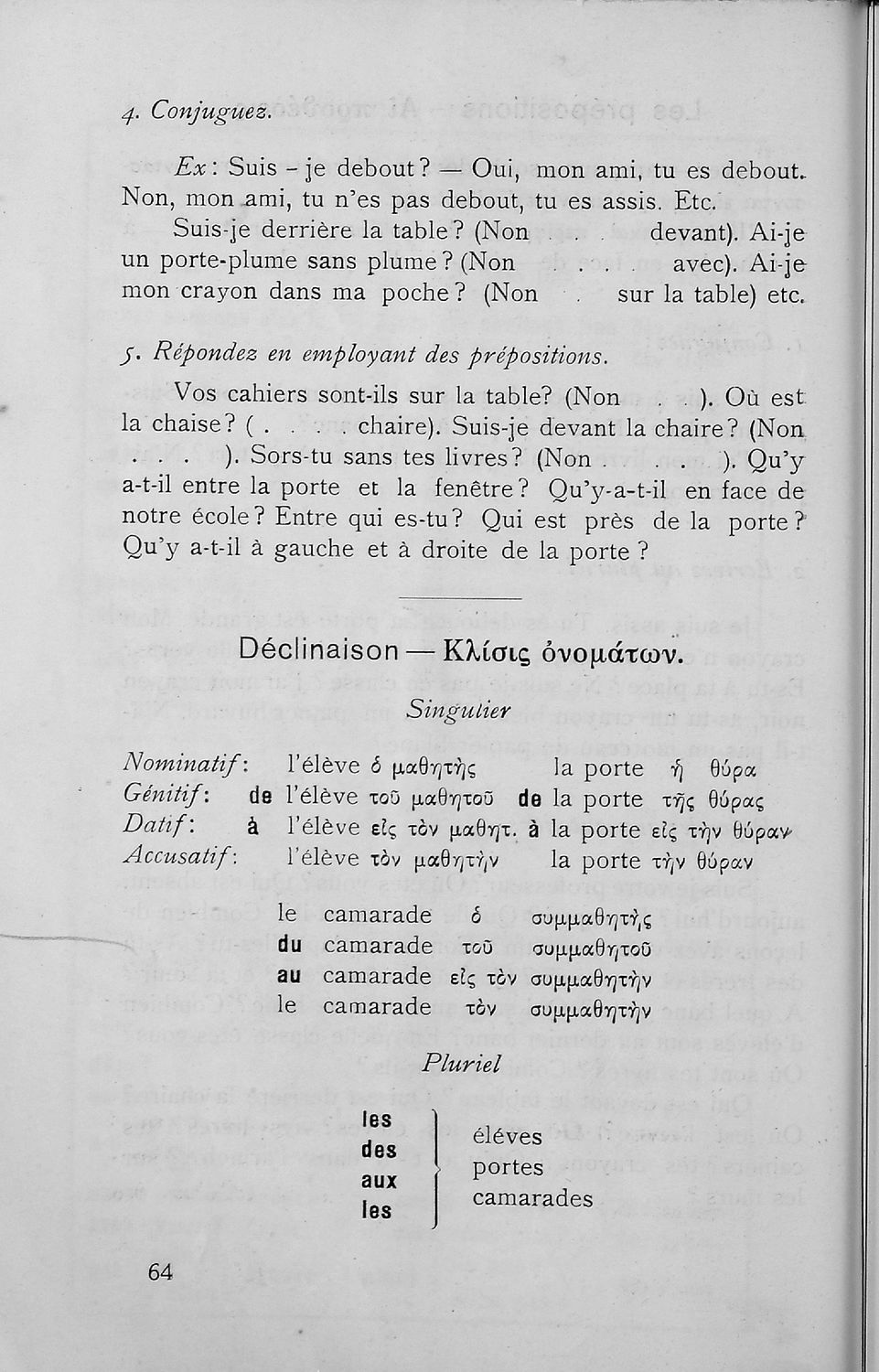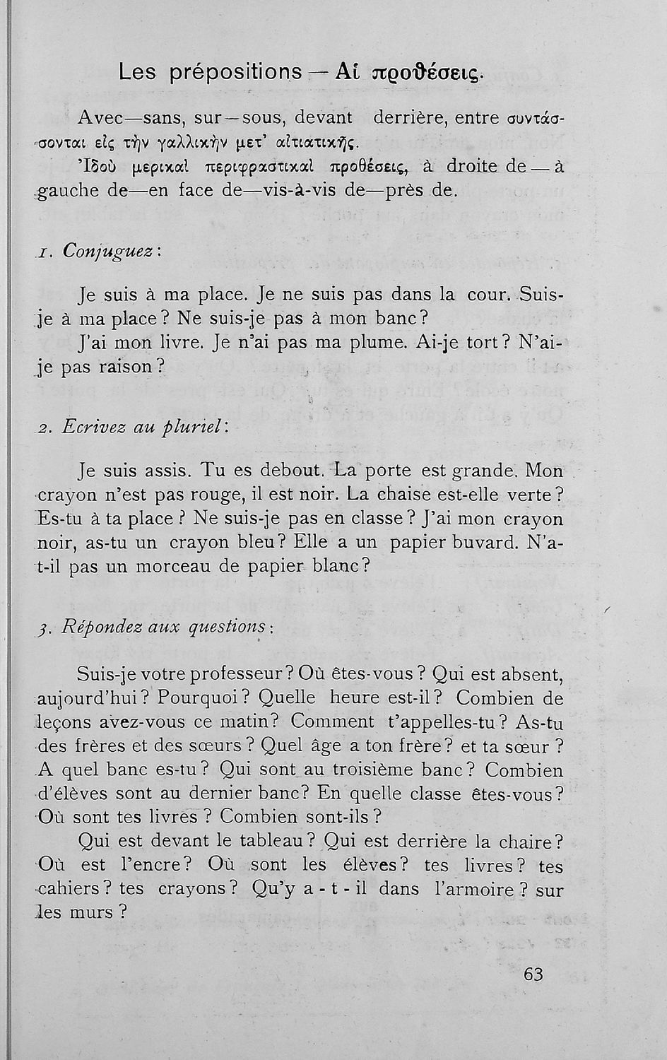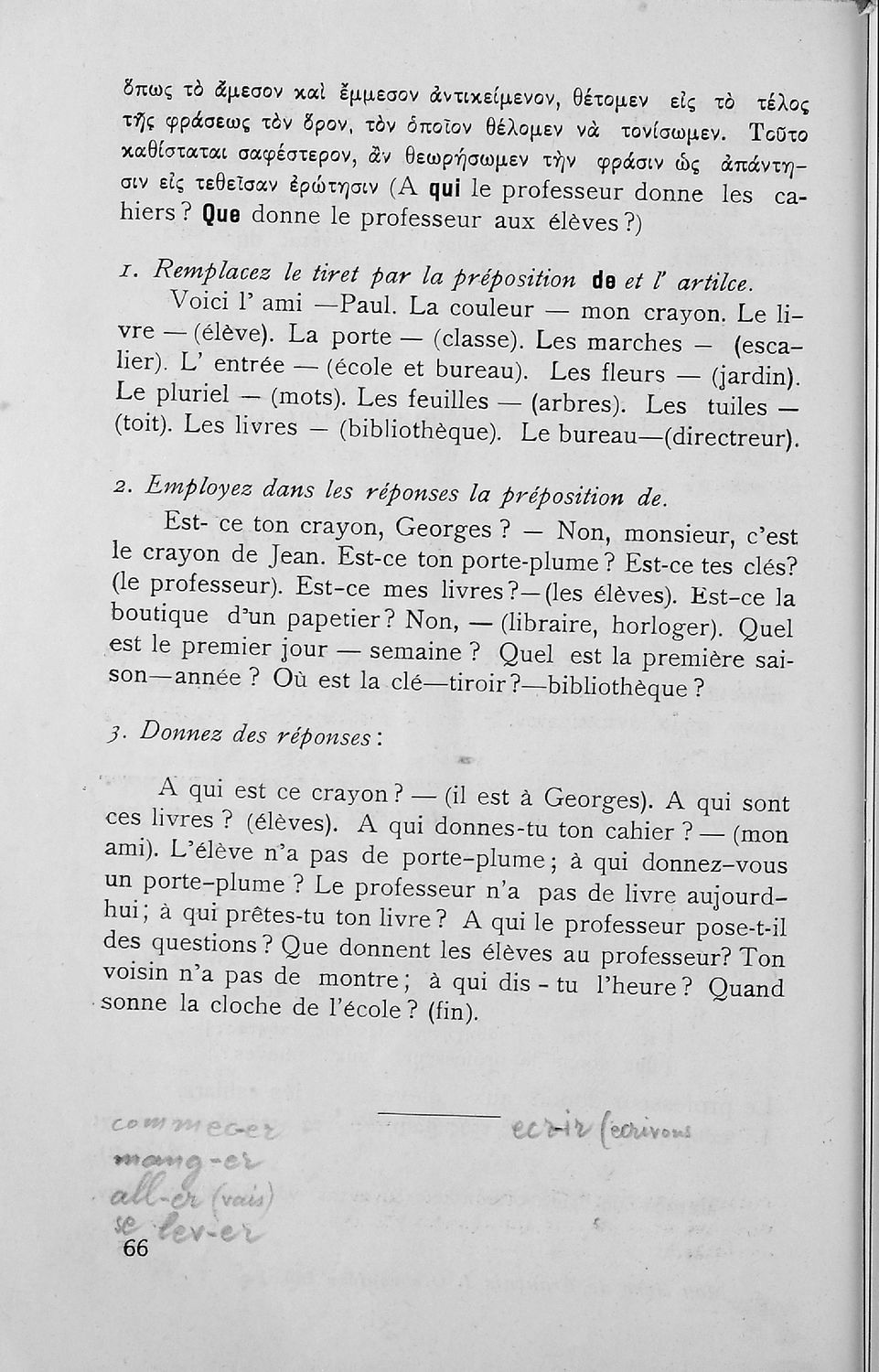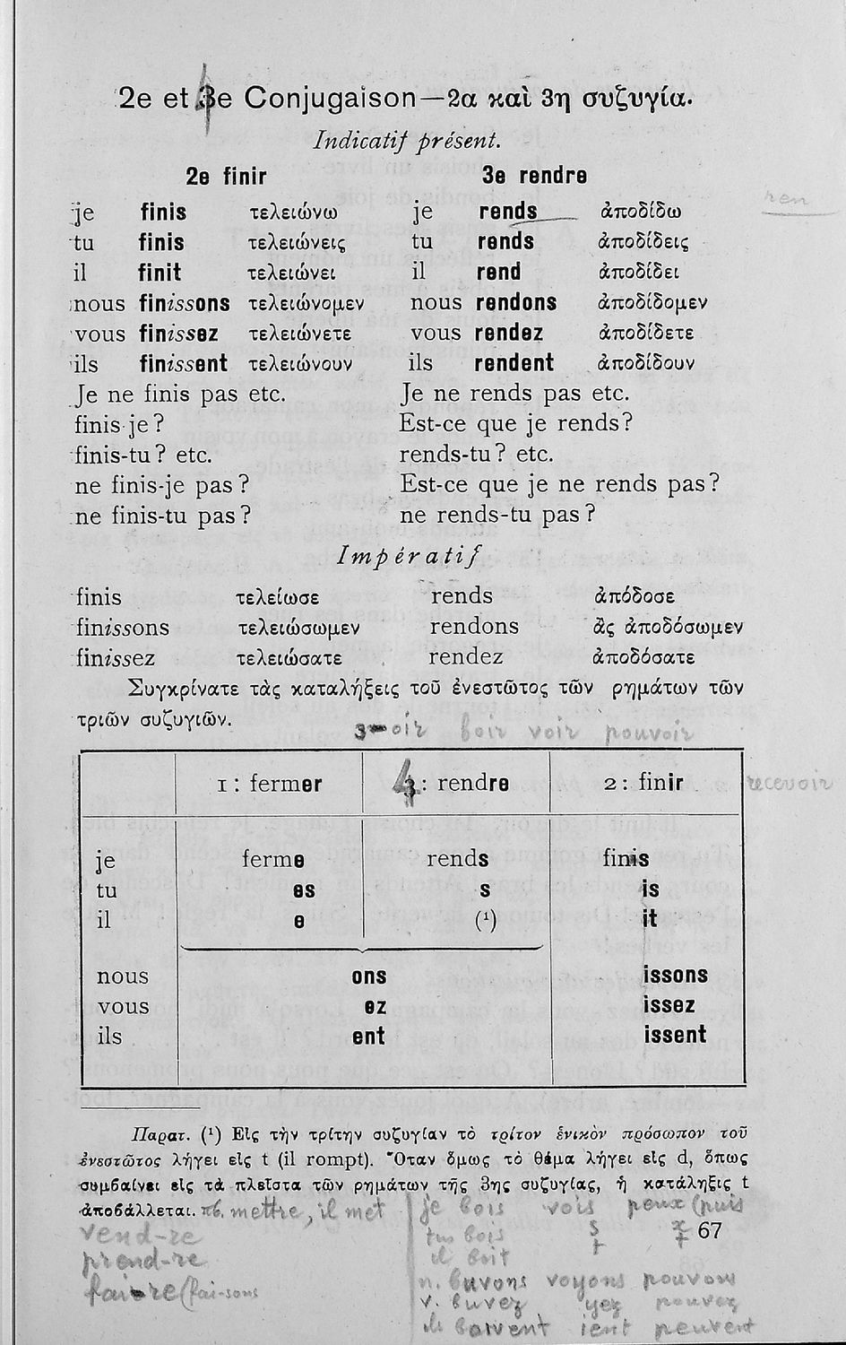 Σχολικό εγχειρίδιο Γαλλικών Γυμνασίου που περιλαμβάνει κείμενα στα γαλλικά και ελληνικά, θεωρία, λεξιλόγιο και βιογραφικά σημειώματα των συγγραφέων. Ο συγγραφέας ήταν καθηγητής της Βαρβακείου πρότυπης σχολής
