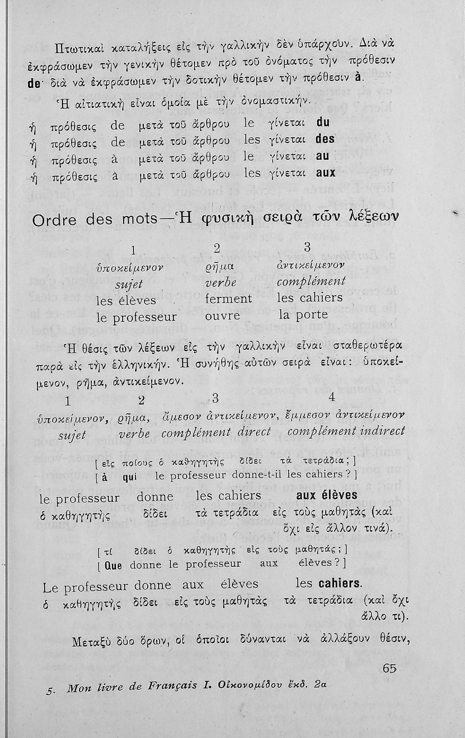 Mon livre de Francais δια την Β΄ των Γυμνασίων και Ημιγυμνασίων, βιβλίον 1ον