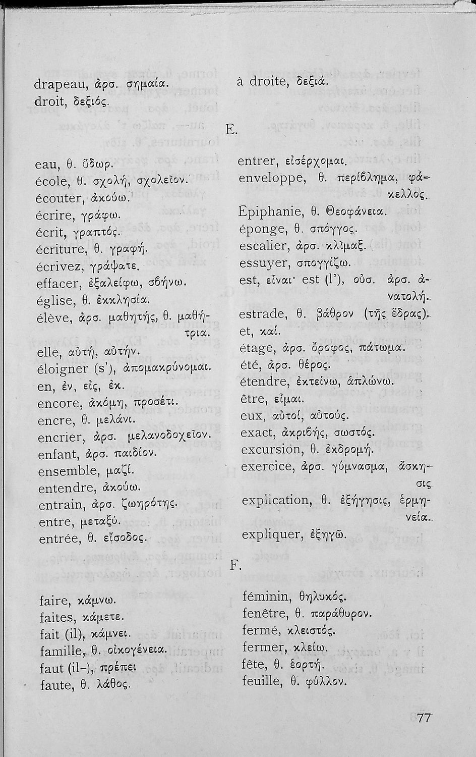 Σχολικό εγχειρίδιο Γαλλικών Β΄ Γυμνασίου που περιλαμβάνει πεζά, ποιήματα, γραμματικές ασκήσεις, και λεξιλόγιο. Ο συγγραφέας ήταν καθηγητής της Βαρβακείου Πρότυπης Σχολής.