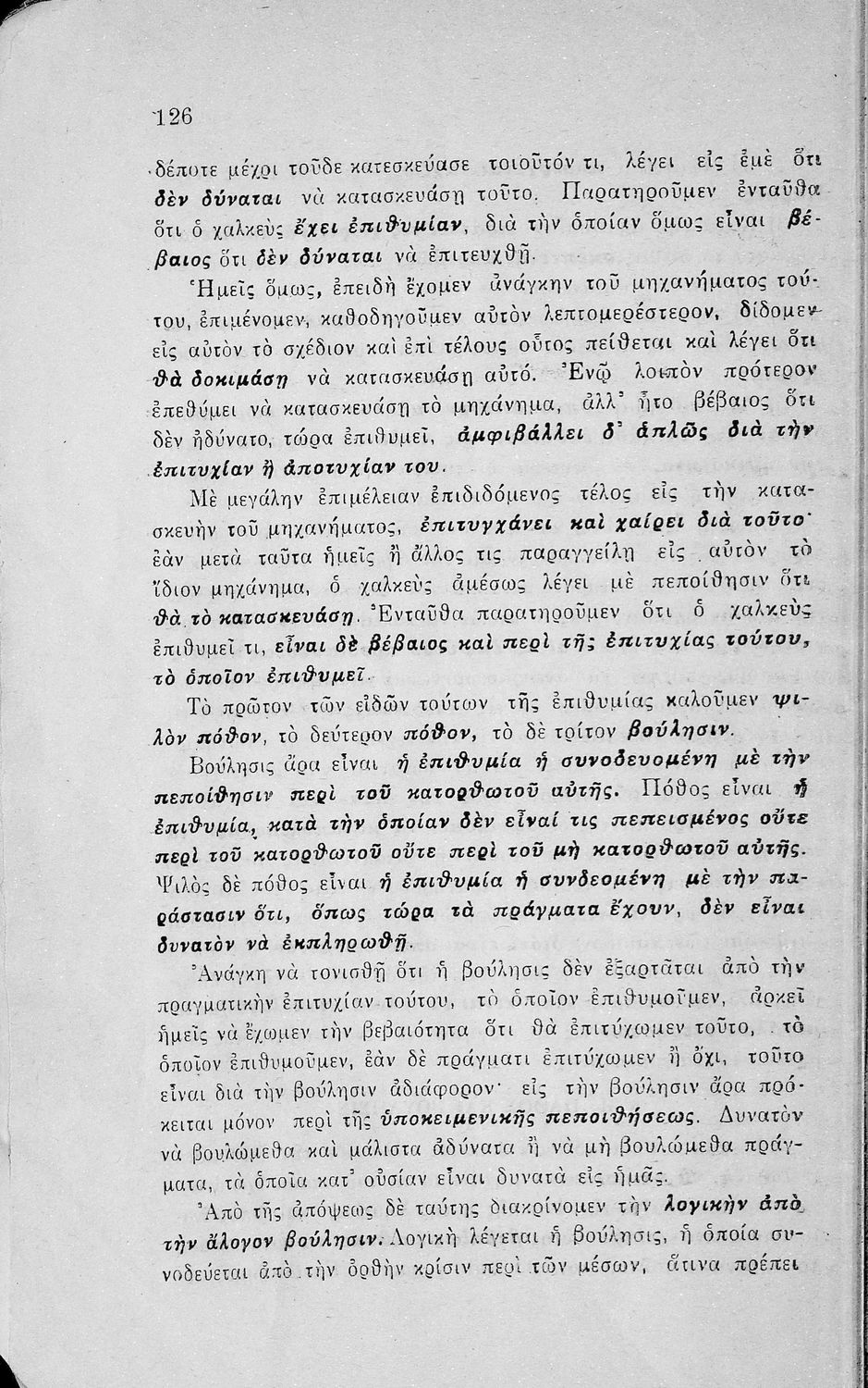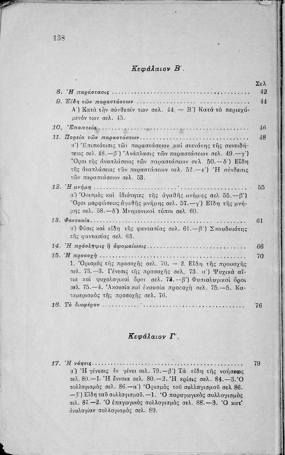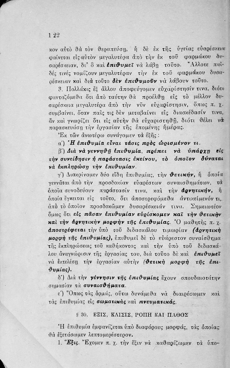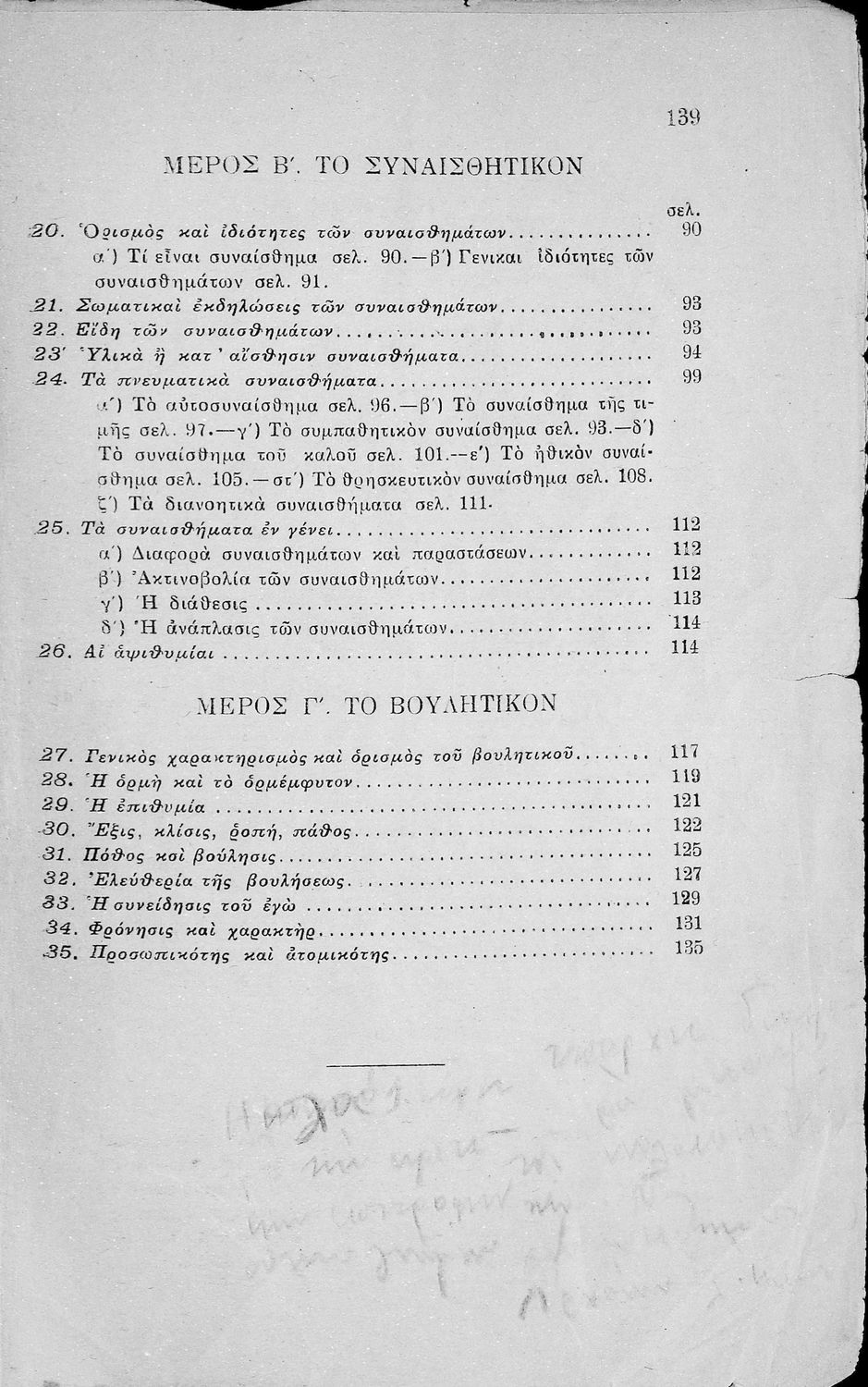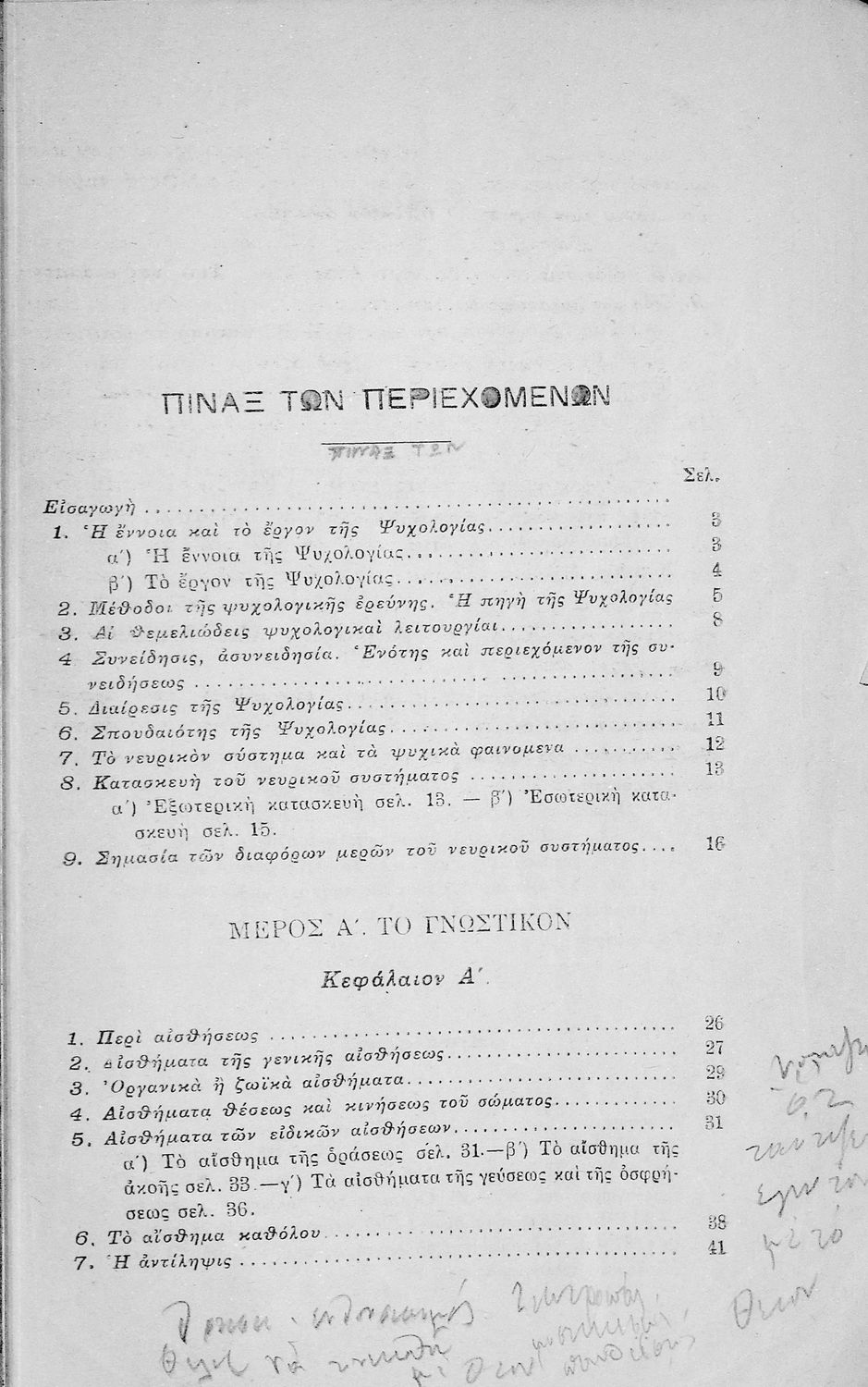 Σχολικό εγχειρίδιο Πειραματικής Ψυχολογίας για τη Γ΄ Γυμνασίου χωρισμένο σε τρία τμήματα: το παριστάναι, το συναισθάνεσθαι, και το βούλεσθαι.