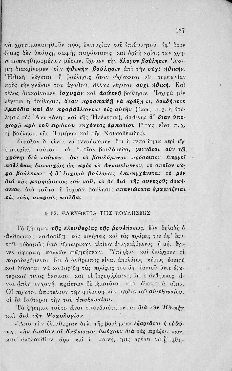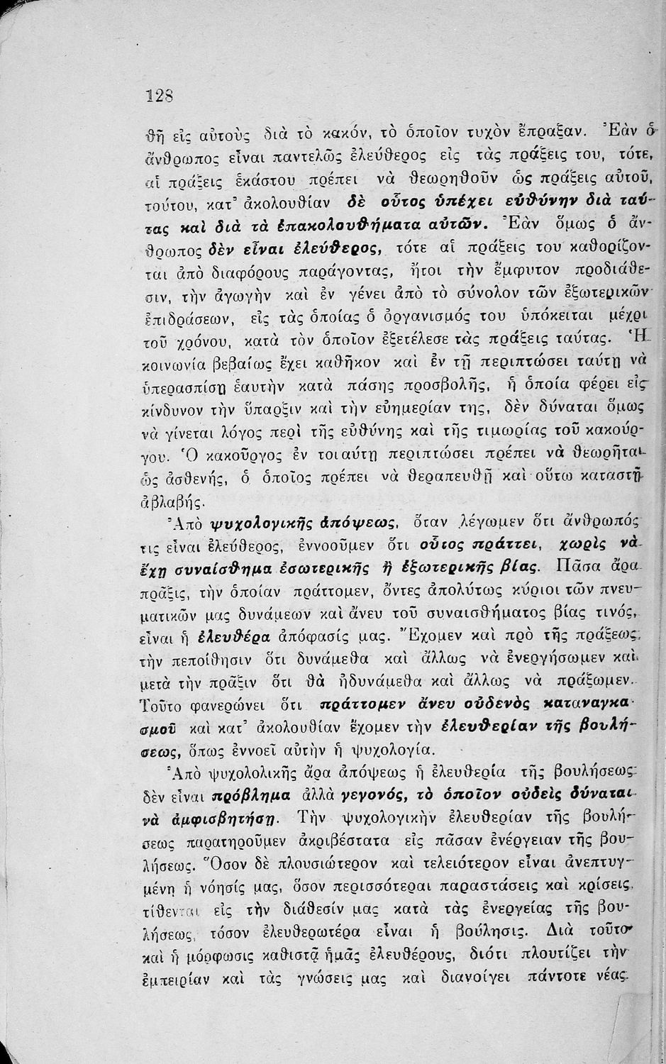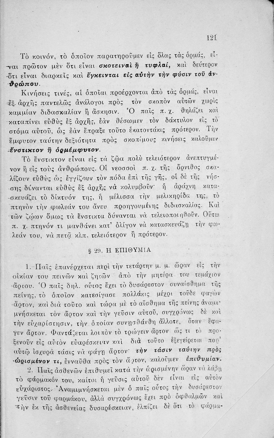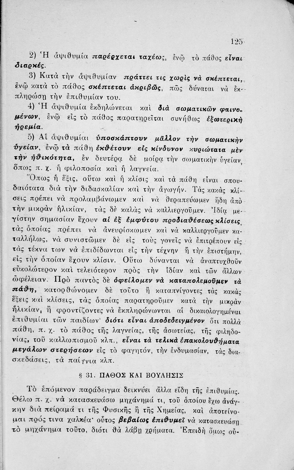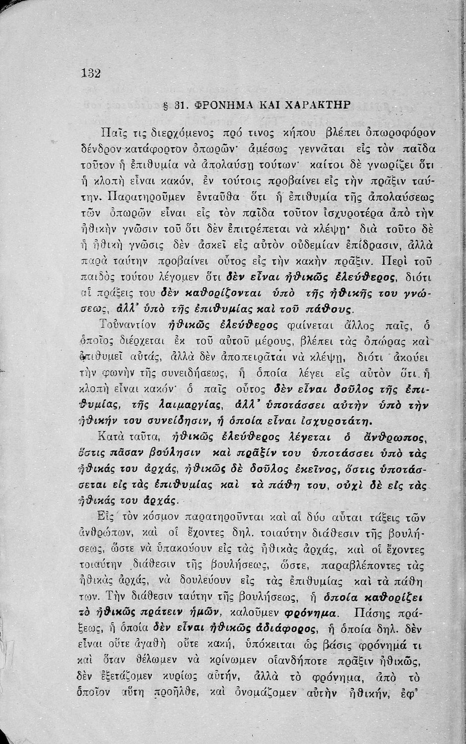 Σχολικό εγχειρίδιο Πειραματικής Ψυχολογίας για τη Γ΄ Γυμνασίου χωρισμένο σε τρία τμήματα: το παριστάναι, το συναισθάνεσθαι, και το βούλεσθαι.