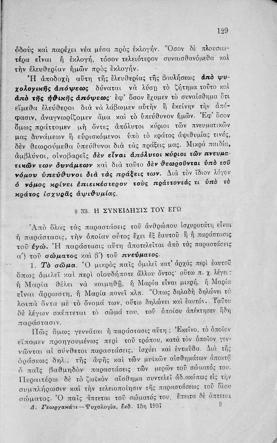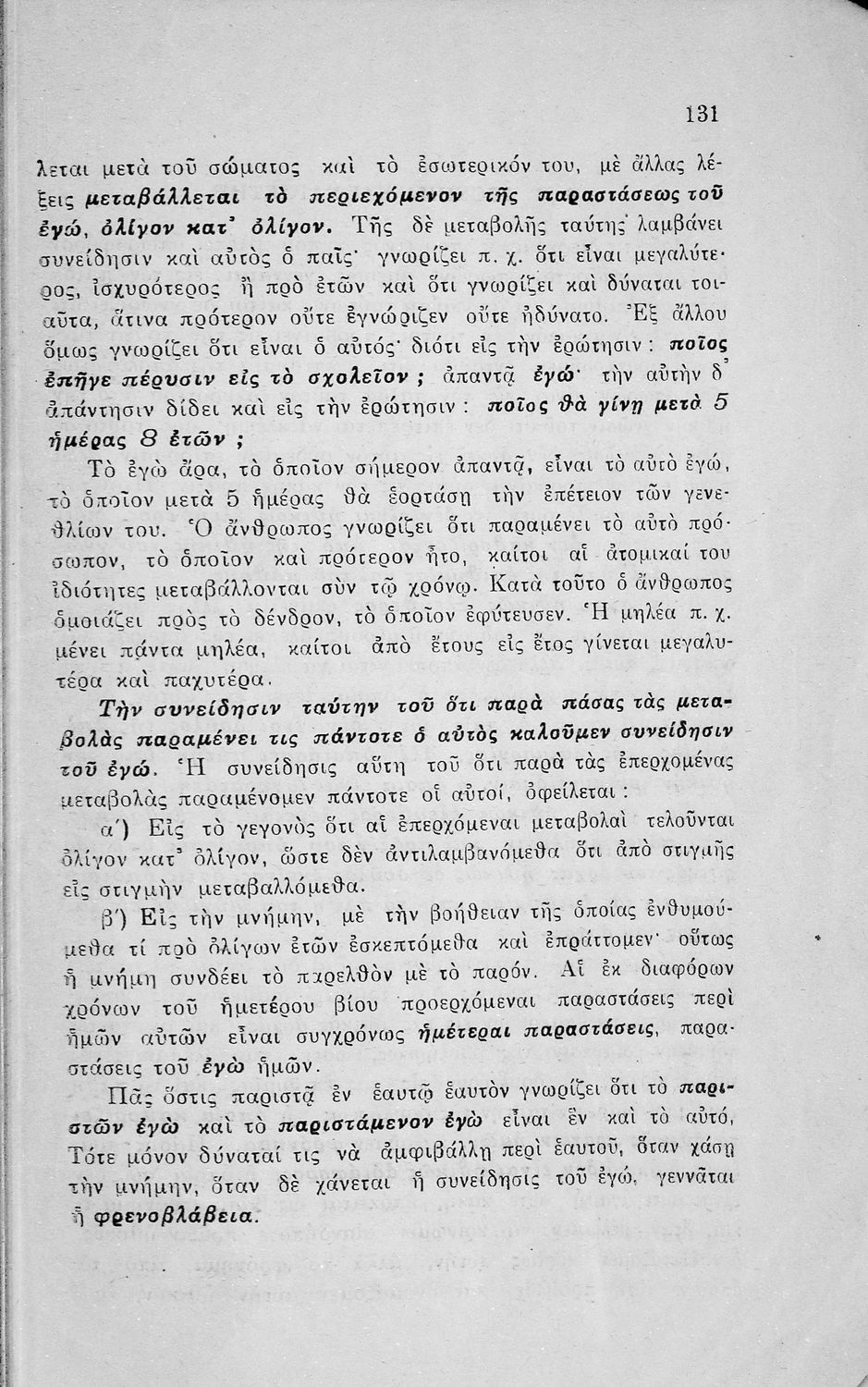 Σχολικό εγχειρίδιο Εμπειρικής Ψυχολογίας για τη Γ΄ Γυμνασίου χωρισμένο σε τρία τμήματα: το γνωστικό, το συναισθηματικό και το βουλητικό. Εξετάζει και τις ανωμαλίες της συνείδησης.