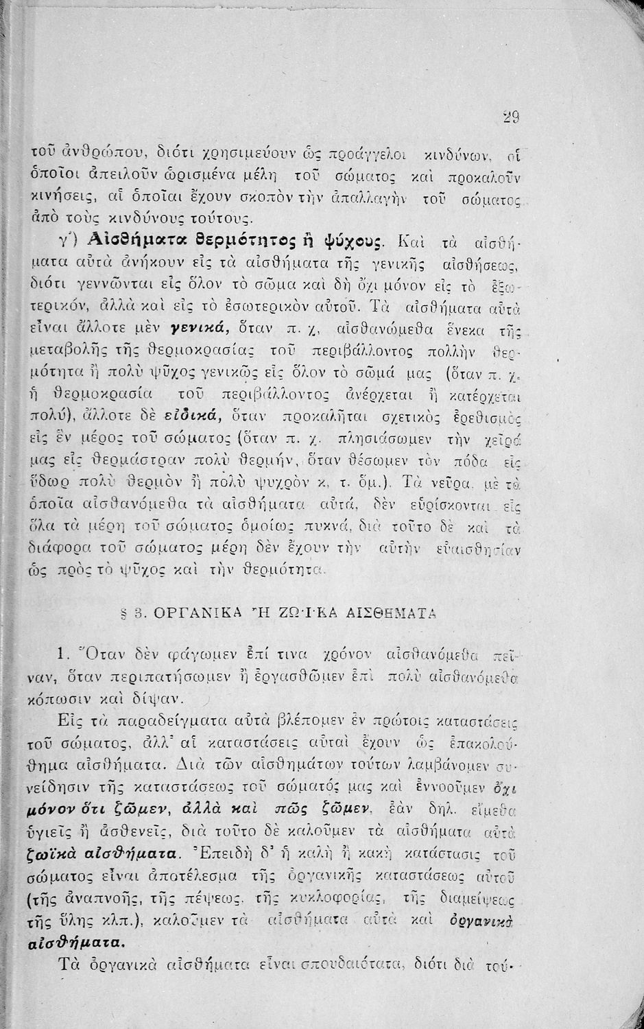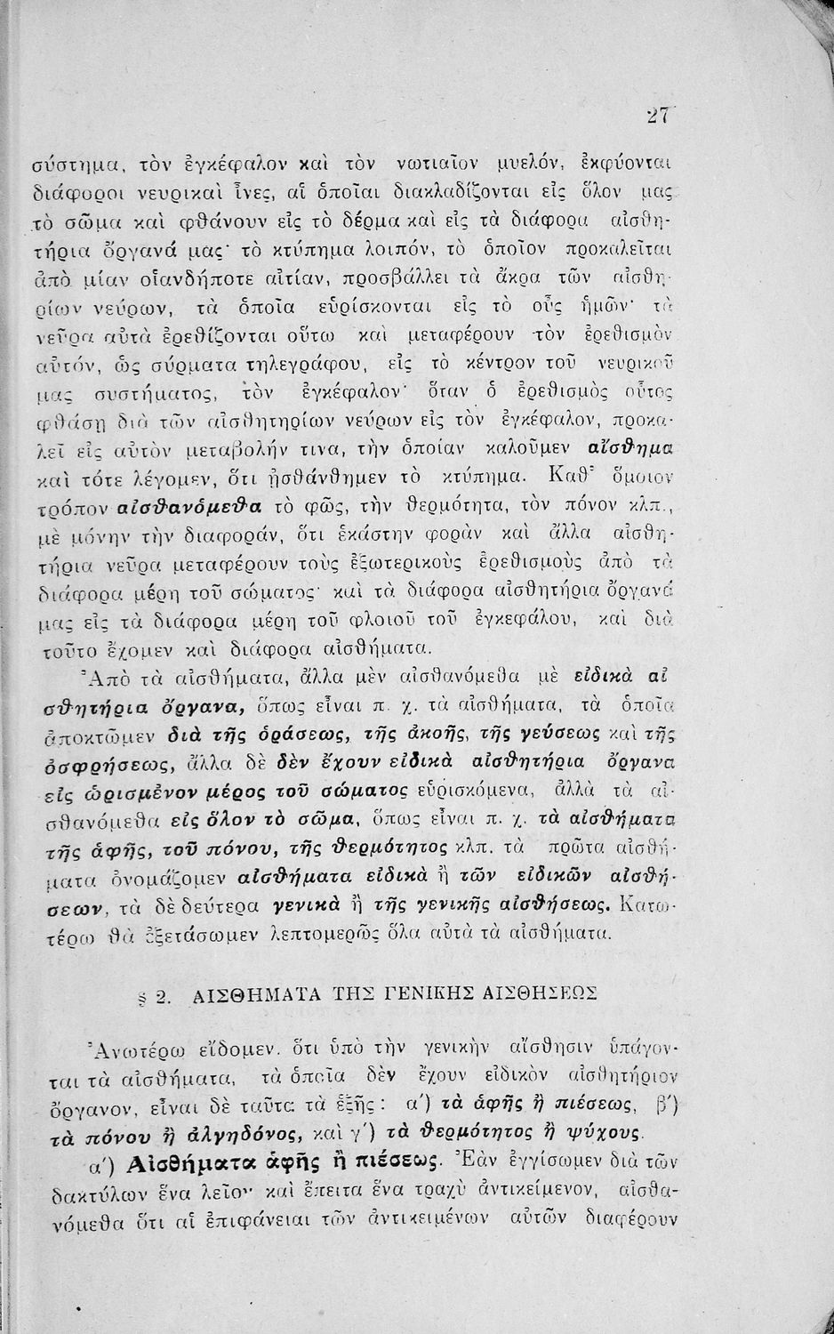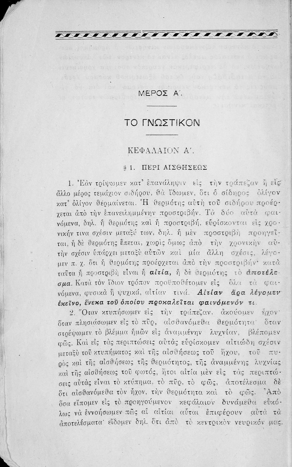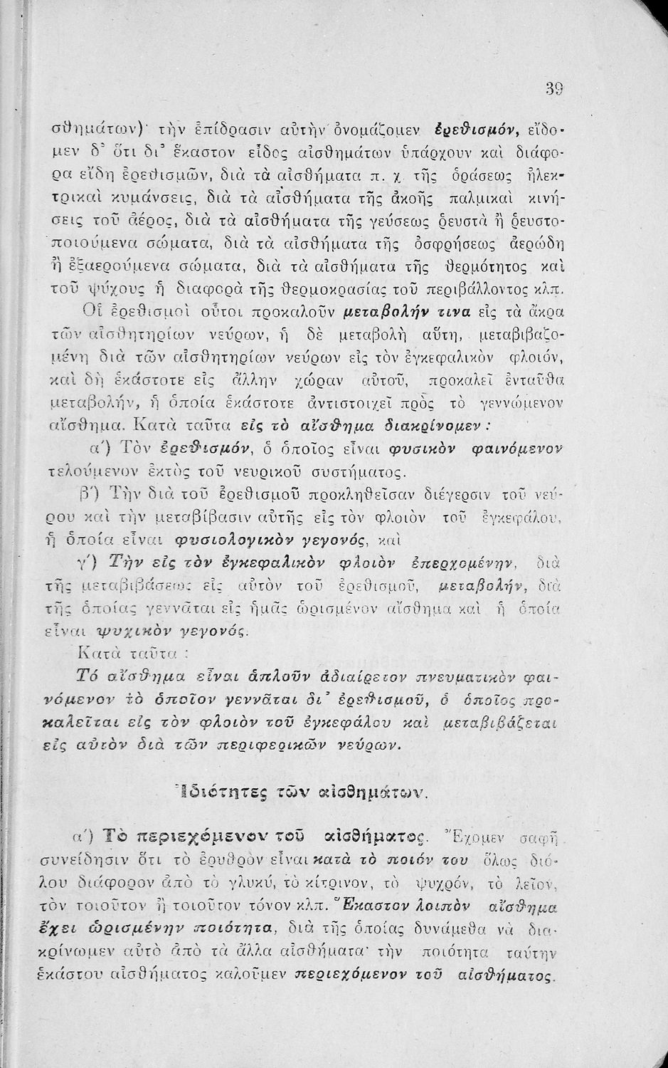 Σχολικό εγχειρίδιο Πειραματικής Ψυχολογίας για τη Γ΄ Γυμνασίου χωρισμένο σε τρία τμήματα: το παριστάναι, το συναισθάνεσθαι, και το βούλεσθαι.
