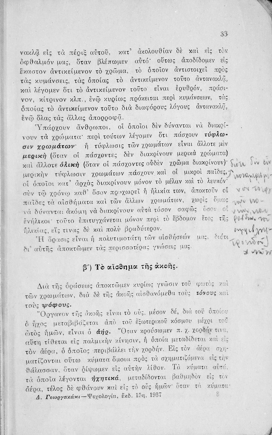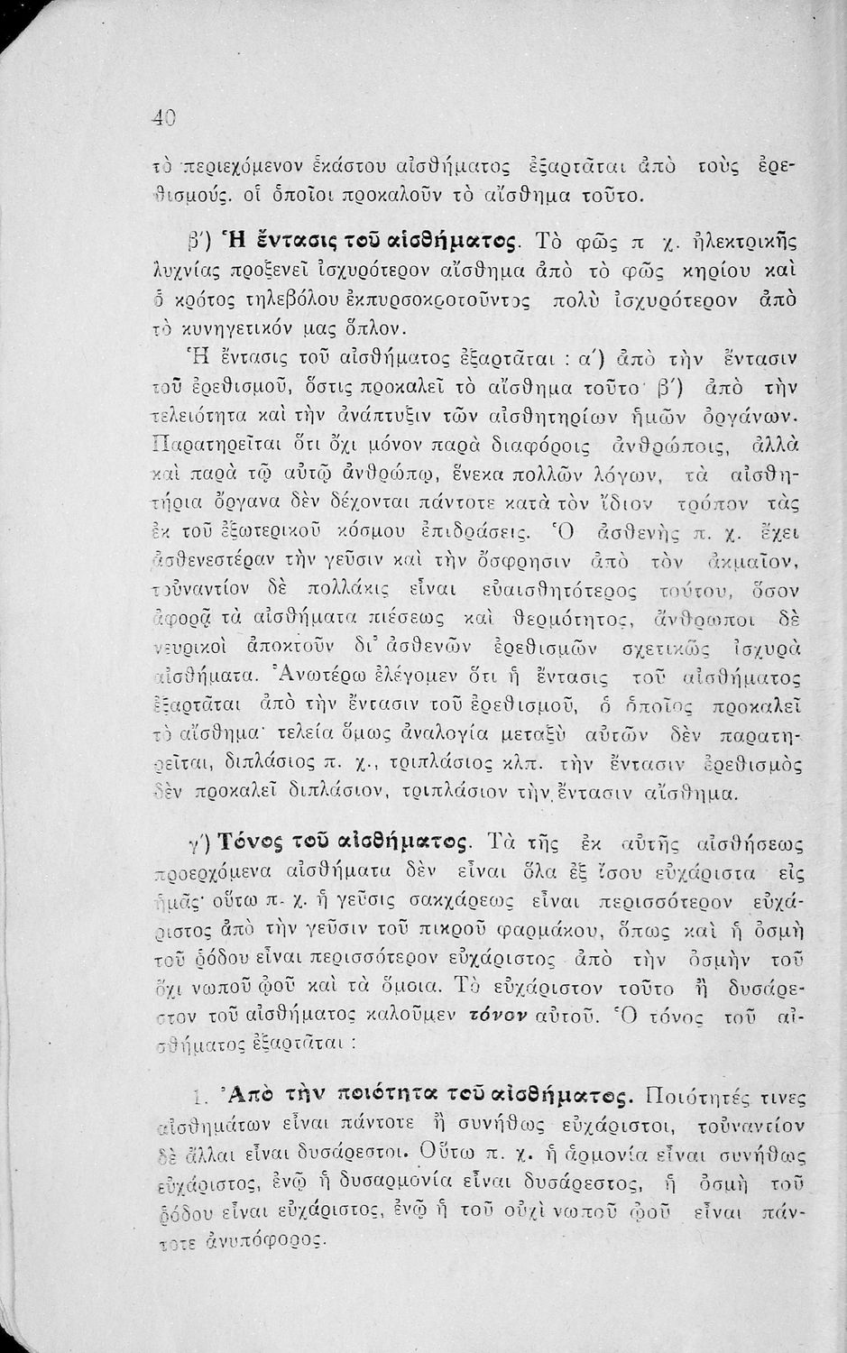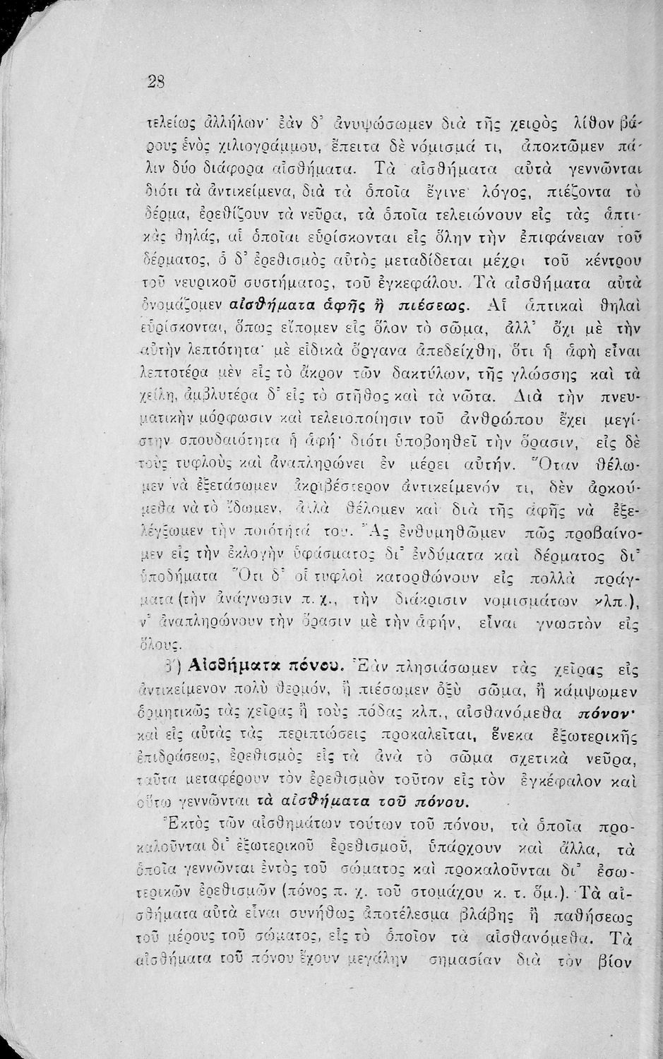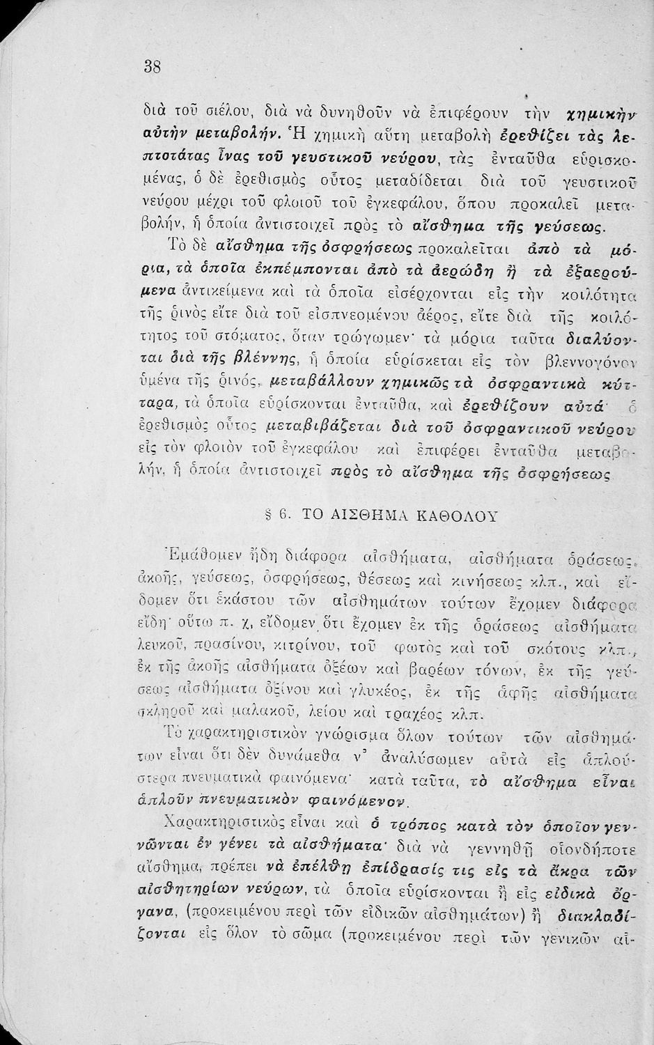 Σχολικό εγχειρίδιο Πειραματικής Ψυχολογίας για τη Γ΄ Γυμνασίου χωρισμένο σε τρία τμήματα: το παριστάναι, το συναισθάνεσθαι, και το βούλεσθαι.
