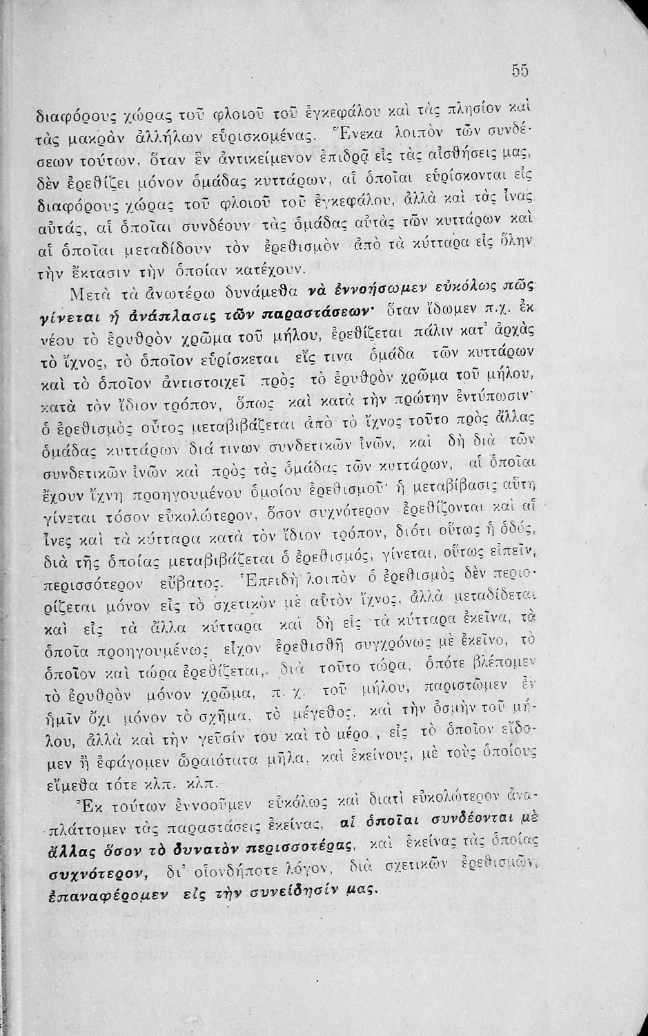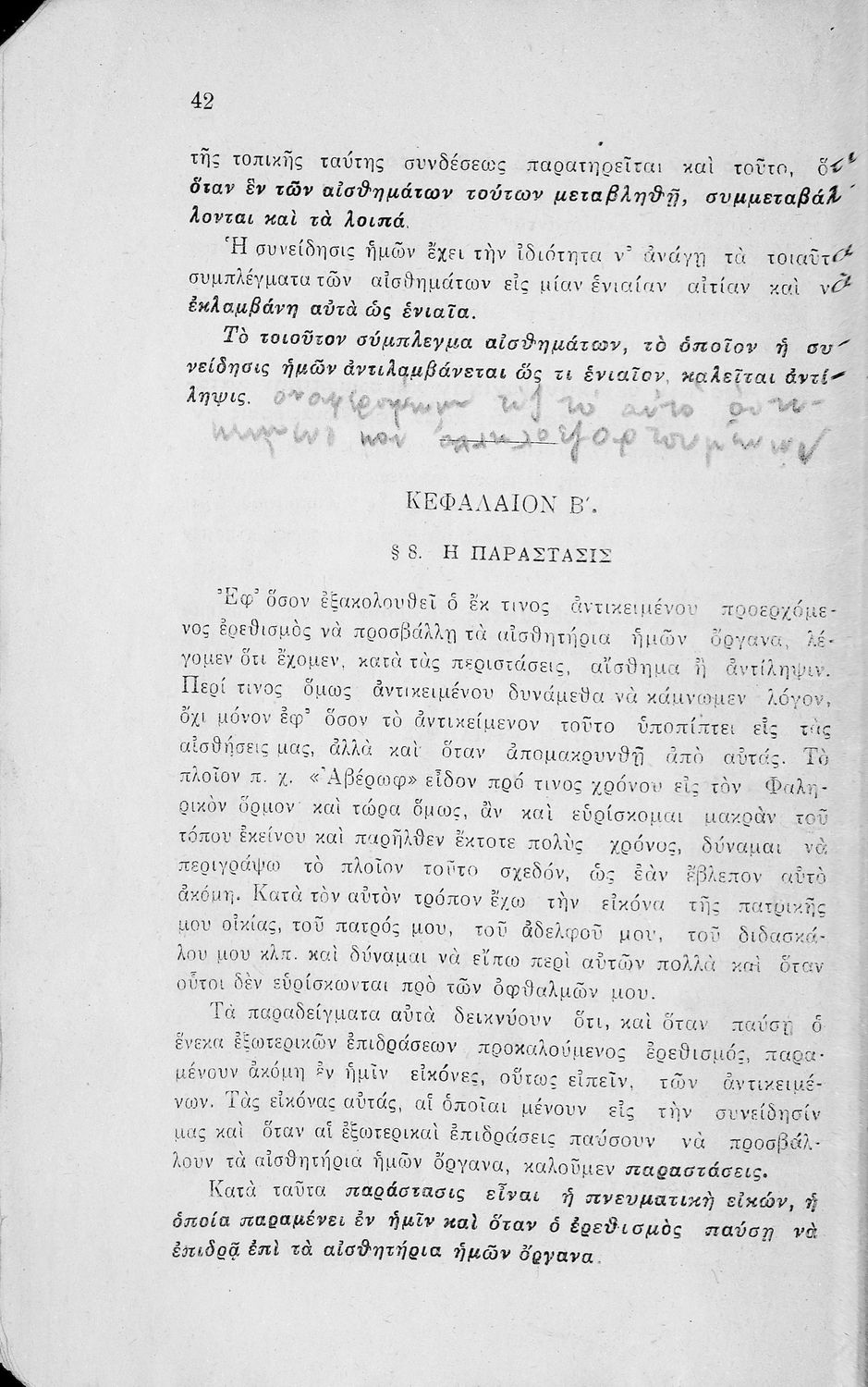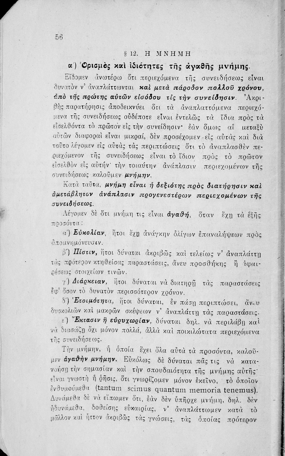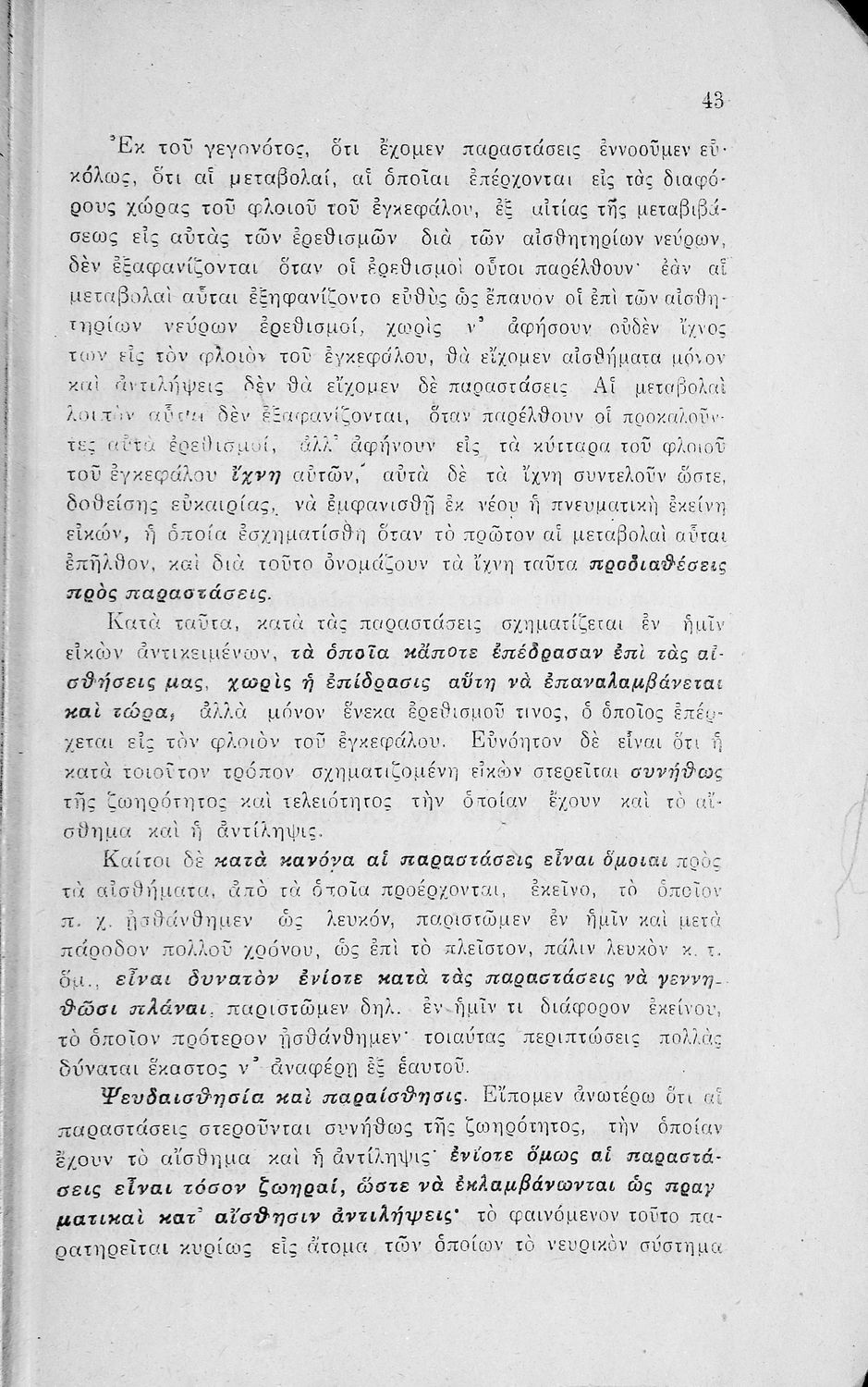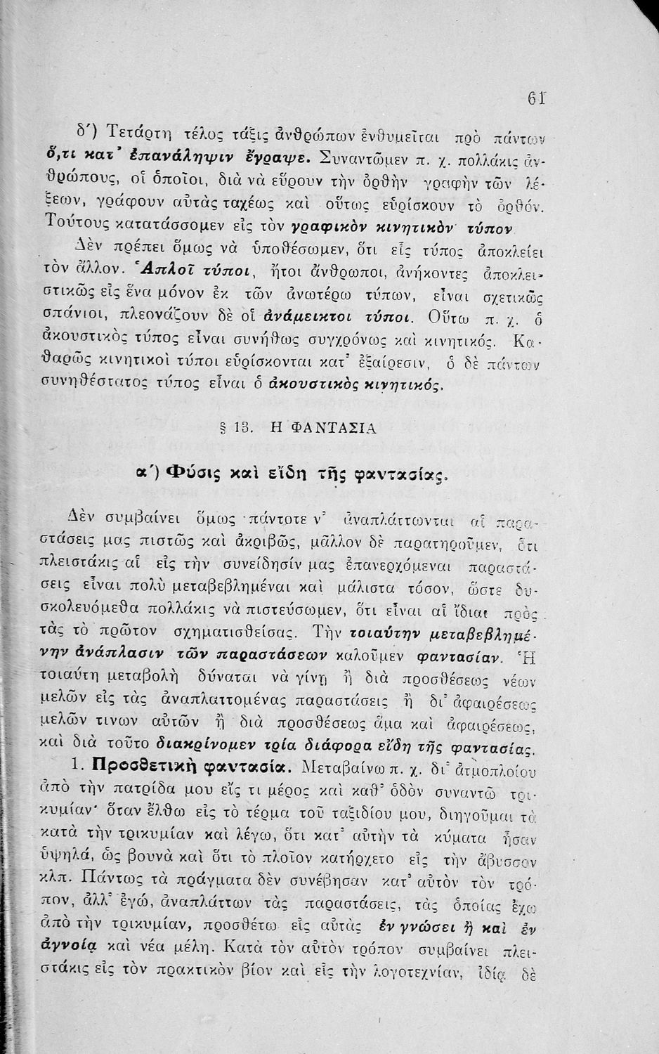 Σχολικό εγχειρίδιο Πειραματικής Ψυχολογίας για τη Γ΄ Γυμνασίου χωρισμένο σε τρία τμήματα: το παριστάναι, το συναισθάνεσθαι, και το βούλεσθαι.