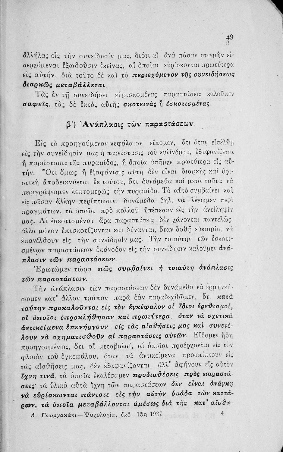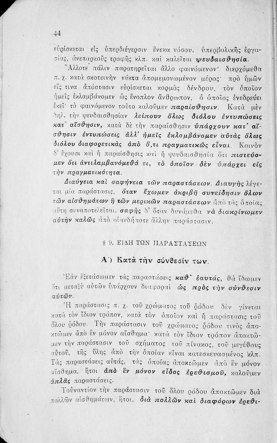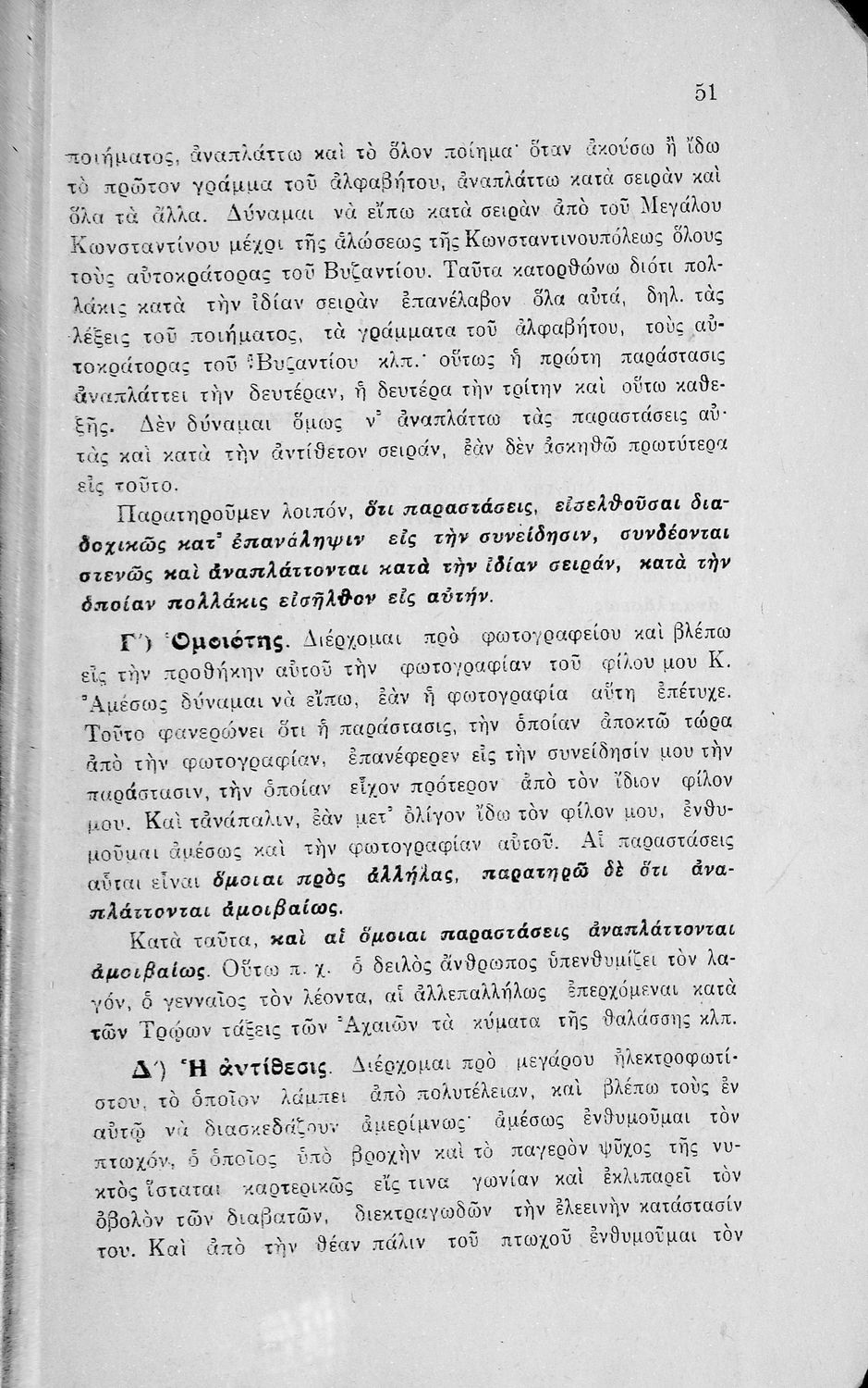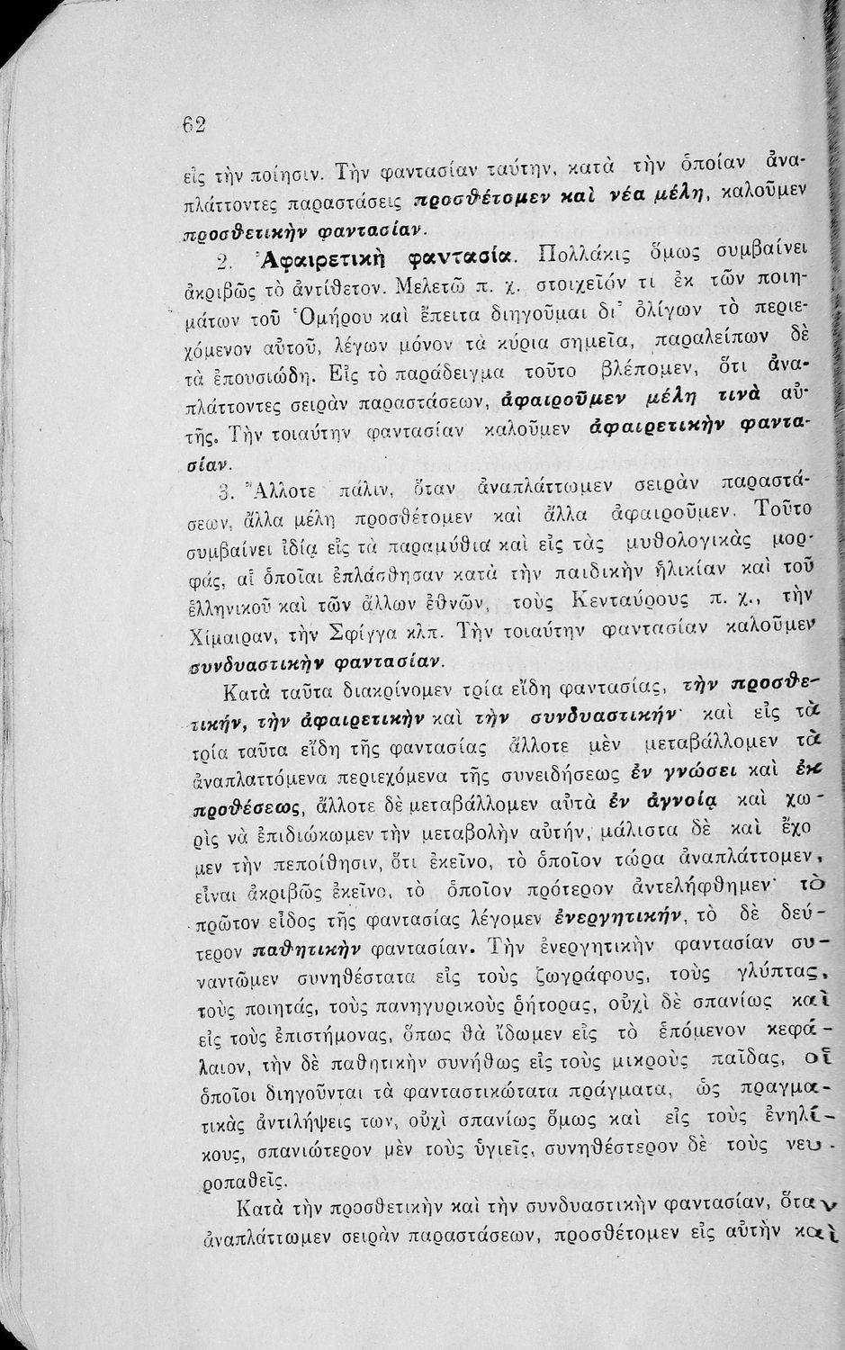 Σχολικό εγχειρίδιο Πειραματικής Ψυχολογίας για τη Γ΄ Γυμνασίου χωρισμένο σε τρία τμήματα: το παριστάναι, το συναισθάνεσθαι, και το βούλεσθαι.