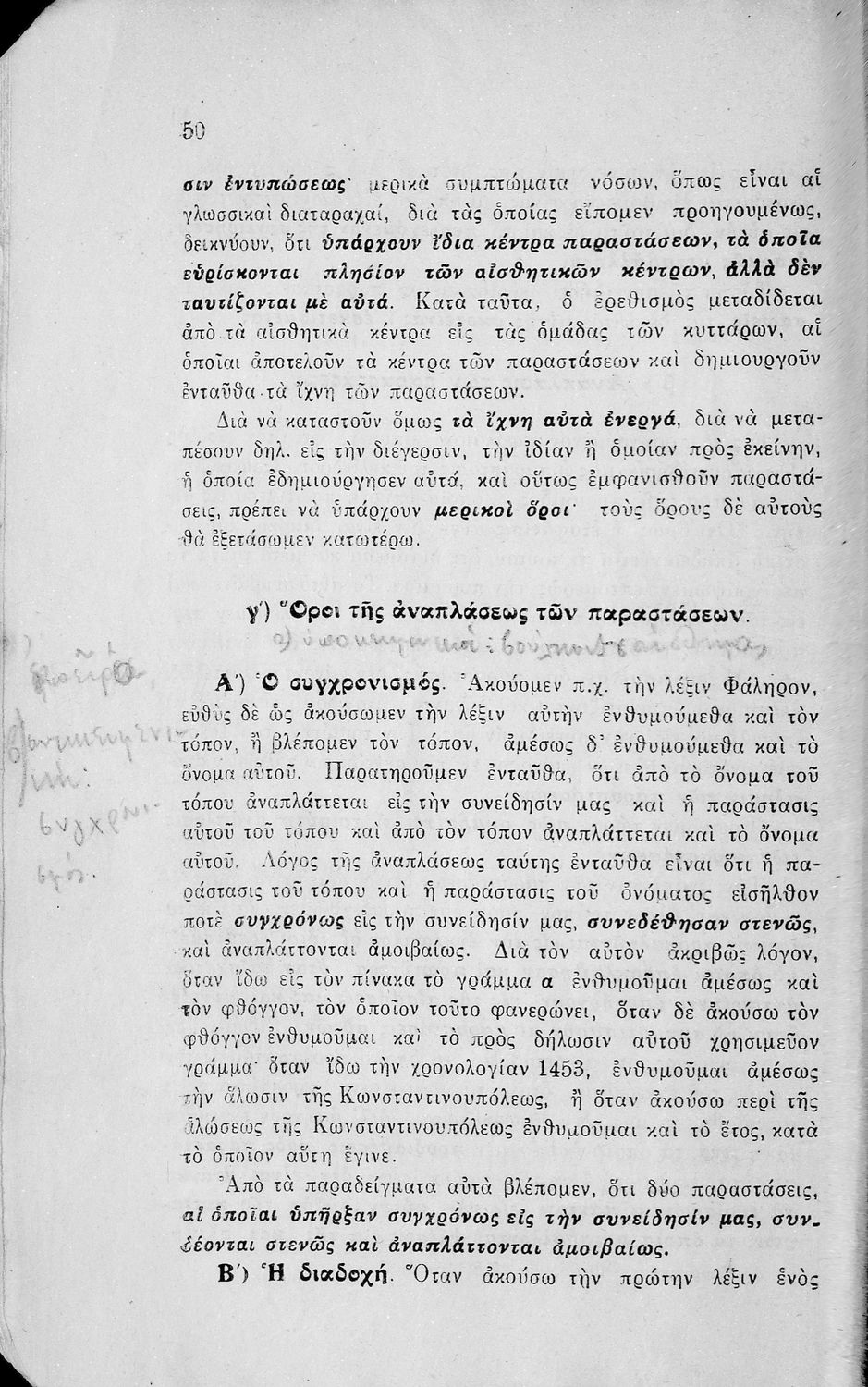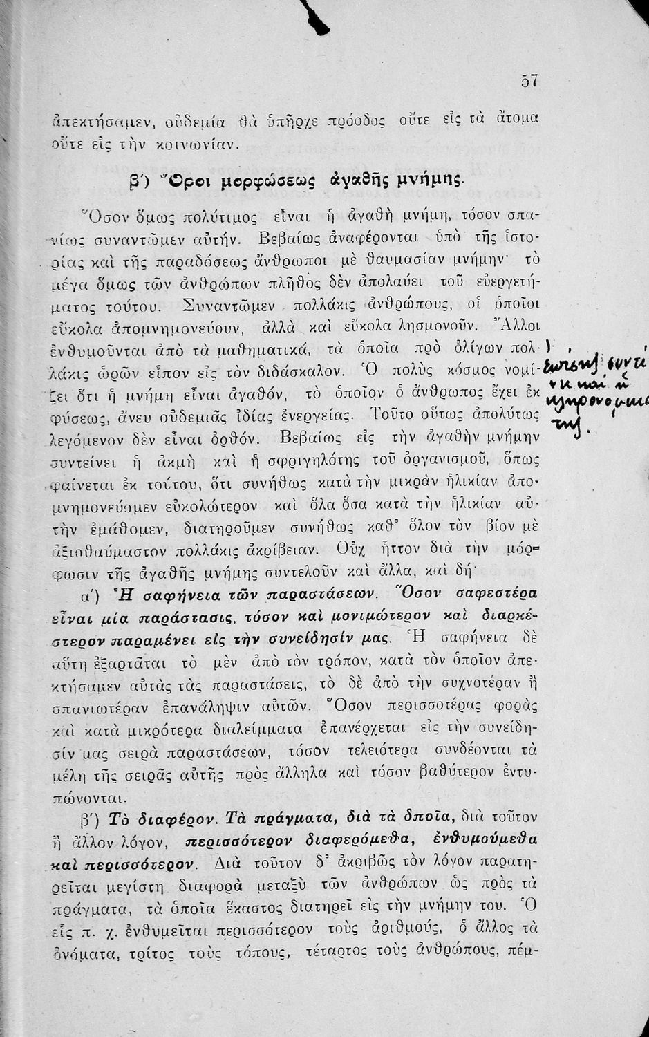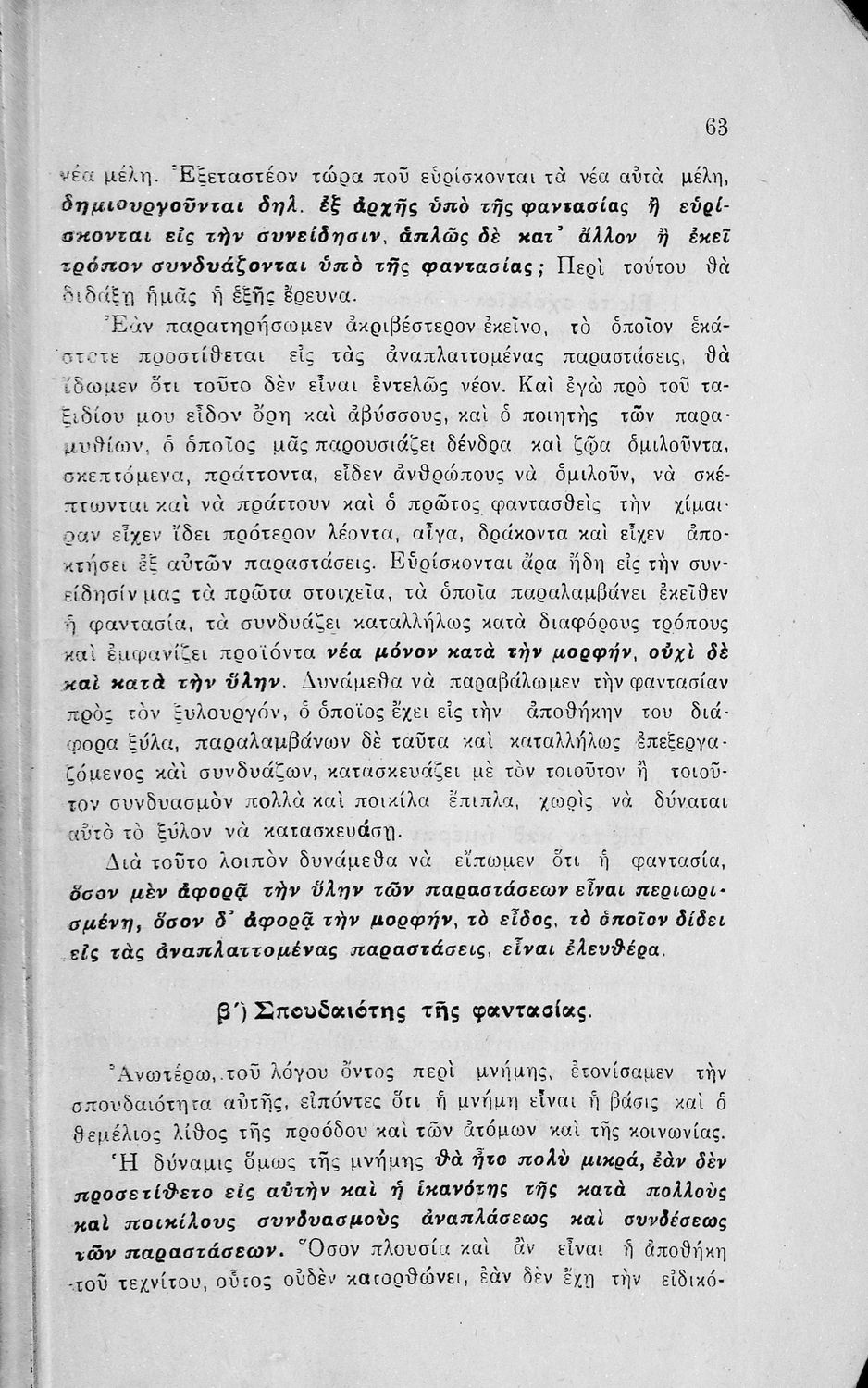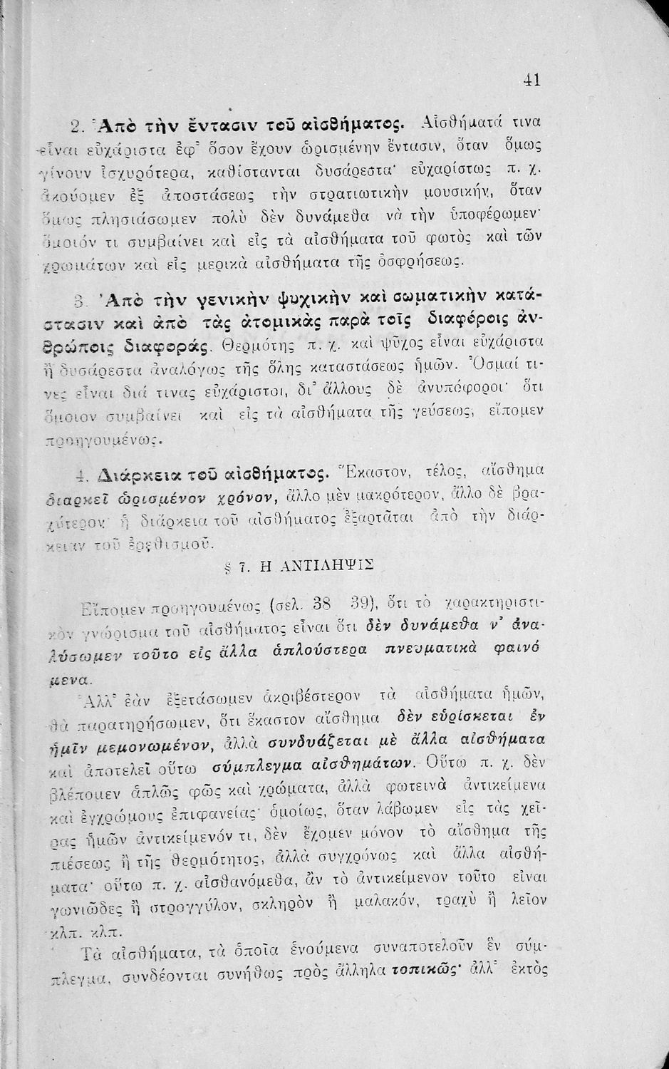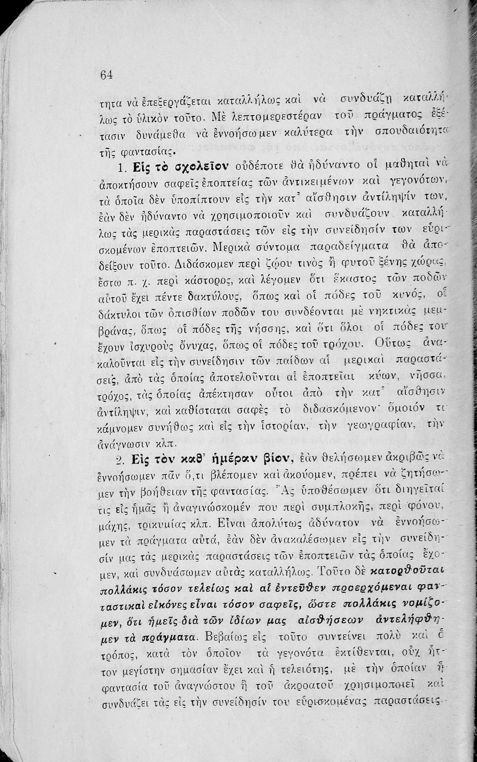 Σχολικό εγχειρίδιο Πειραματικής Ψυχολογίας για τη Γ΄ Γυμνασίου χωρισμένο σε τρία τμήματα: το παριστάναι, το συναισθάνεσθαι, και το βούλεσθαι.