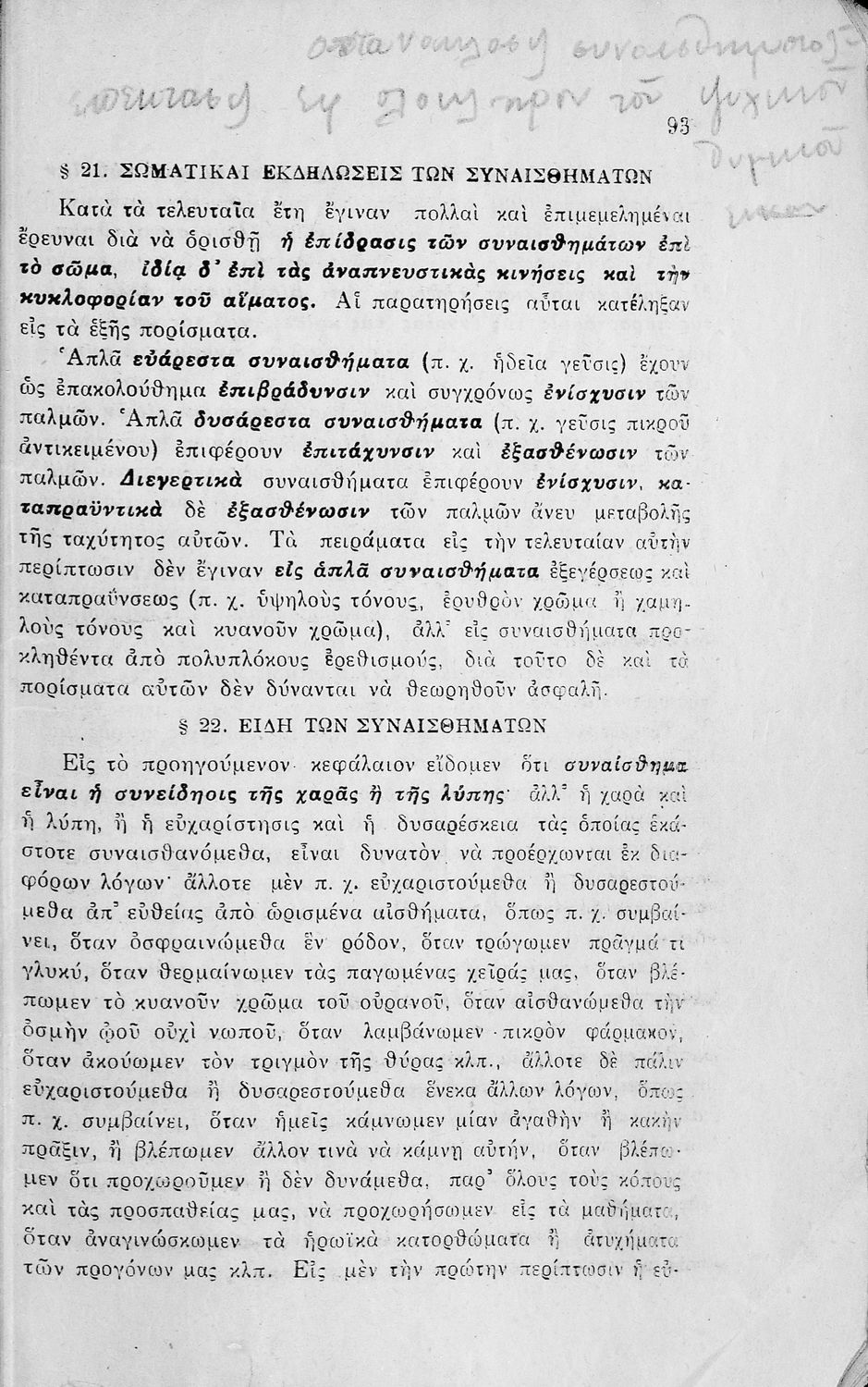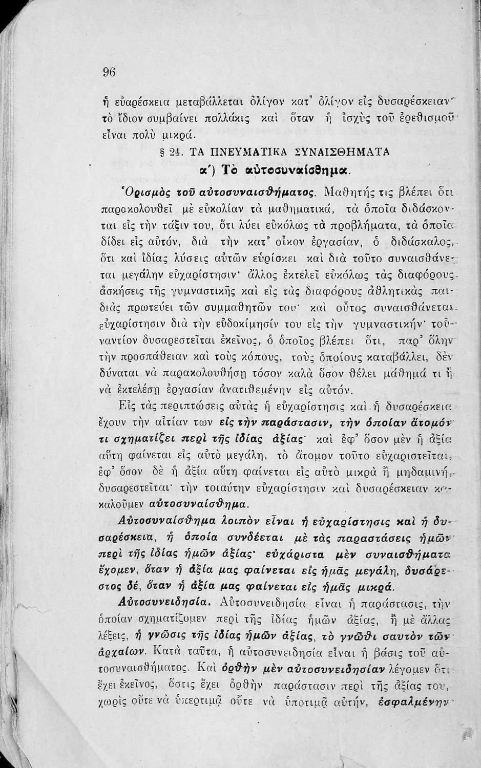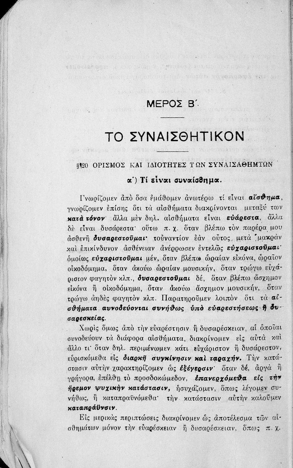 Σχολικό εγχειρίδιο Πειραματικής Ψυχολογίας για τη Γ΄ Γυμνασίου χωρισμένο σε τρία τμήματα: το παριστάναι, το συναισθάνεσθαι, και το βούλεσθαι.