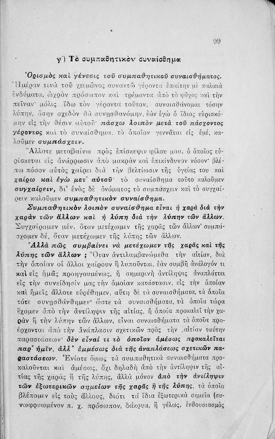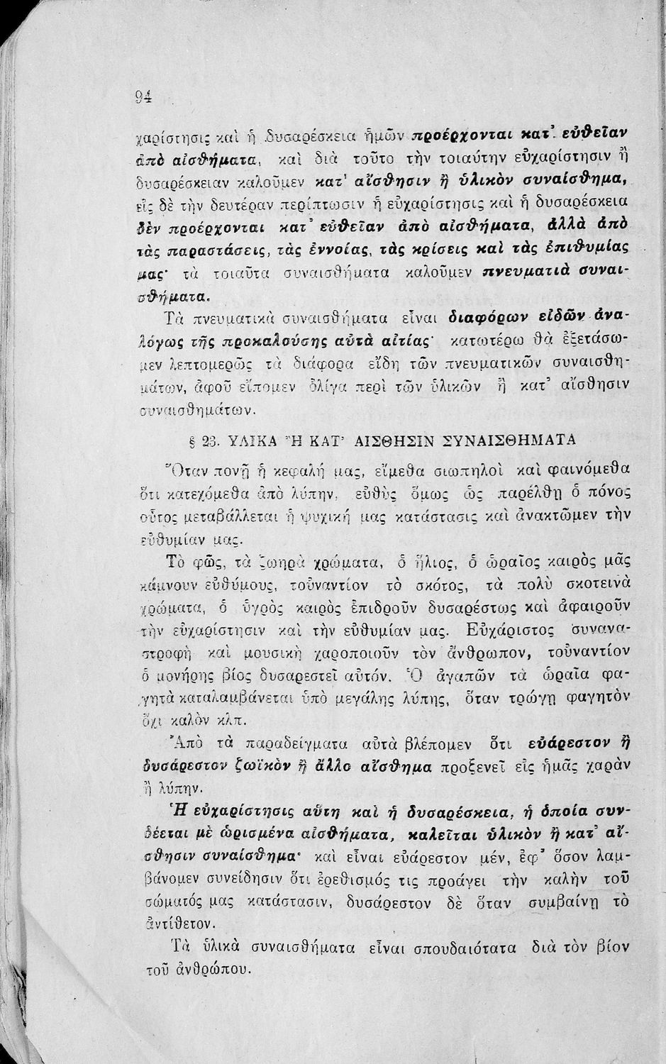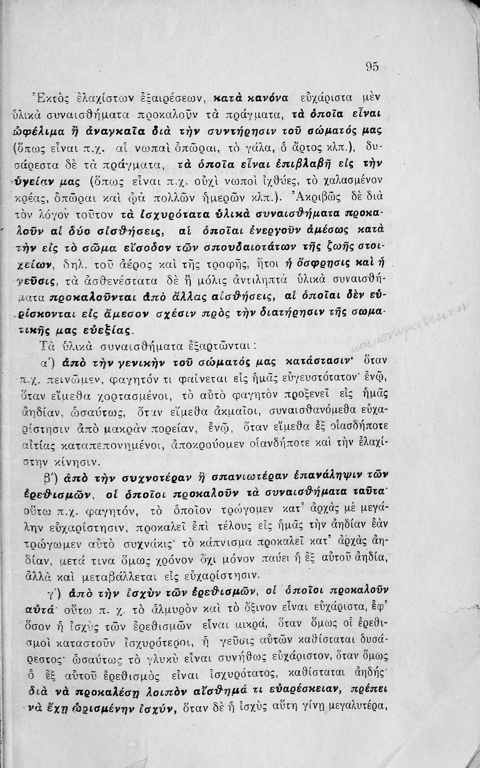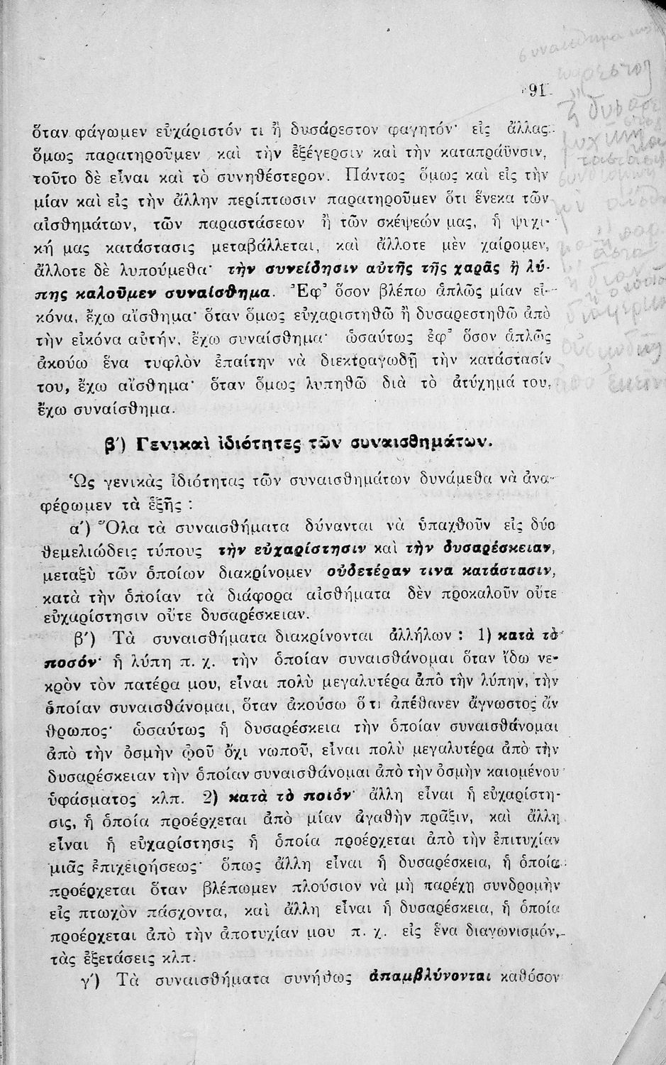 Σχολικό εγχειρίδιο Πειραματικής Ψυχολογίας για τη Γ΄ Γυμνασίου χωρισμένο σε τρία τμήματα: το παριστάναι, το συναισθάνεσθαι, και το βούλεσθαι.