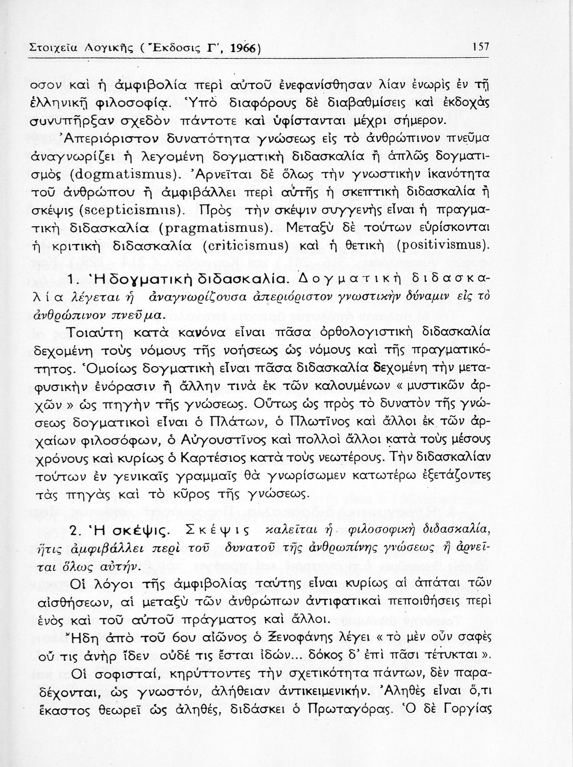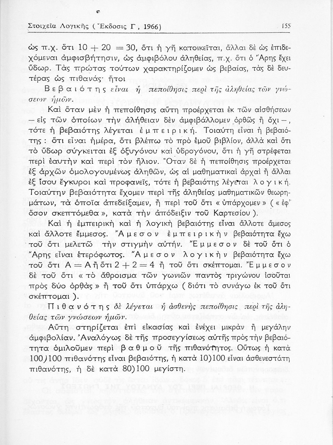 Σχολικό εγχειρίδιο Λογικής Γυμνασίου που είναι χωρισμένο σε στοιχειολογία ή τυπική λογική, μεθοδολογία και γνωσιολογία. Περιέχει ασκήσεις λογικής.