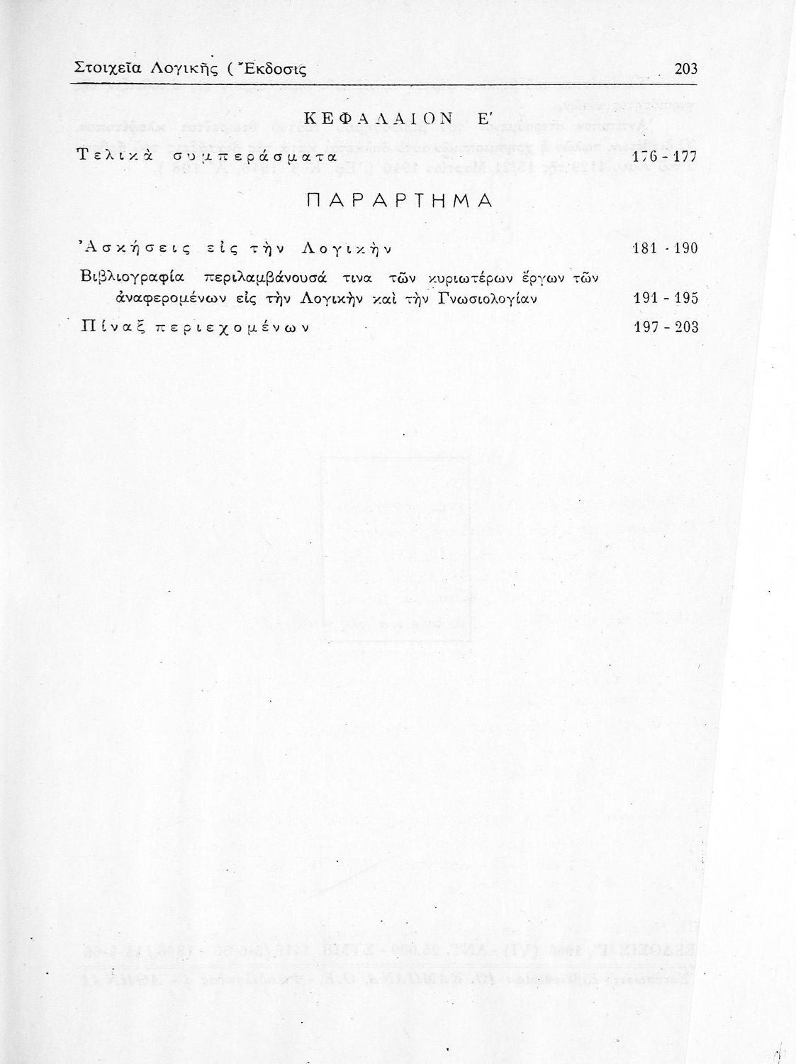 Σχολικό εγχειρίδιο Λογικής ΣΤ΄ Γυμνασίου που είναι δομημένο θεματικά και περιλαμβάνει ζητήματα τυπικής λογικής, μεθοδολογίας και γνωσιολογίας. Περιέχει παράρτημα με ασκήσεις λογικής.