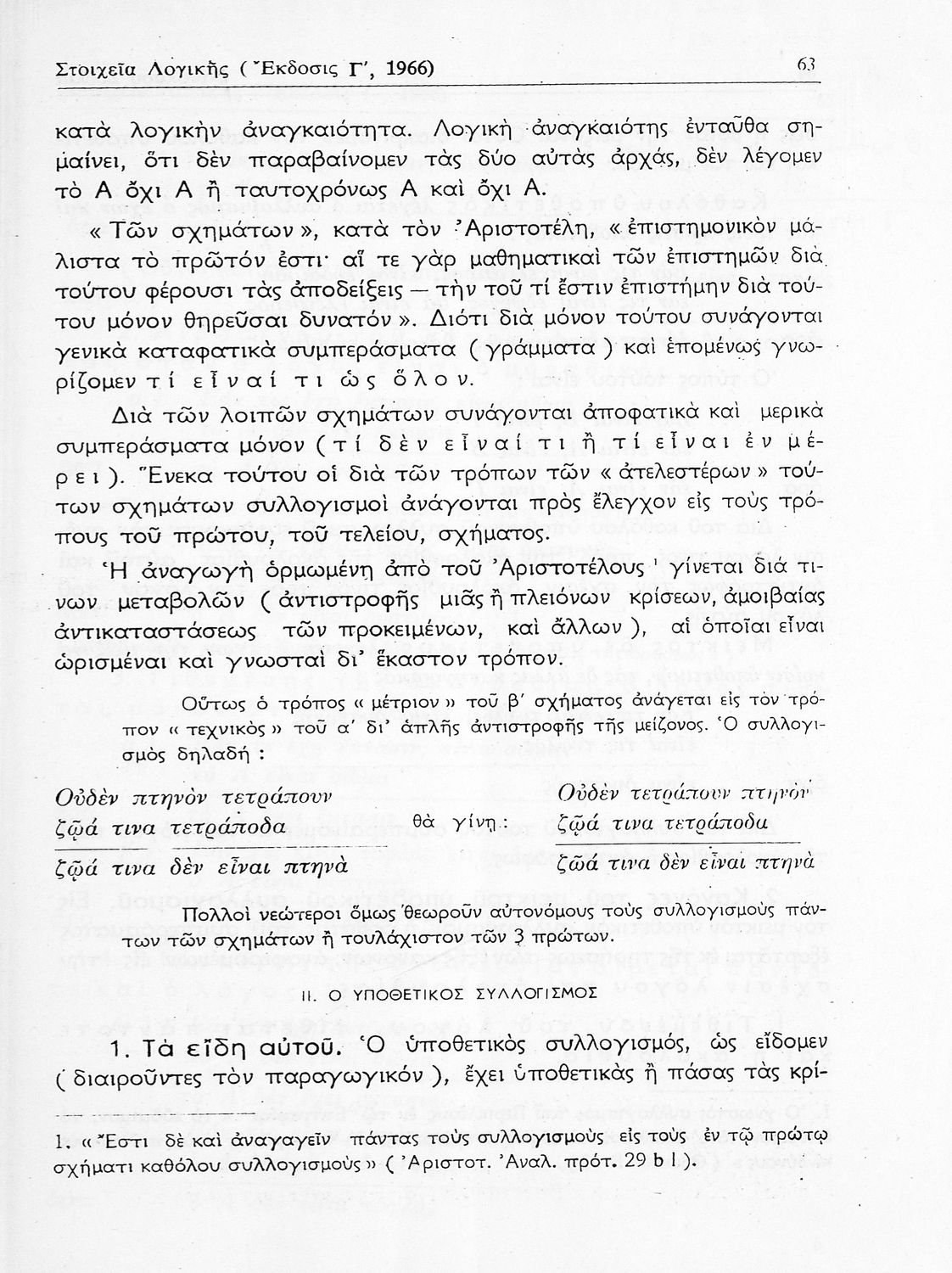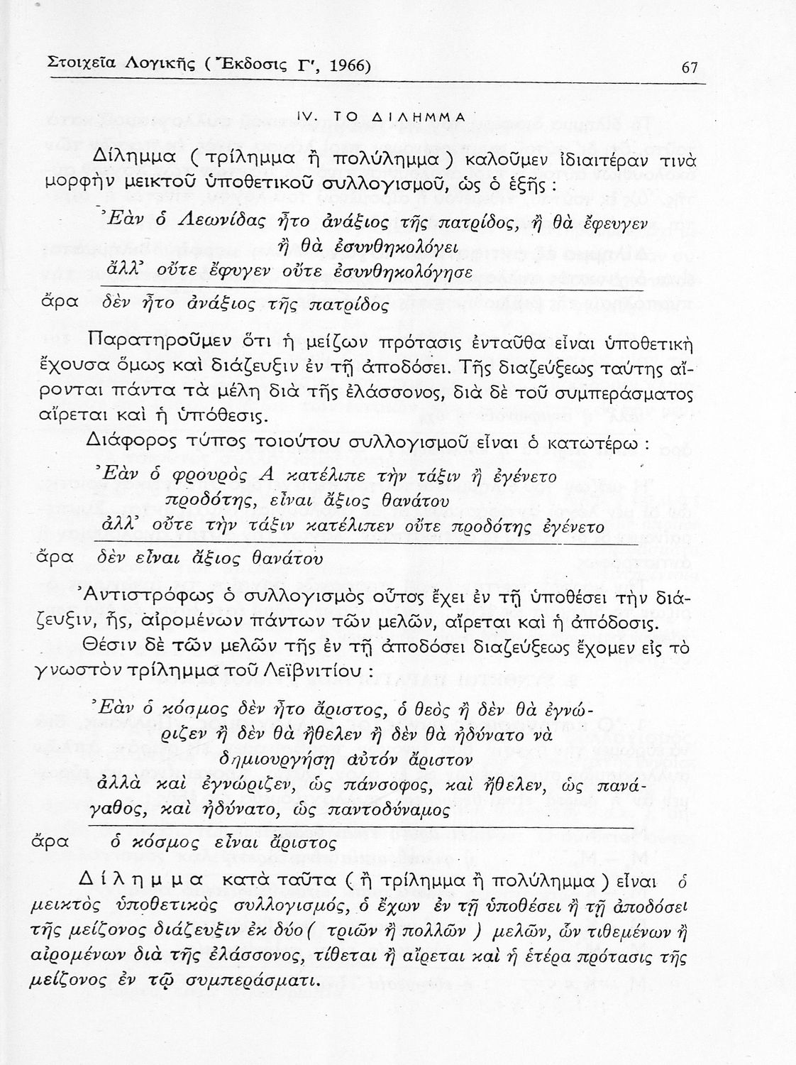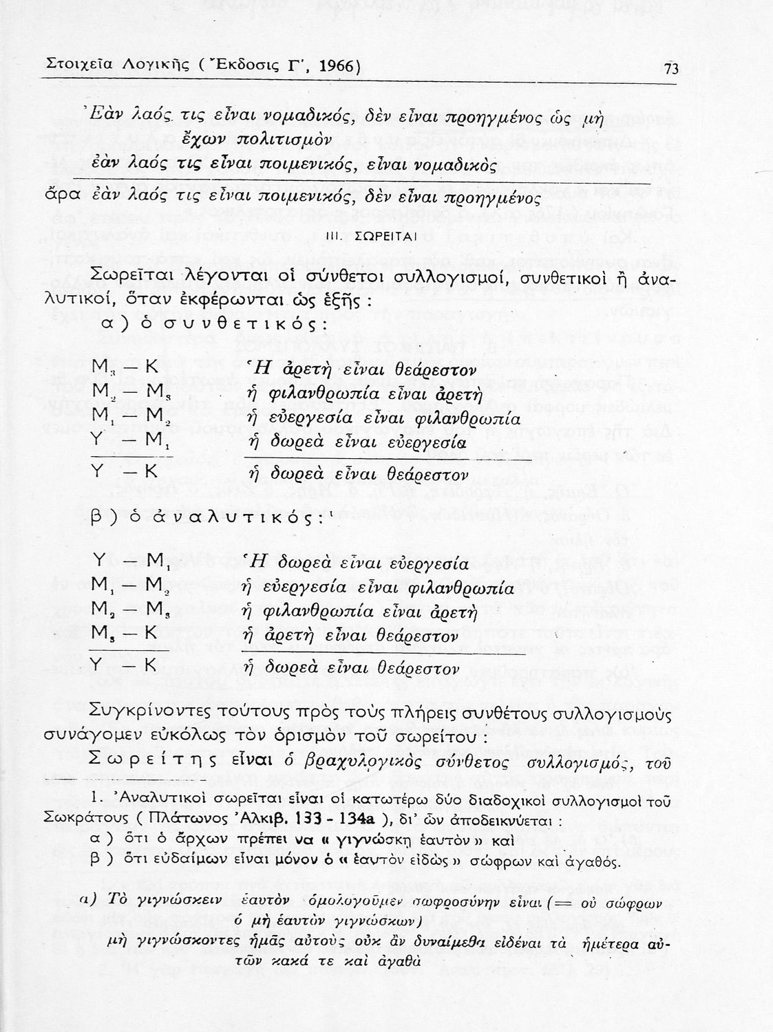 Σχολικό εγχειρίδιο Λογικής ΣΤ΄ Γυμνασίου που είναι δομημένο θεματικά και περιλαμβάνει ζητήματα τυπικής λογικής, μεθοδολογίας και γνωσιολογίας. Περιέχει παράρτημα με ασκήσεις λογικής.