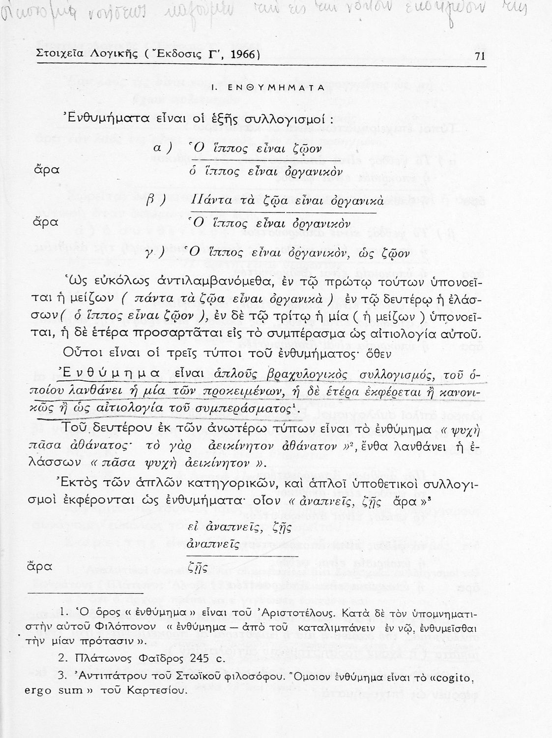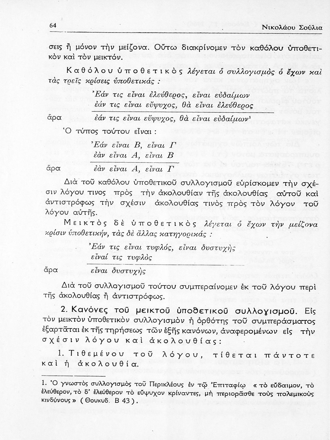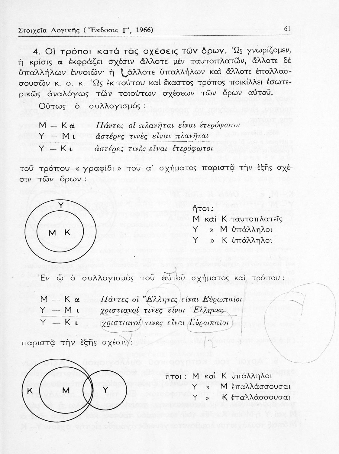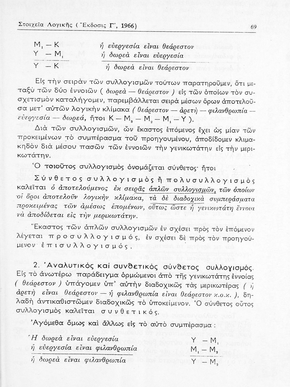 Σχολικό εγχειρίδιο Λογικής ΣΤ΄ Γυμνασίου που είναι δομημένο θεματικά και περιλαμβάνει ζητήματα τυπικής λογικής, μεθοδολογίας και γνωσιολογίας. Περιέχει παράρτημα με ασκήσεις λογικής.