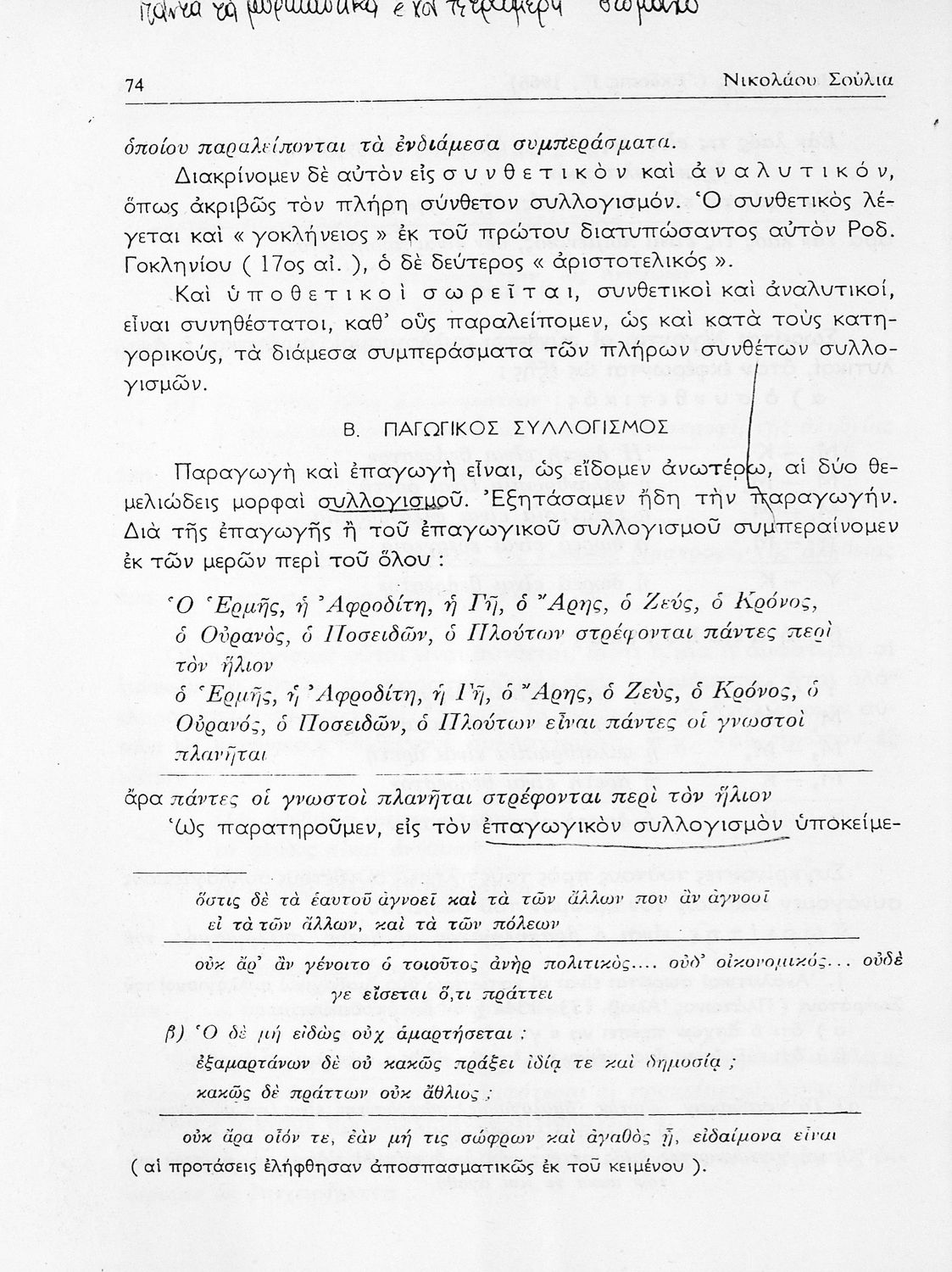 Κωδικός αναγνώρισης: 01-42315 Τίτλος: Λογική μετά στοιχείων γνωσιολογίας, τάξεως ΣΤ΄ Συγγραφέας: Νικόλαος Σούλιας Μέγεθος και υπόστρωμα: Σχολικό εγχειρίδιο, 20εκ., μαλακό εξώφυλλο, 203 σελίδες. Σκίτσα (ασπρόμαυρα). |