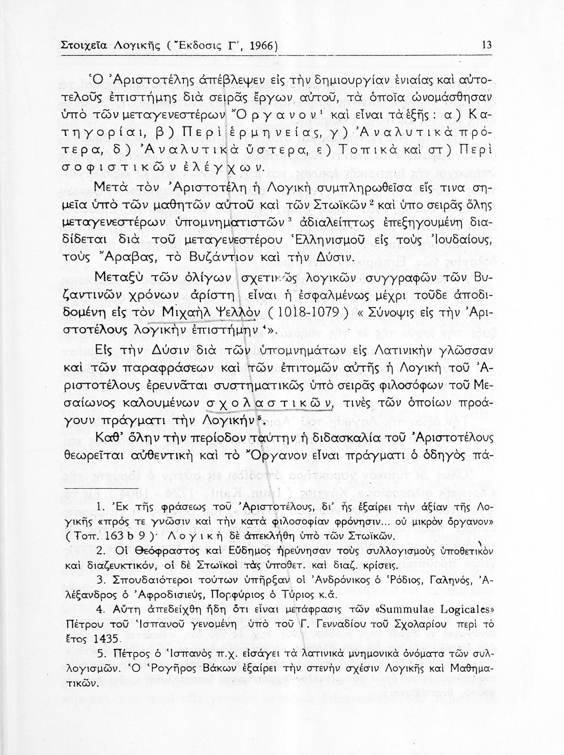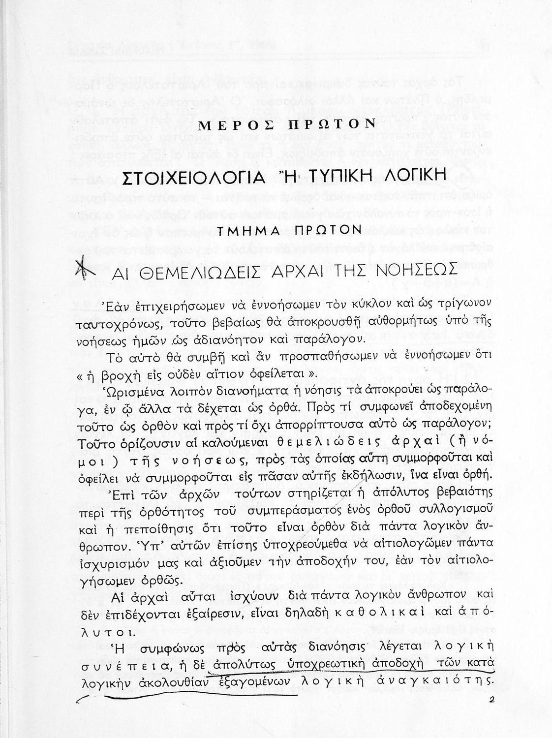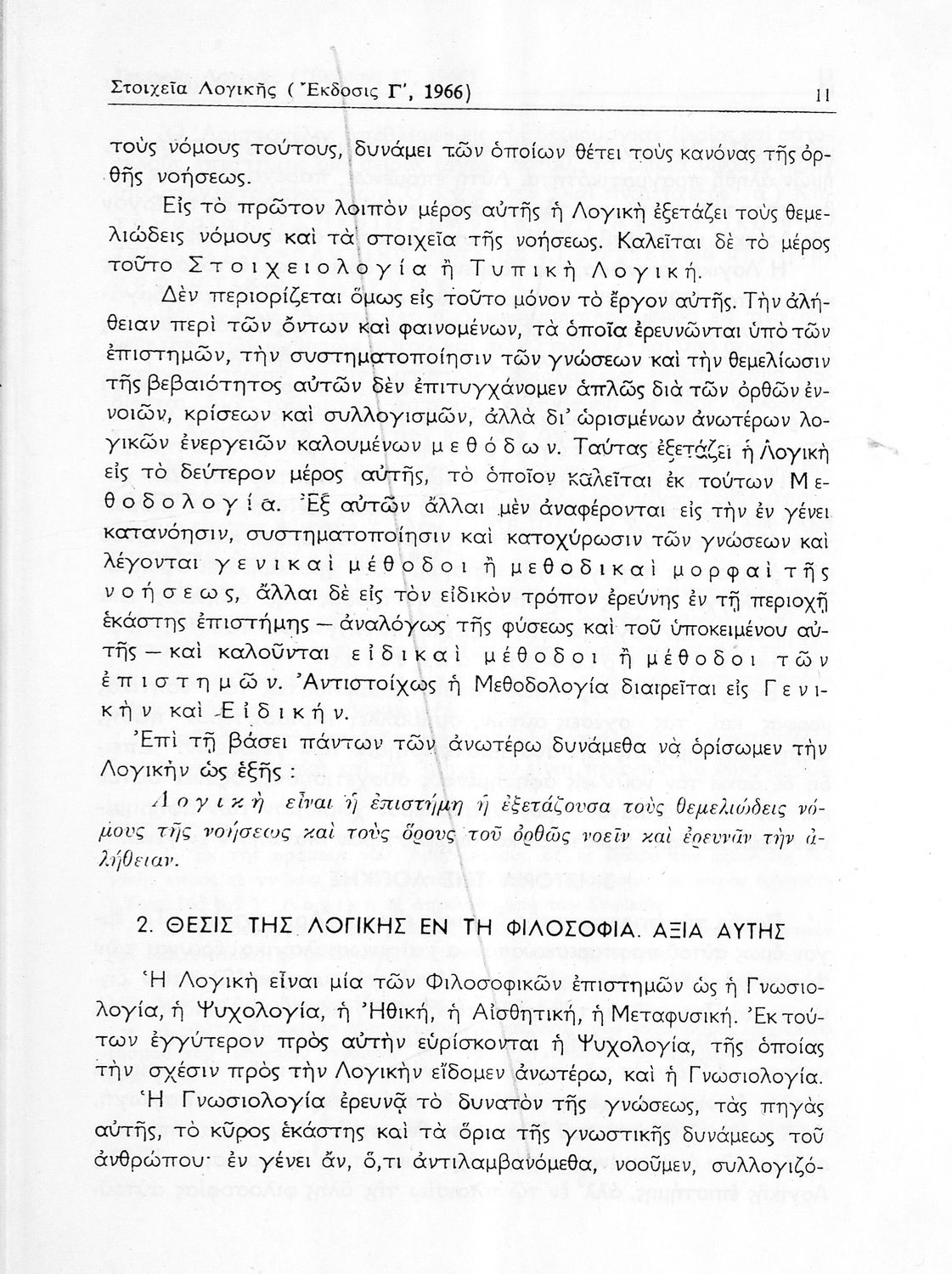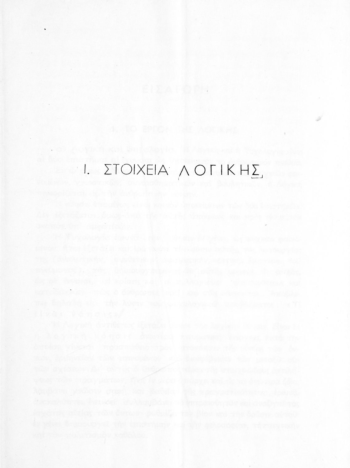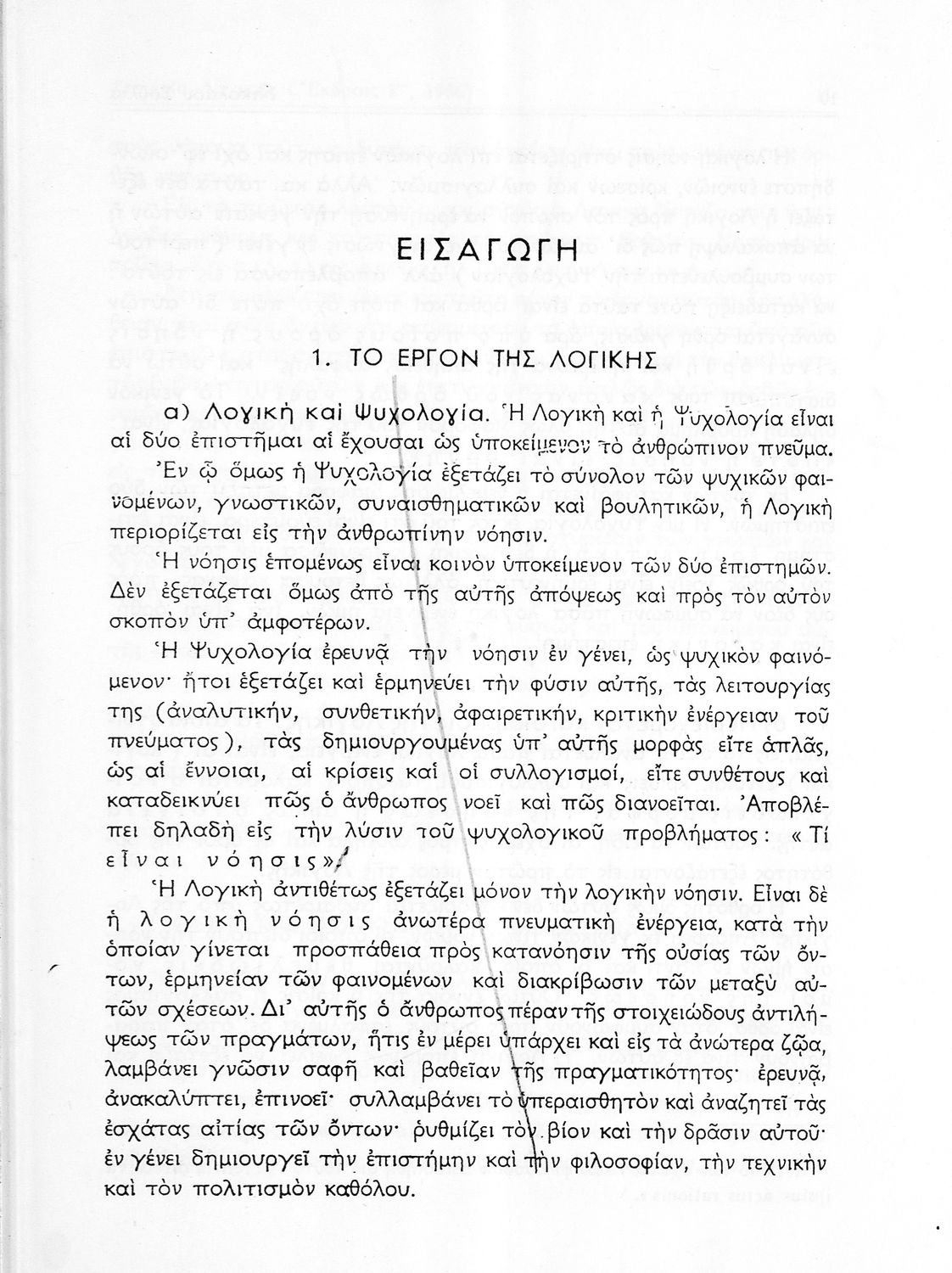 Σχολικό εγχειρίδιο Λογικής για τη ΣΤ΄ Γυμνασίου που είναι χωρισμένο σε στοιχειολογία ή τυπική λογική, μεθοδολογία και γνωσιολογία. Περιέχει ασκήσεις λογικής.