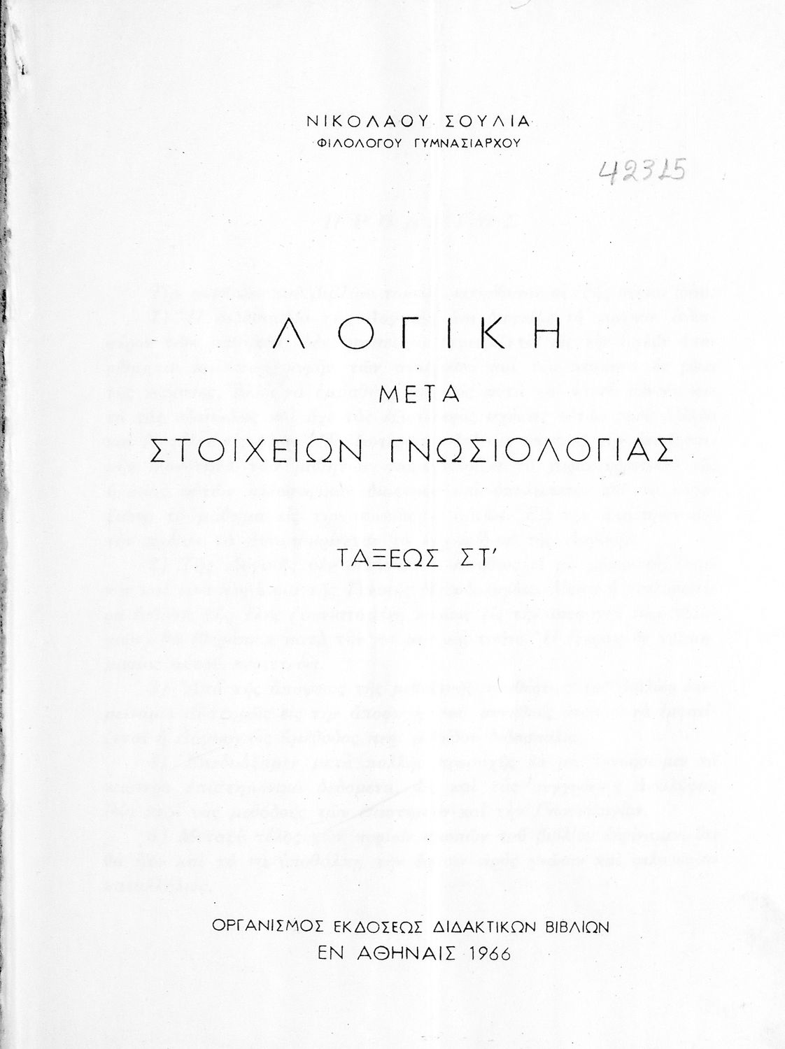 Τίτλος: Λογική μετά στοιχείων γνωσιολογίας, τάξεως ΣΤ΄