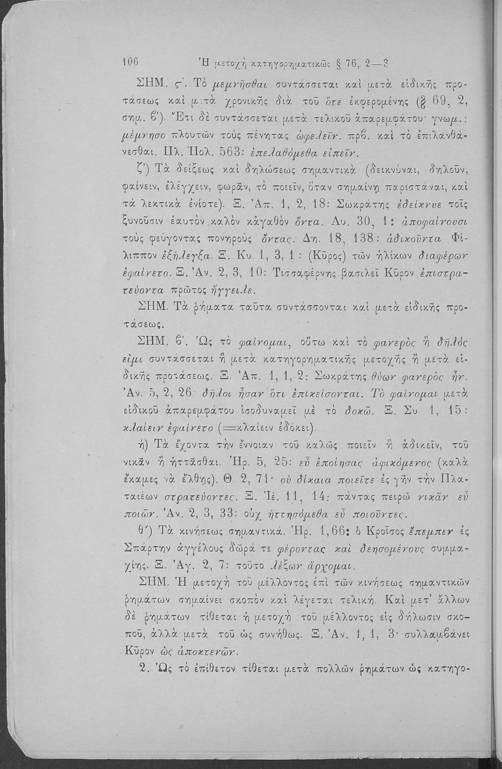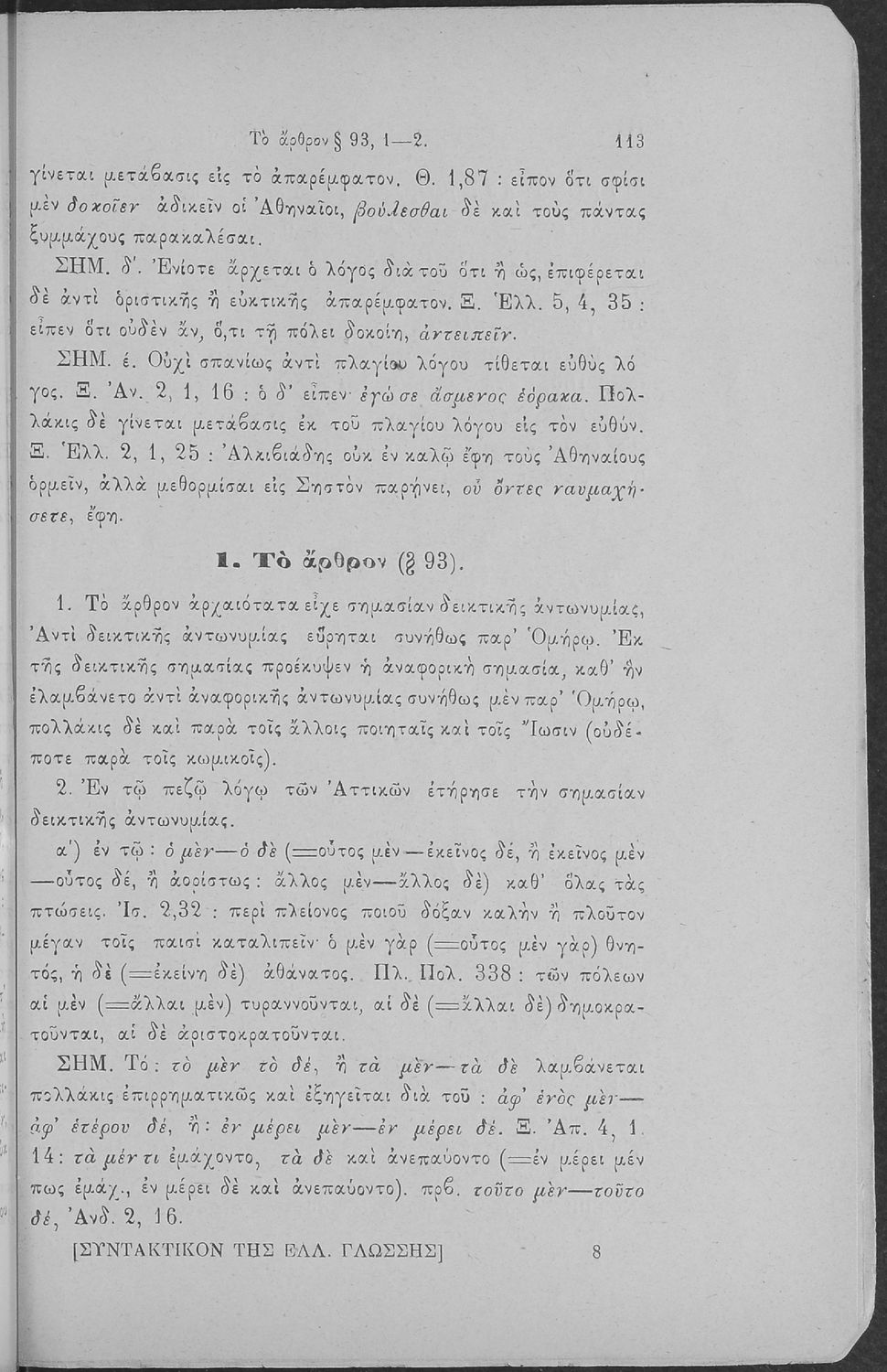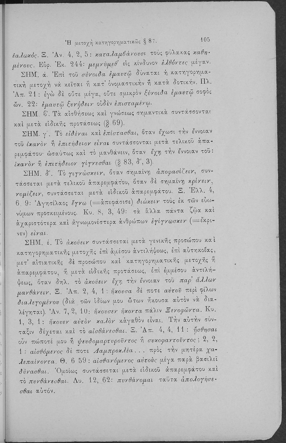 Σχολικό εγχειρίδιο Αρχαίων Ελληνικών για τα Ελληνικά Σχολεία και τα Ανώτερα Παρθεναγωγεία που εξετάζει τα μέρη του λόγου και την σύνταξή τους.