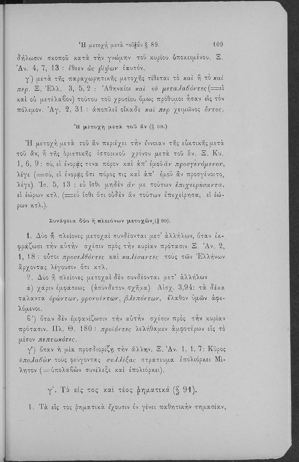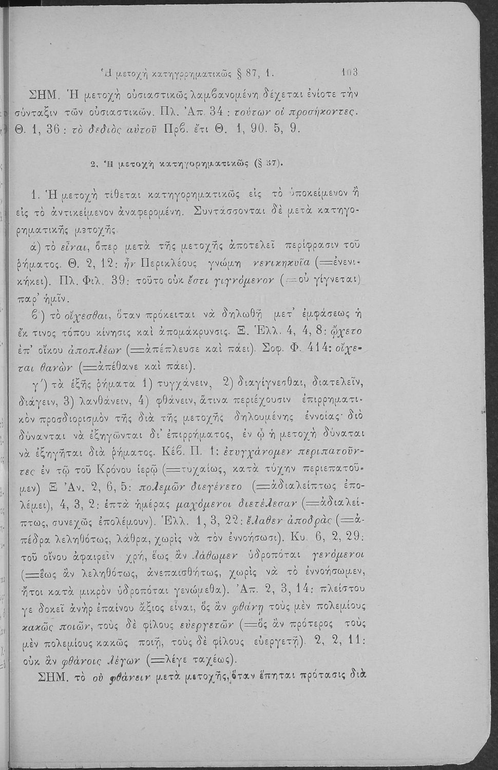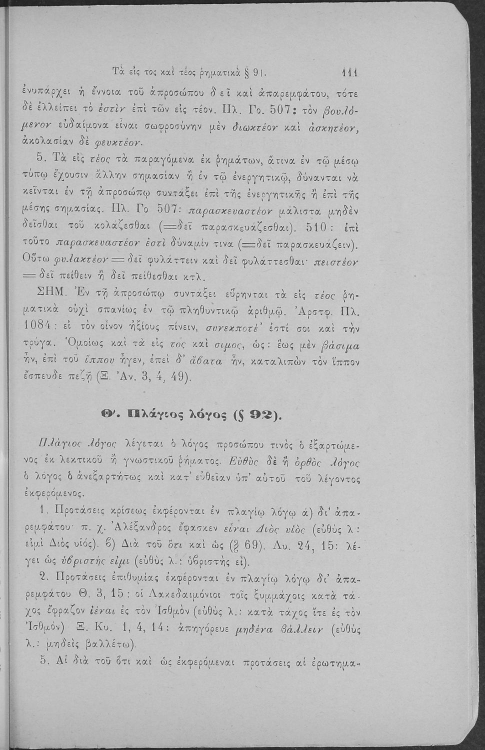 Σχολικό εγχειρίδιο Αρχαίων Ελληνικών για τα Ελληνικά Σχολεία και τα Ανώτερα Παρθεναγωγεία που εξετάζει τα μέρη του λόγου και την σύνταξή τους.
